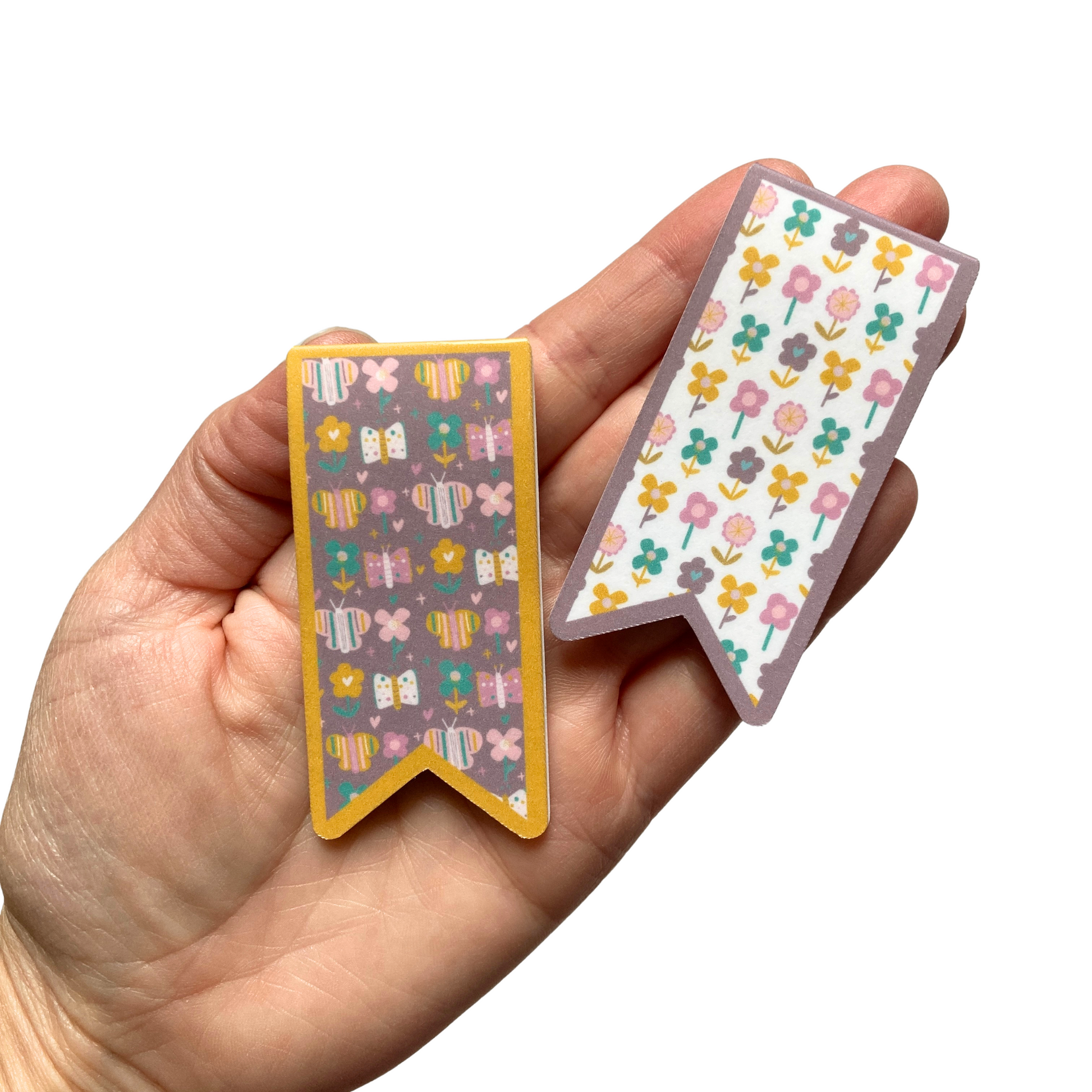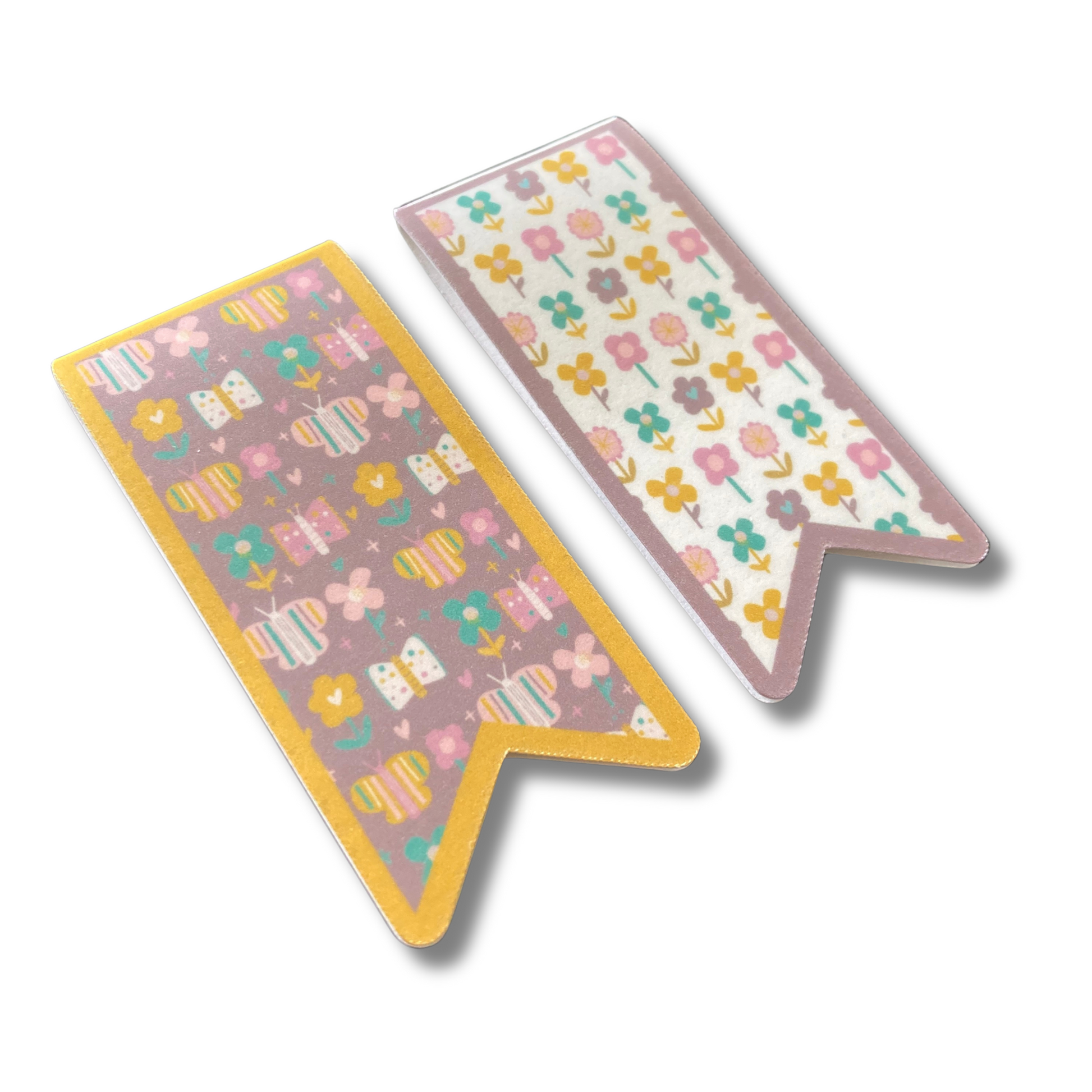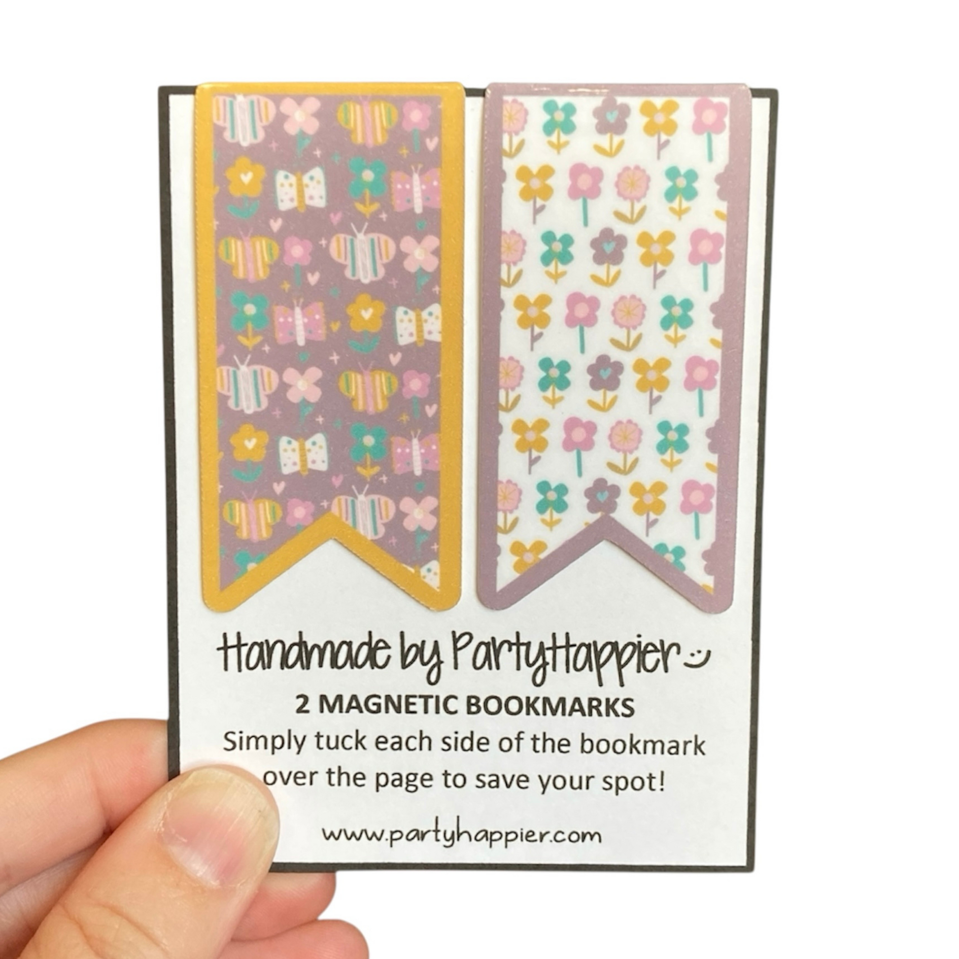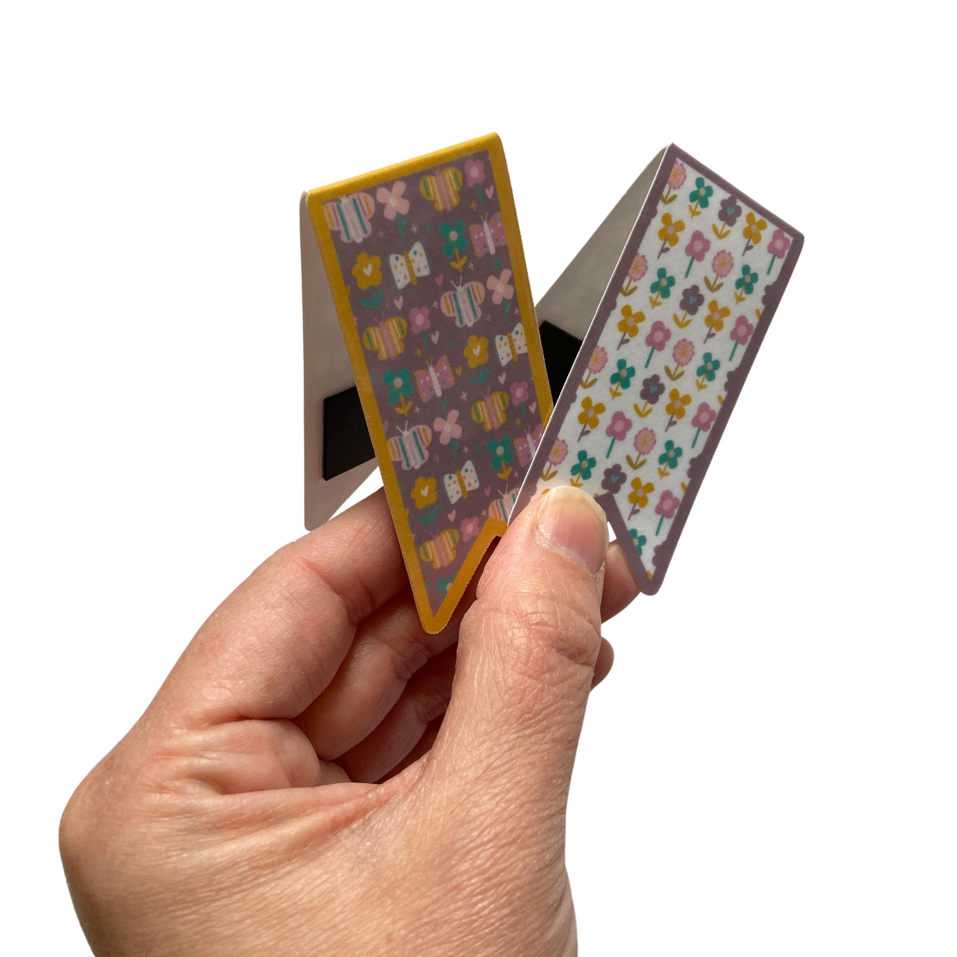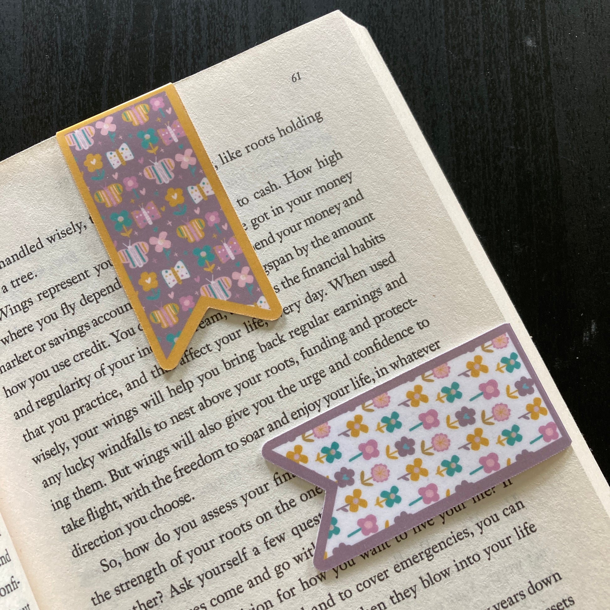 This listing is for two matching magnetic bookmarks that can hold your place just about anywhere! They feature colorful floral and butterfly patterns and can be used in your favorite book, planner, notebook, cookbook, etc.