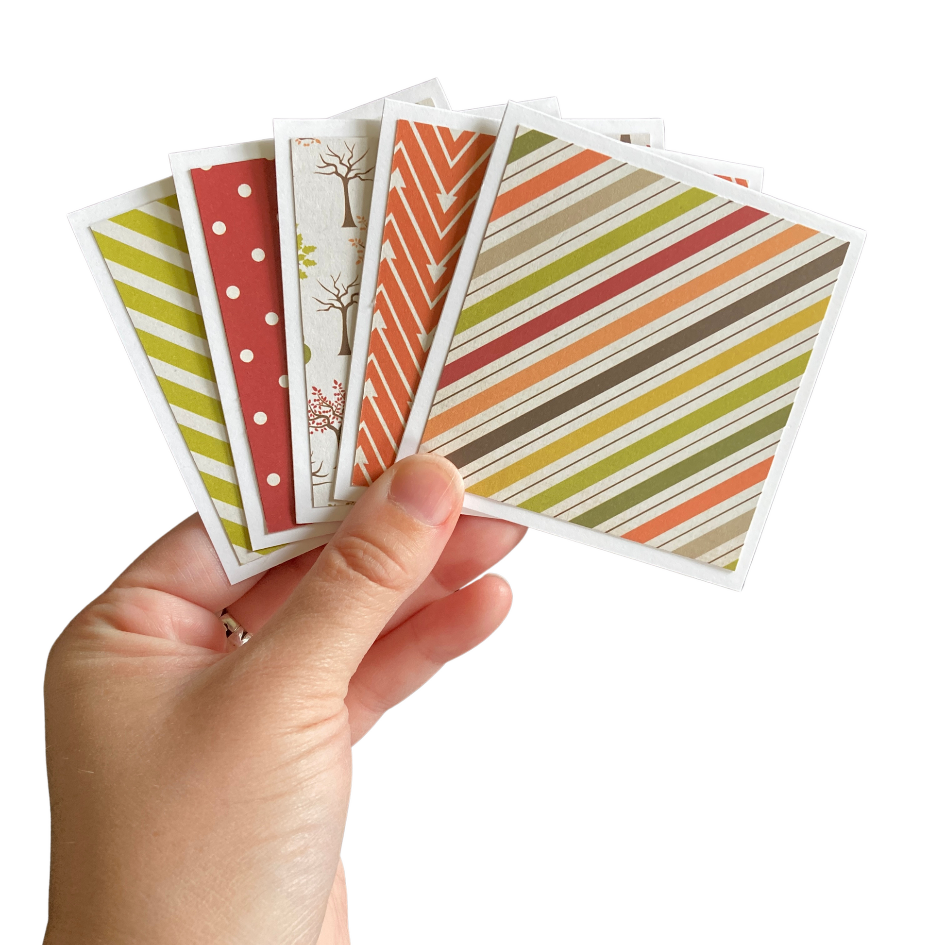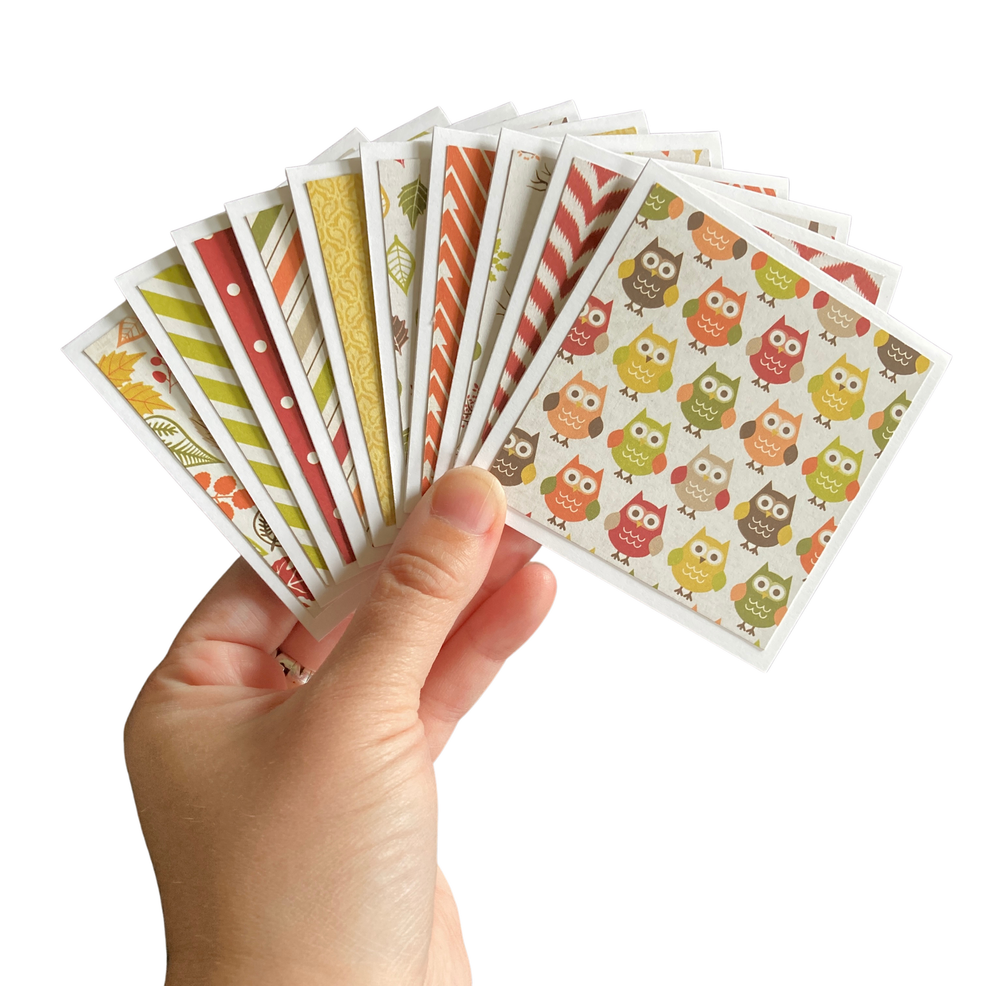 These adorable fall-themed cards have so many uses! Tuck them inside a gift, attach them as a gift tag, sneak them in your kids' lunchbox, or just give them as a nice note! The possibilities are endless! :)