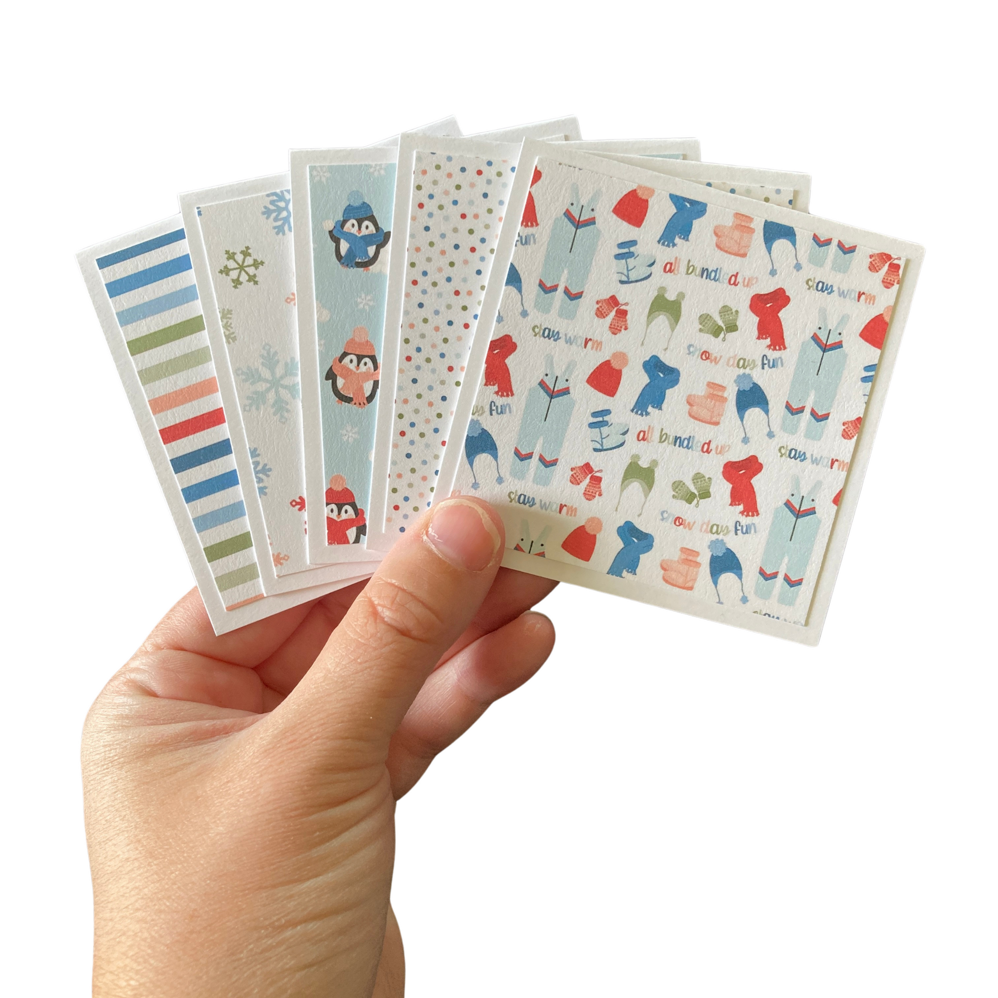 These adorable holiday-themed cards have so many uses! Tuck them inside a gift, attach them as a gift tag, sneak them in your kids' lunchbox, or just give them as a nice note! The possibilities are endless! :)