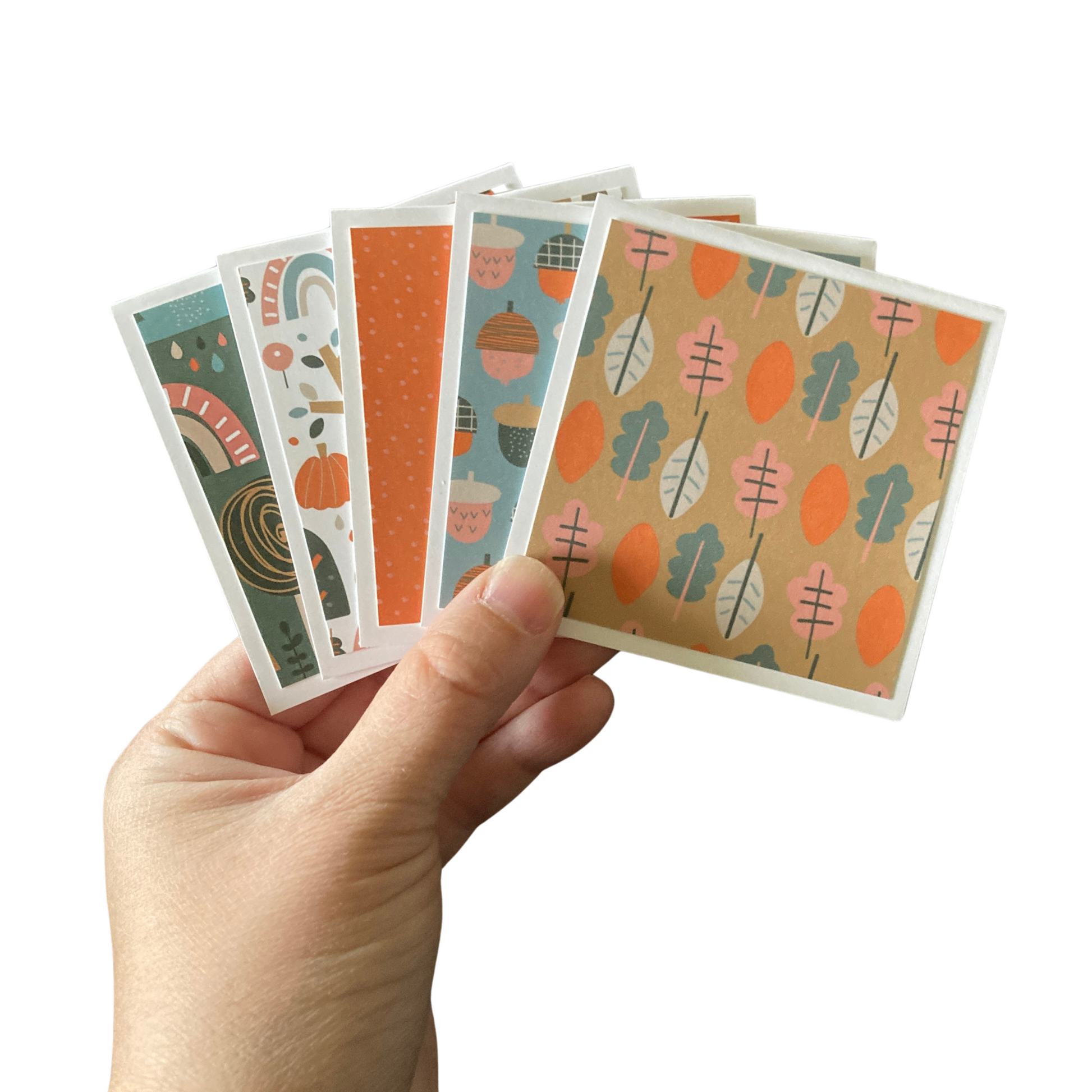 These adorable fall-themed cards have so many uses! Tuck them inside a gift, attach them as a gift tag, sneak them in your kids' lunchbox, or just give them as a nice note! The possibilities are endless! :)