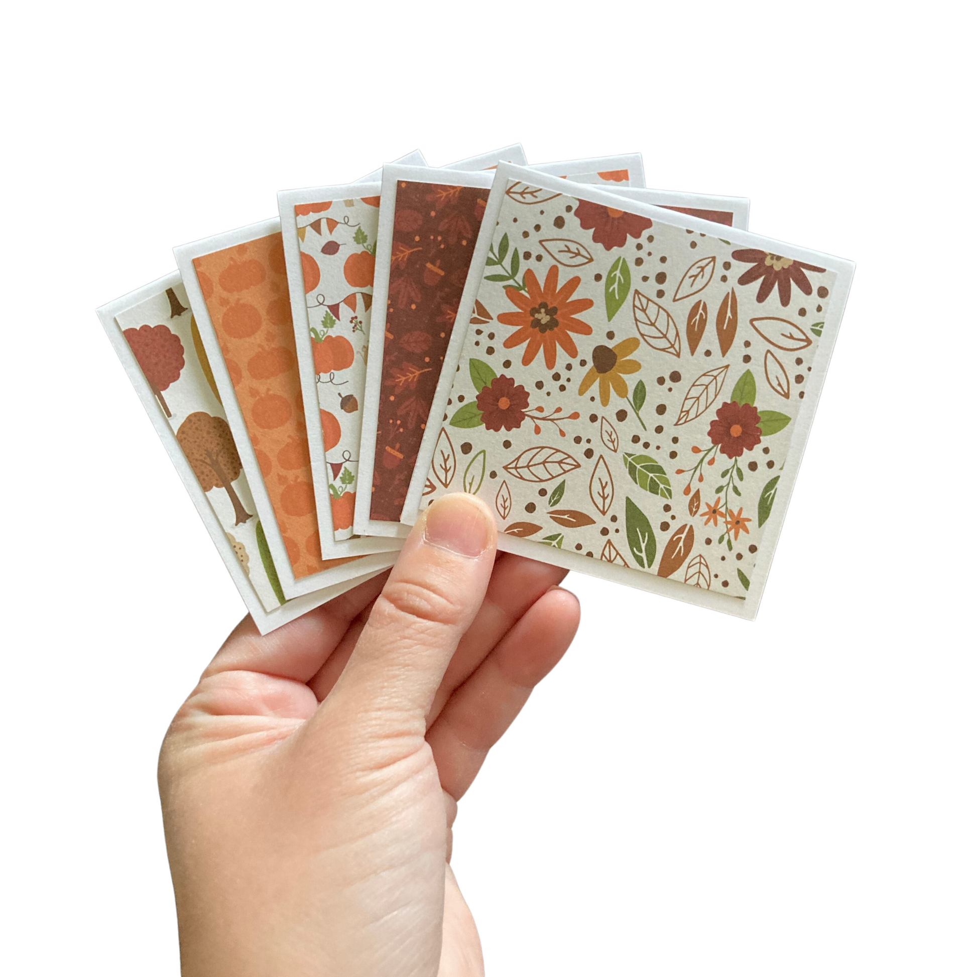 These adorable fall-themed cards have so many uses! Tuck them inside a gift, attach them as a gift tag, sneak them in your kids' lunchbox, or just give them as a nice note! The possibilities are endless! :)