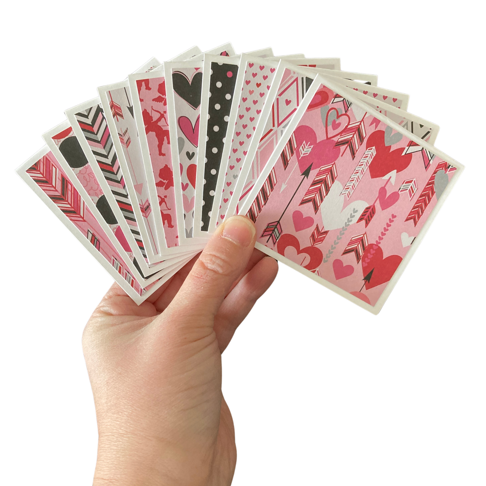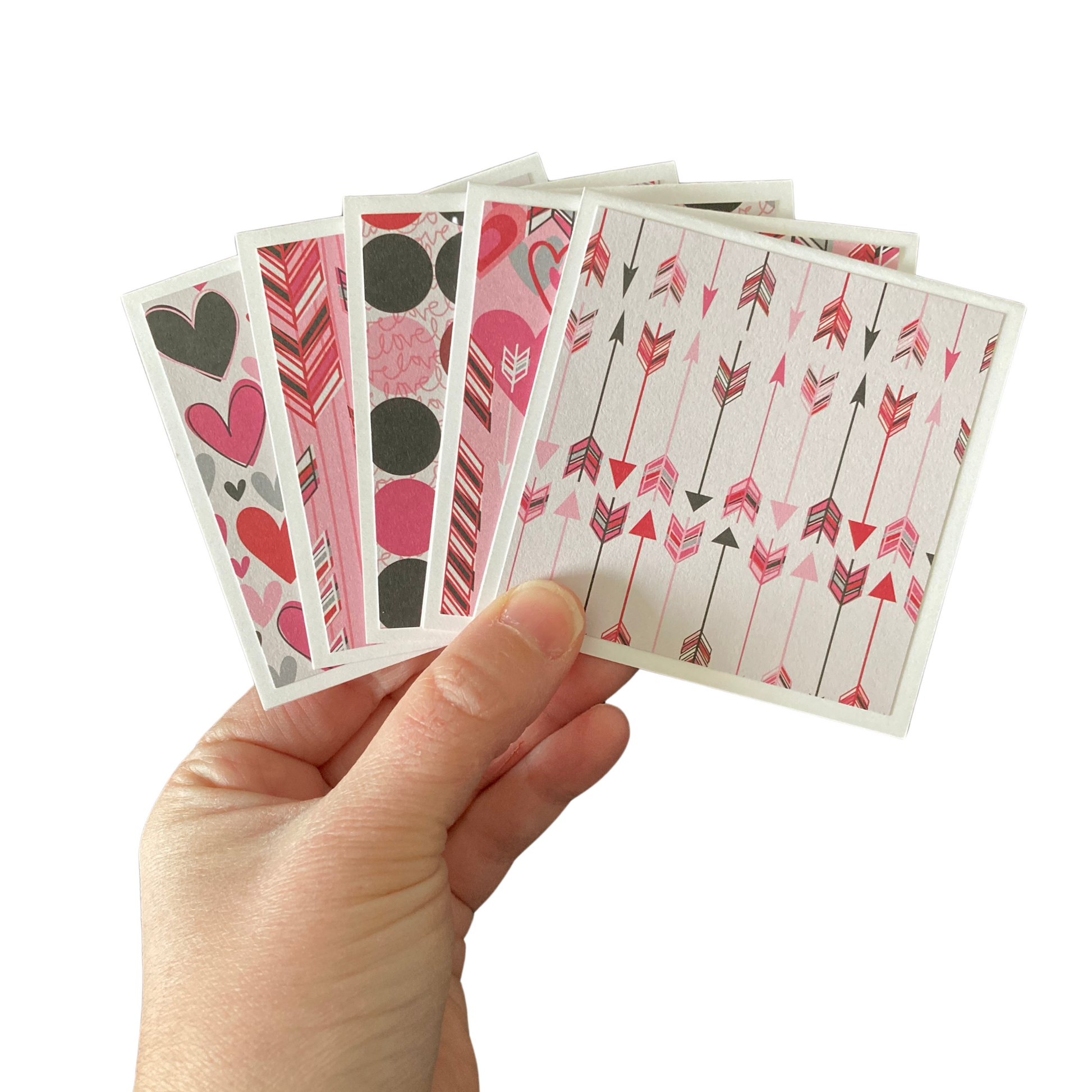 These adorable Valentine-themed cards have so many uses! Tuck them inside a gift, attach them as a gift tag, sneak them in your kid's lunchbox, or just give them as a nice note! The possibilities are endless! :)