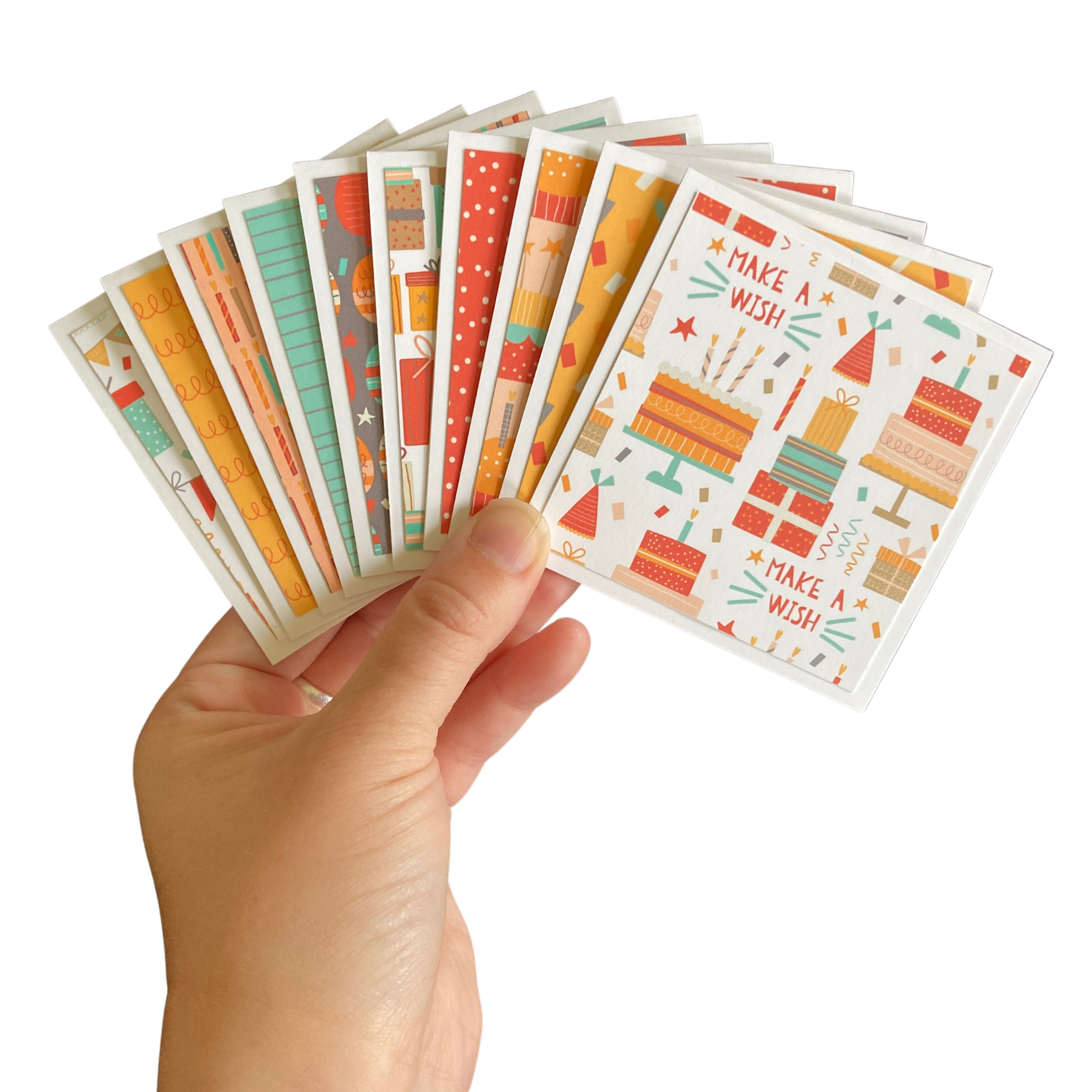 These adorable birthday cards have so many uses! Tuck them inside a gift, attach them as a gift tag, sneak them in your kids' lunchbox, or just give them as a nice note! The possibilities are endless! :)