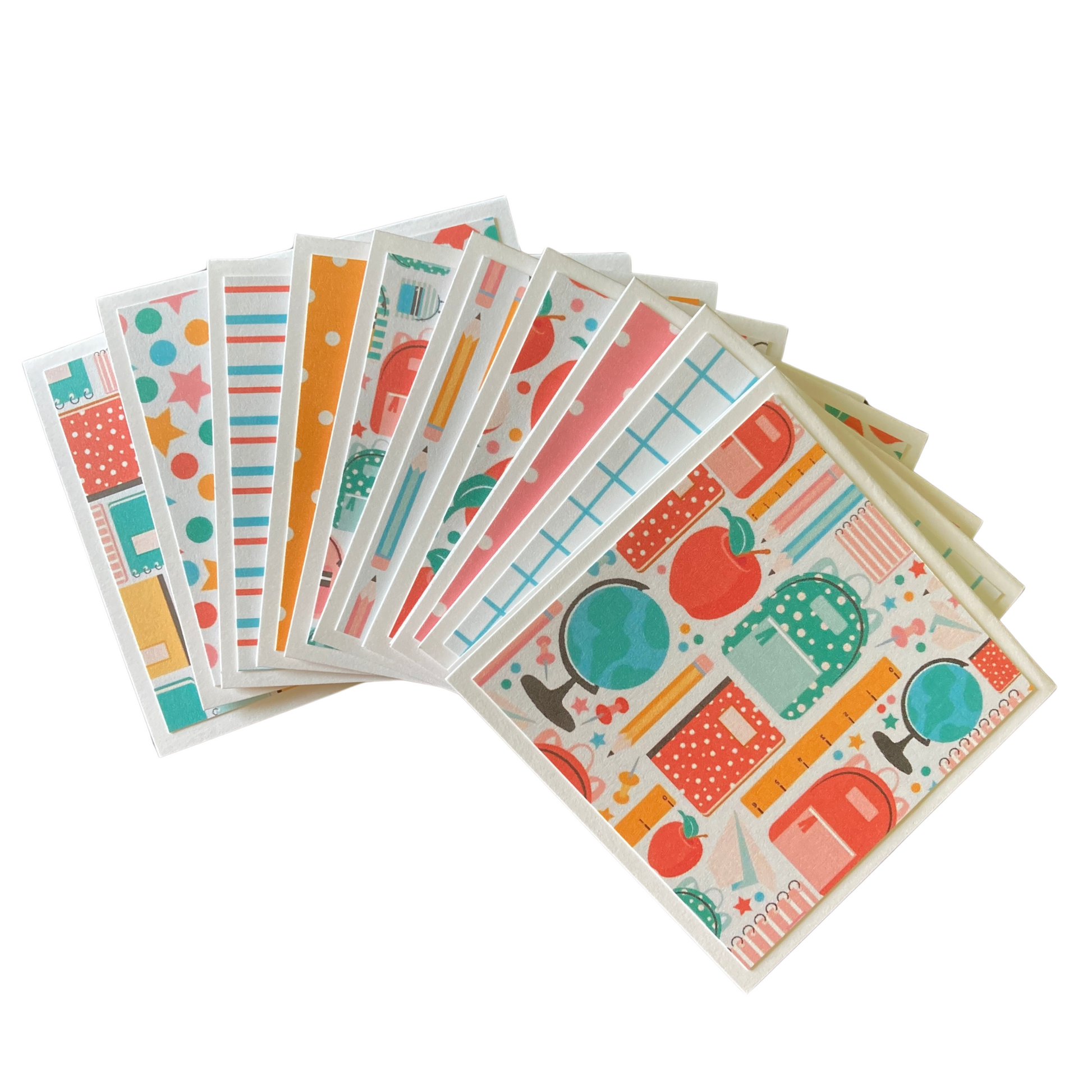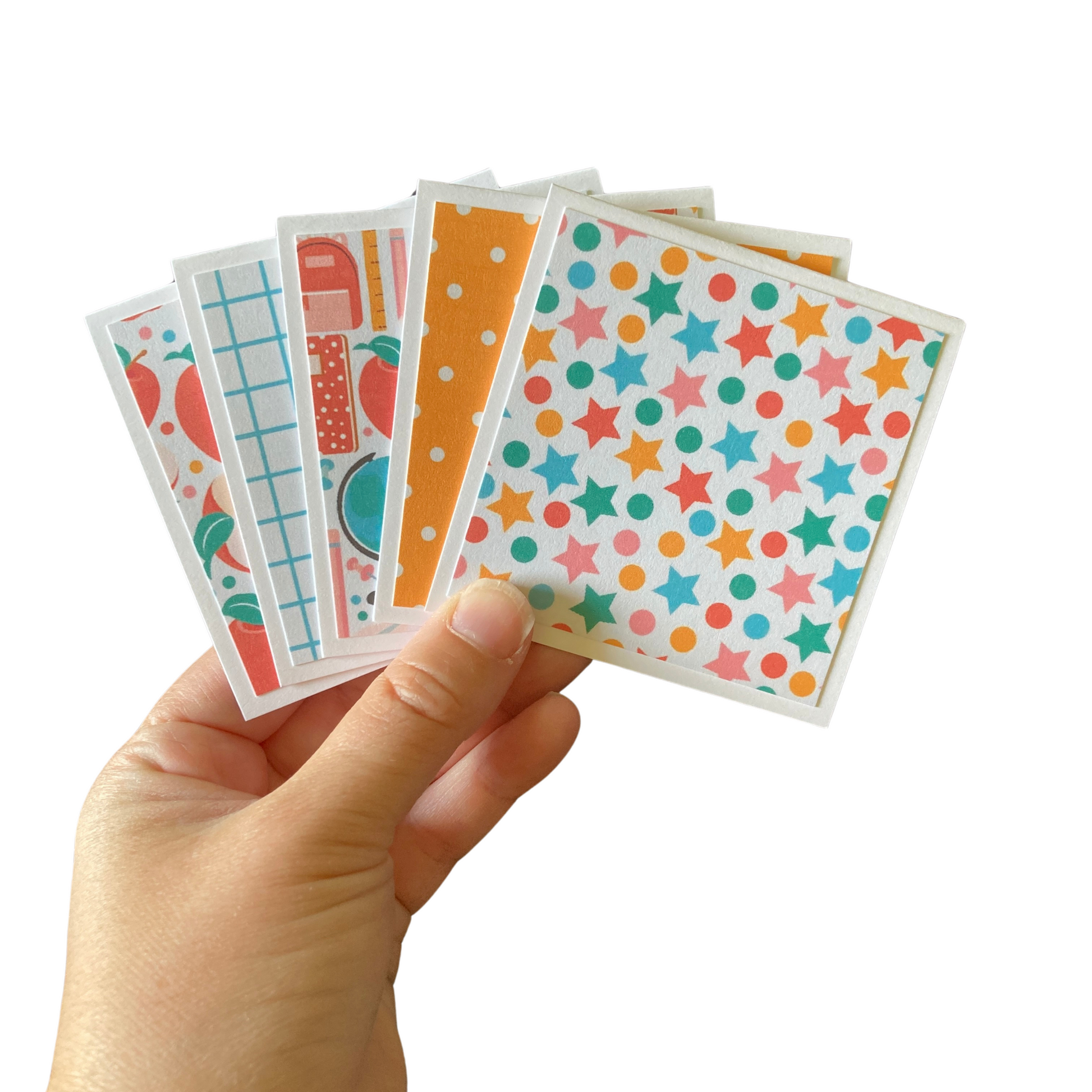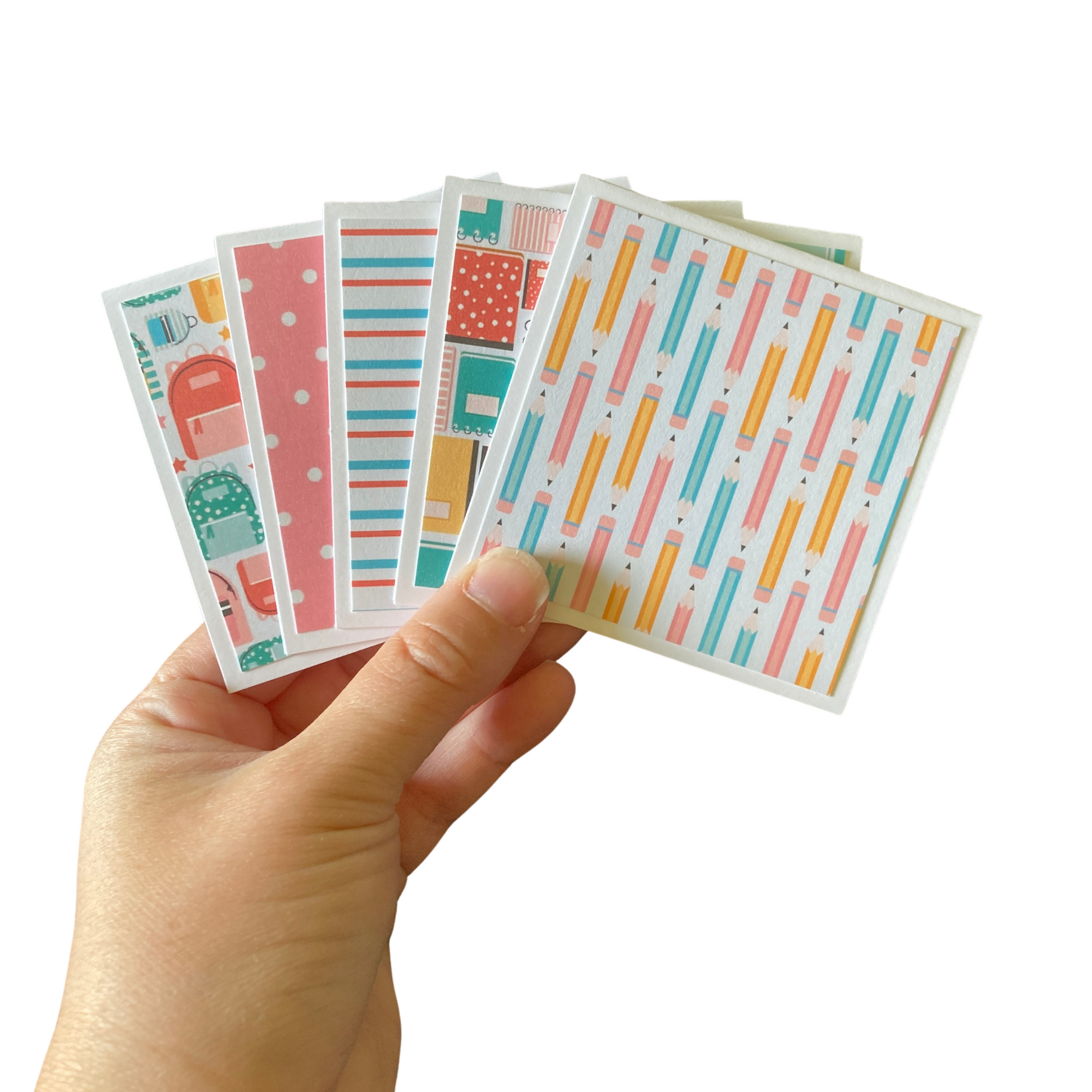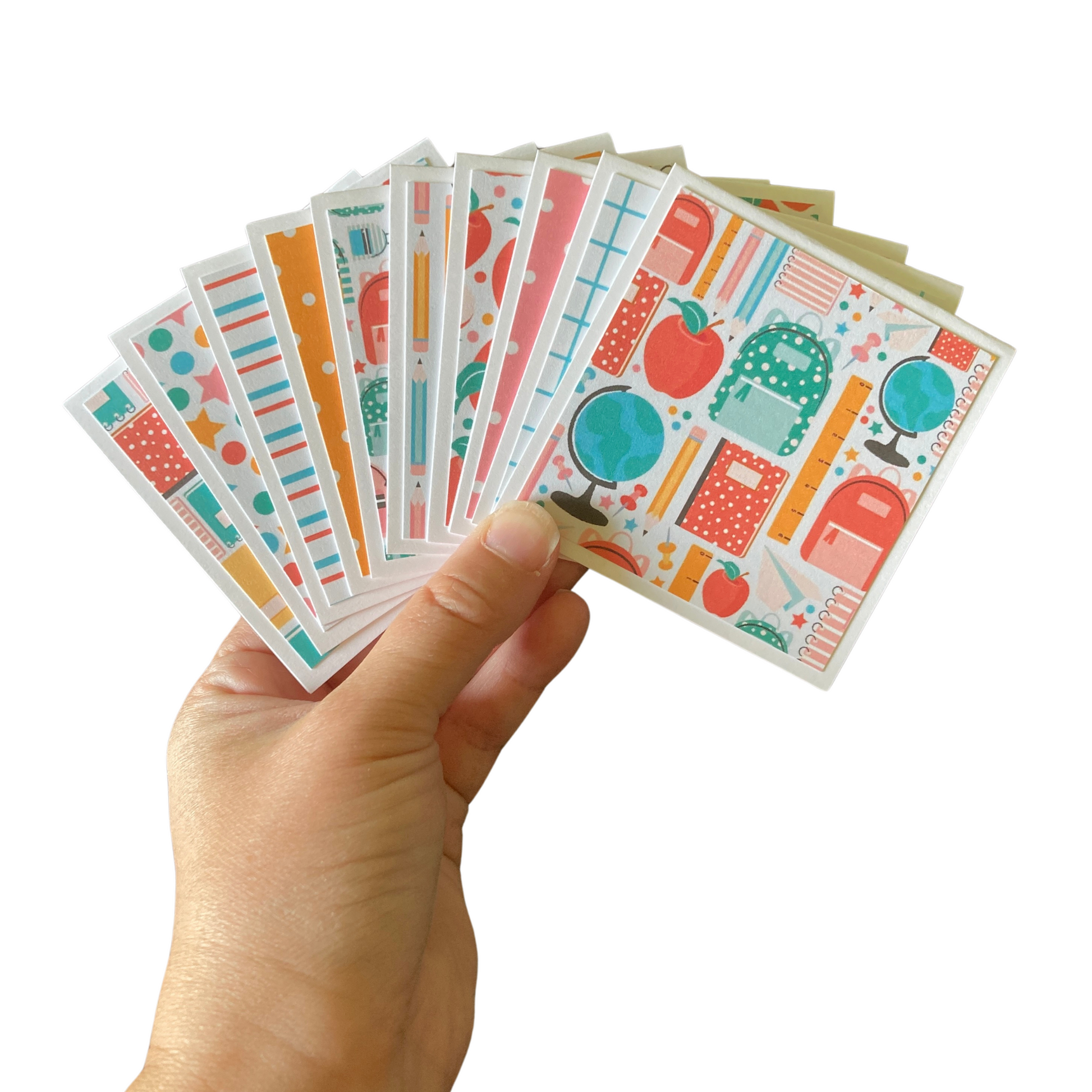 These adorable school-themed note cards have so many uses! Tuck them inside a gift, attach them as a gift tag, sneak them in your kids' lunchbox, or just give them as a nice note! The possibilities are endless! :)