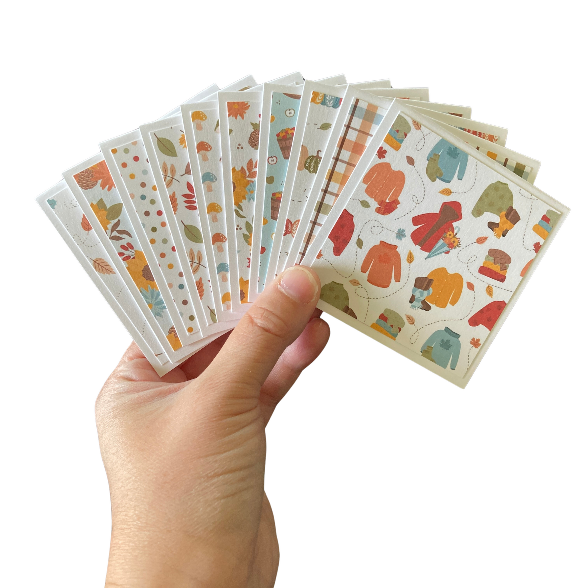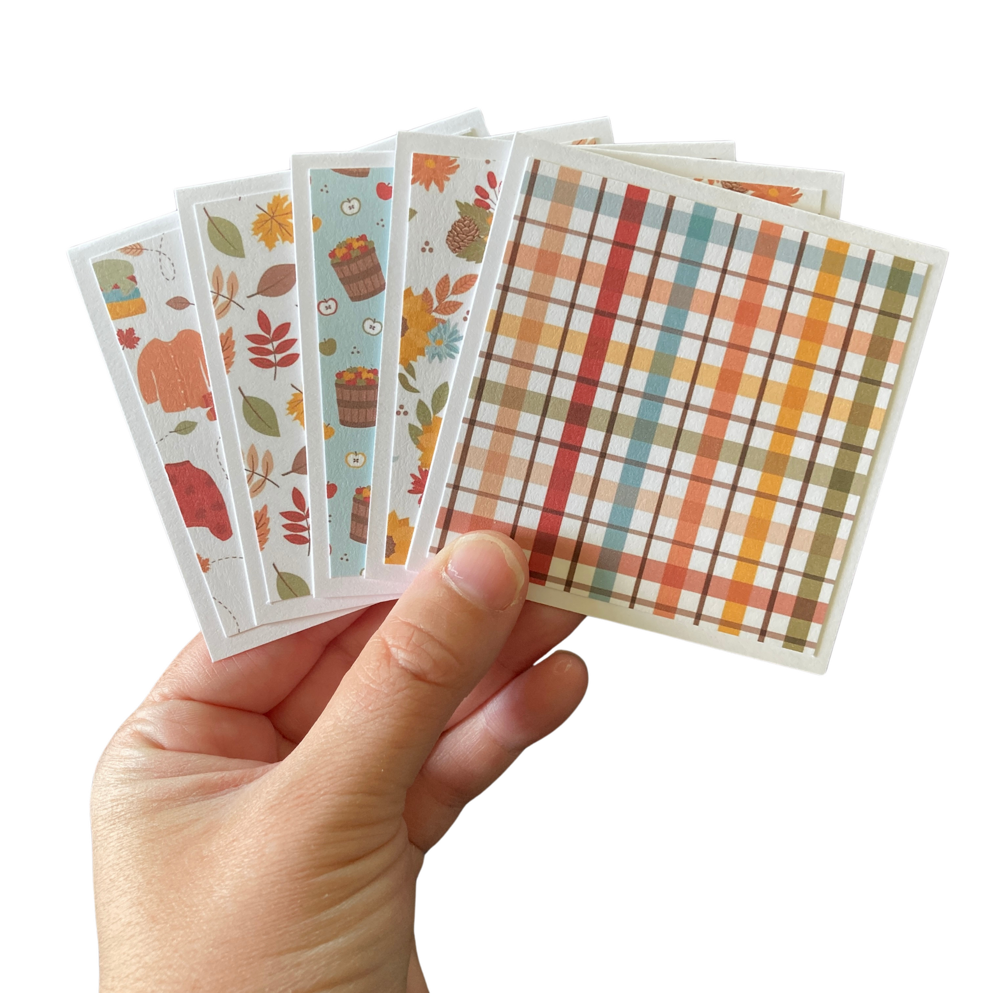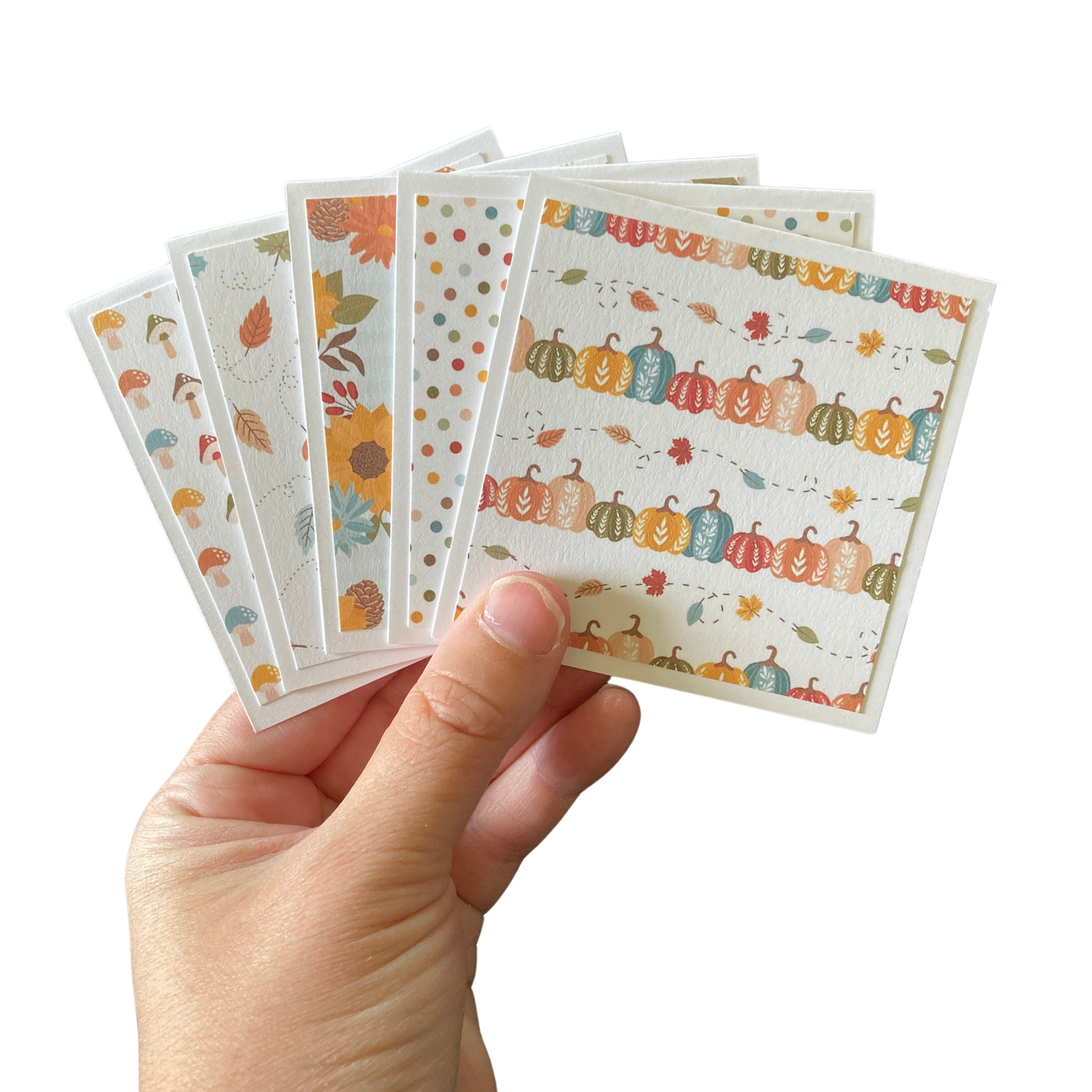 These adorable fall-themed cards have so many uses! Tuck them inside a gift, attach them as a gift tag, sneak them in your kids' lunchbox, or just give them as a nice note! The possibilities are endless! :)