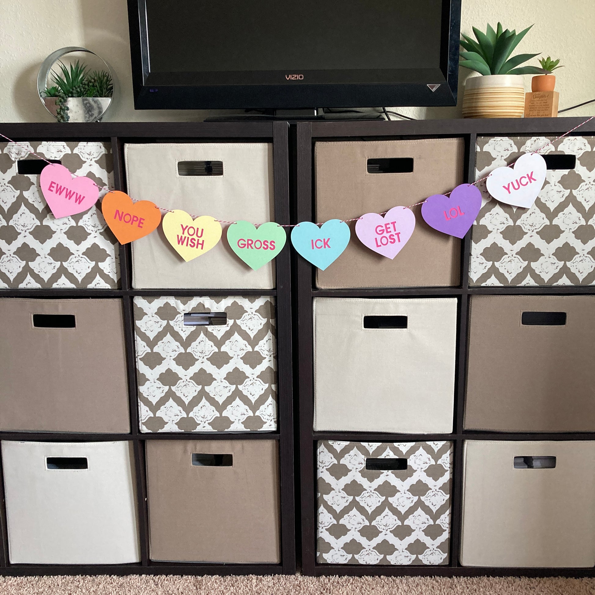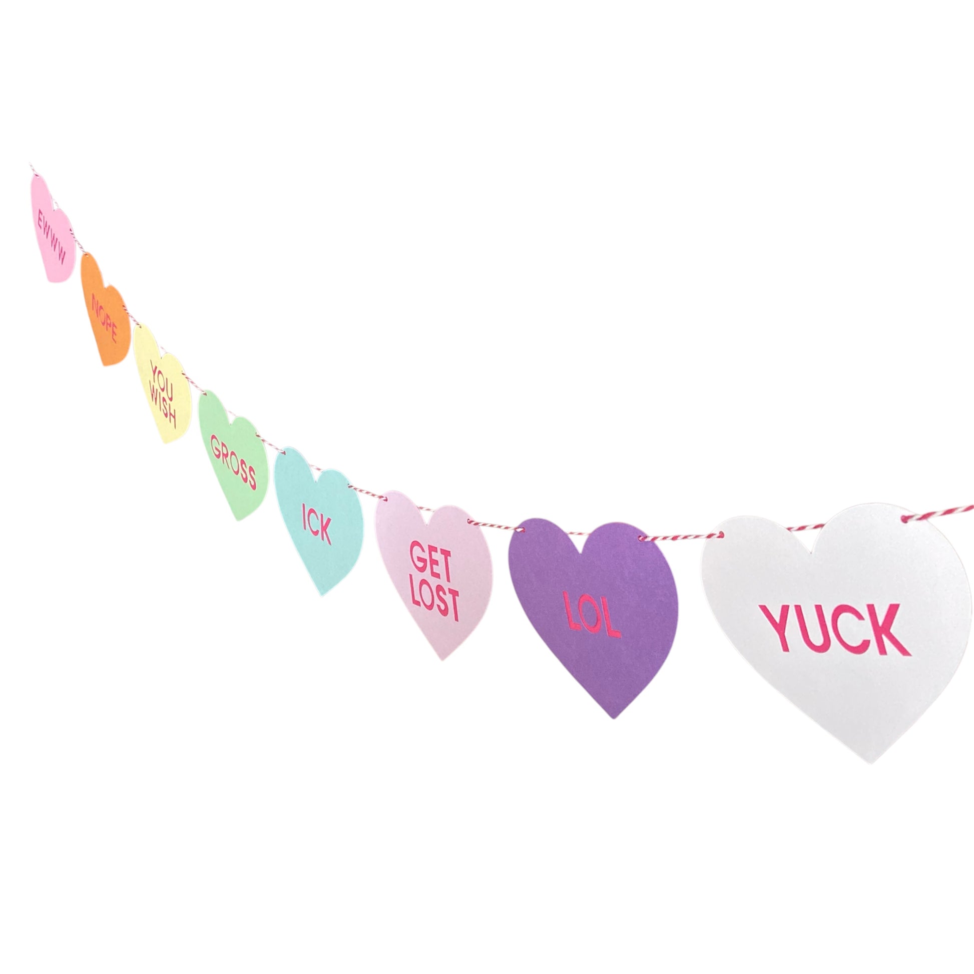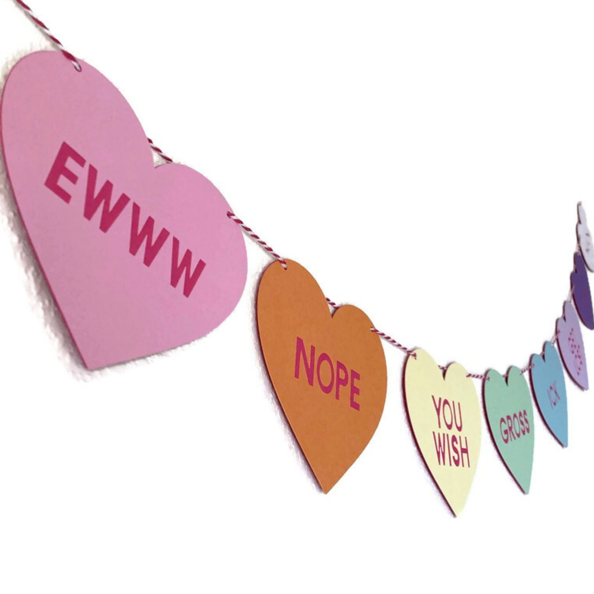 If you're looking for cute and sassy Valentine's Day decor, look no further! This anti-Valentine conversation hearts banner adds the perfect flair to any room!