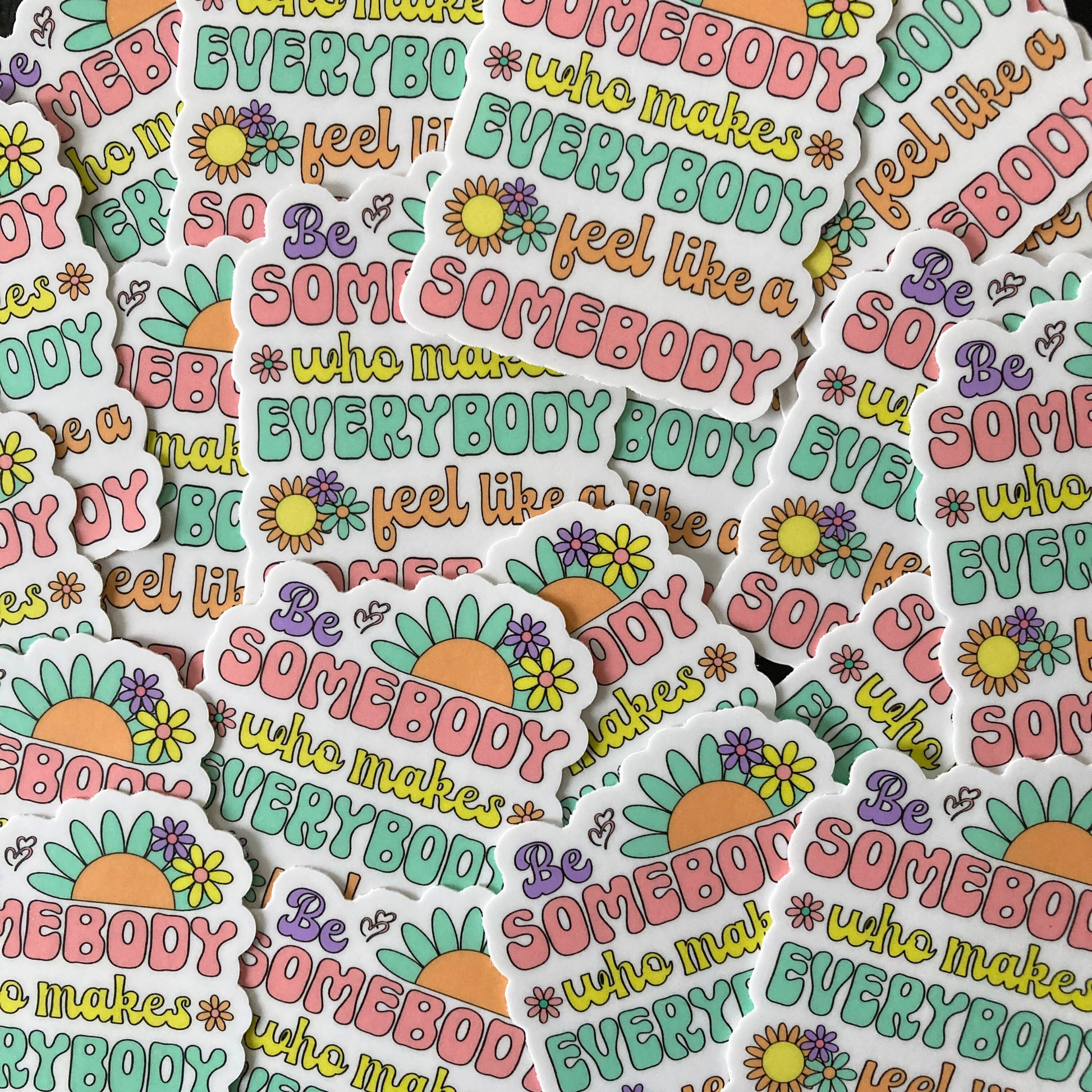 This listing is for one "Be Somebody Who Makes Everybody Feel Like A Somebody" sticker. It is the perfect addition to your water bottle, computer, notebook, or any surface your desire!