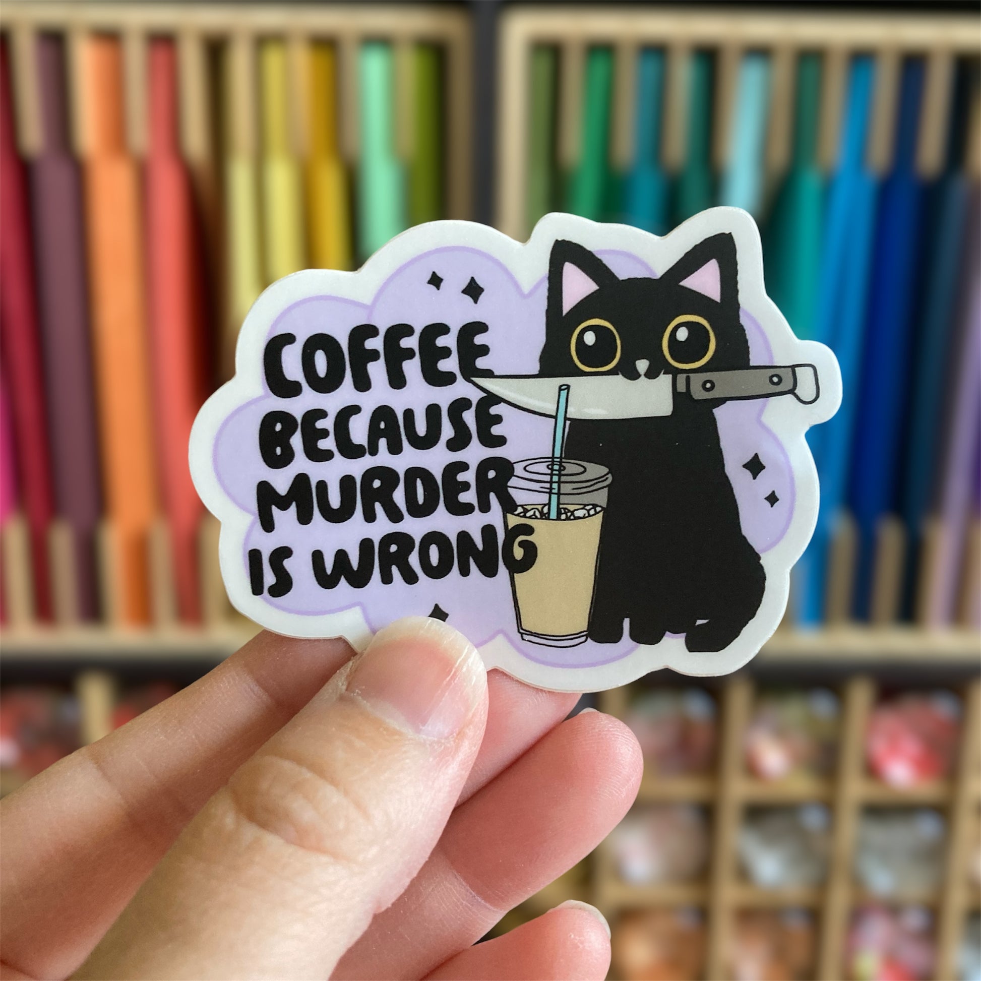 This listing is for one "Coffee Because Murder Is Wrong" vinyl sticker. It is the perfect addition to your water bottle, computer, notebook, or any surface you desire!