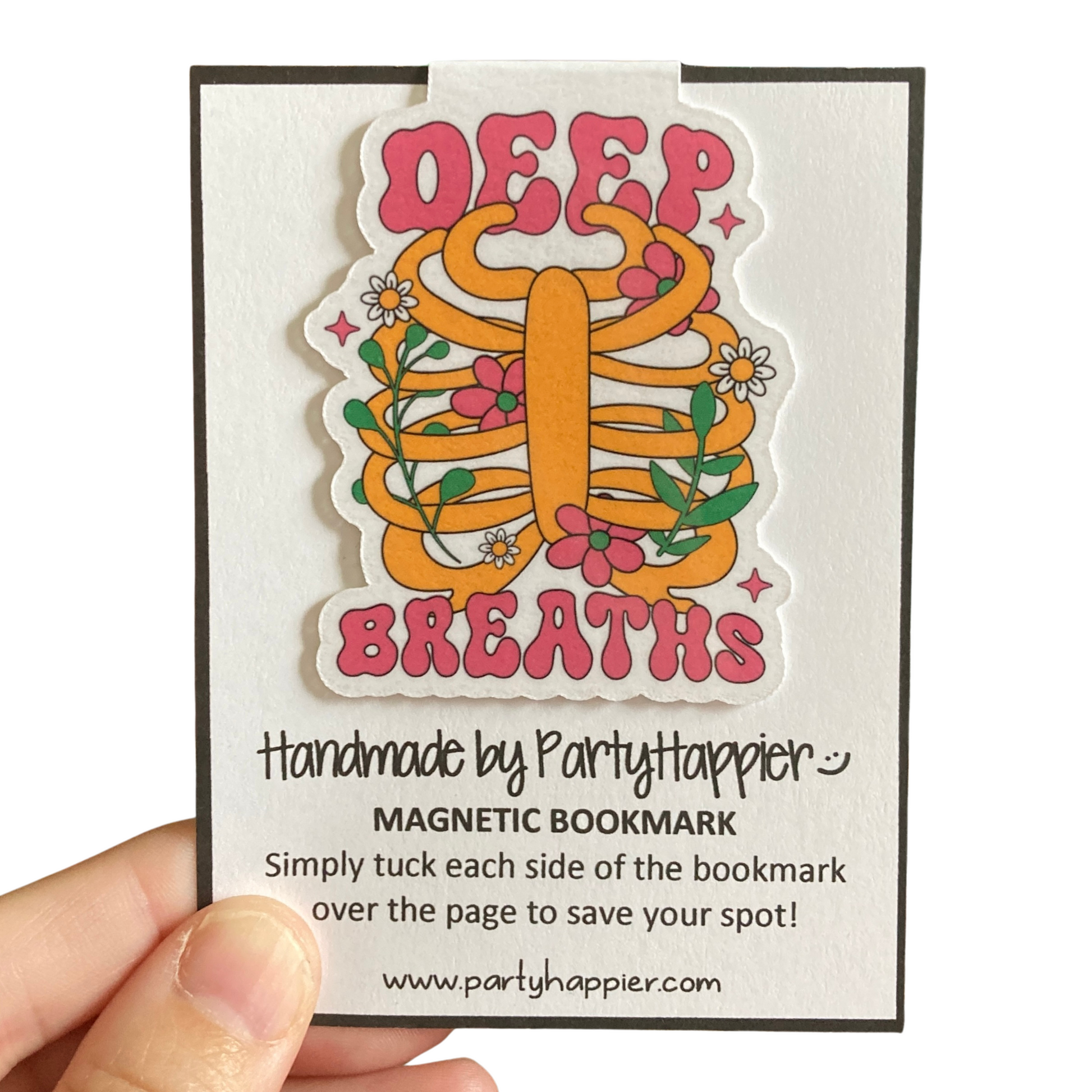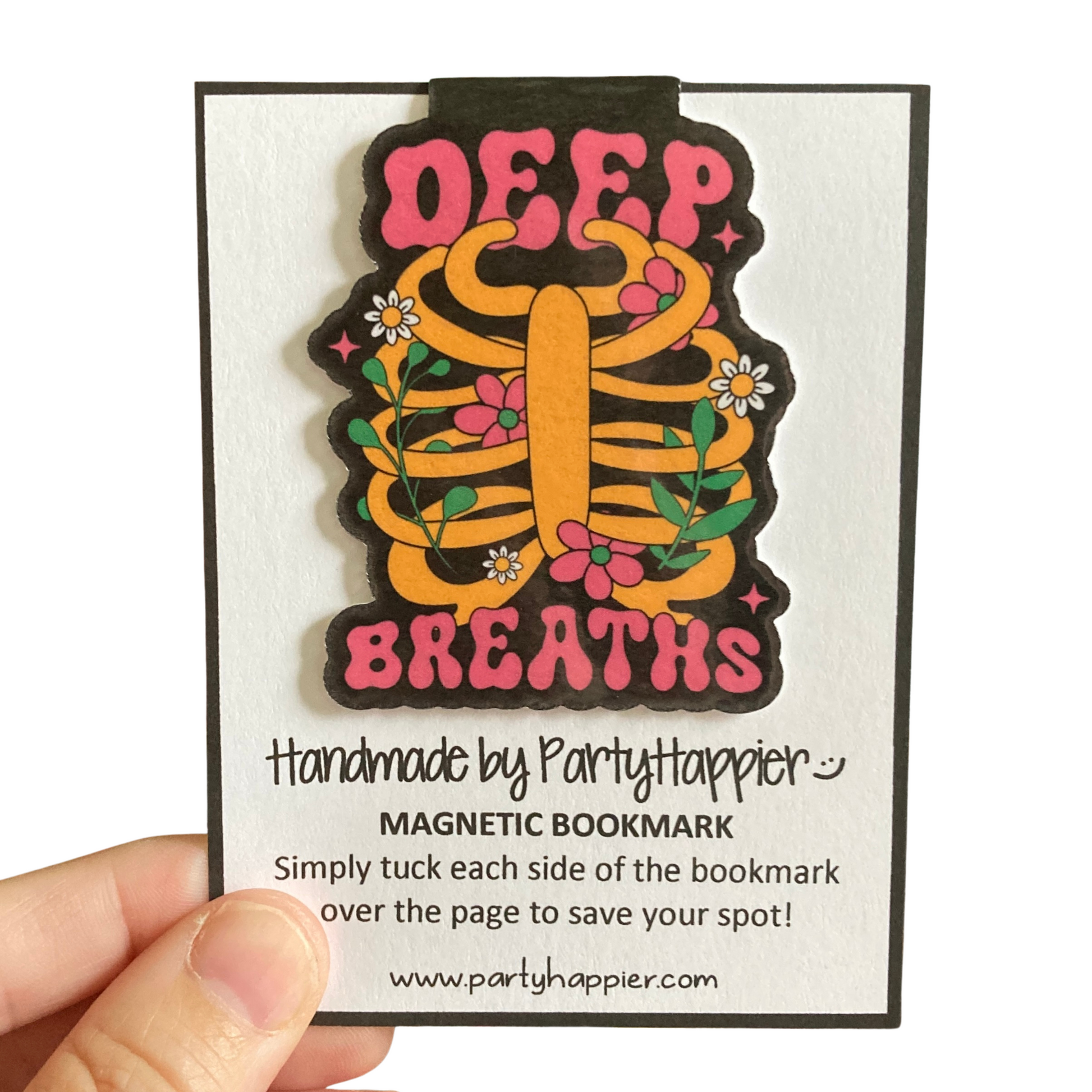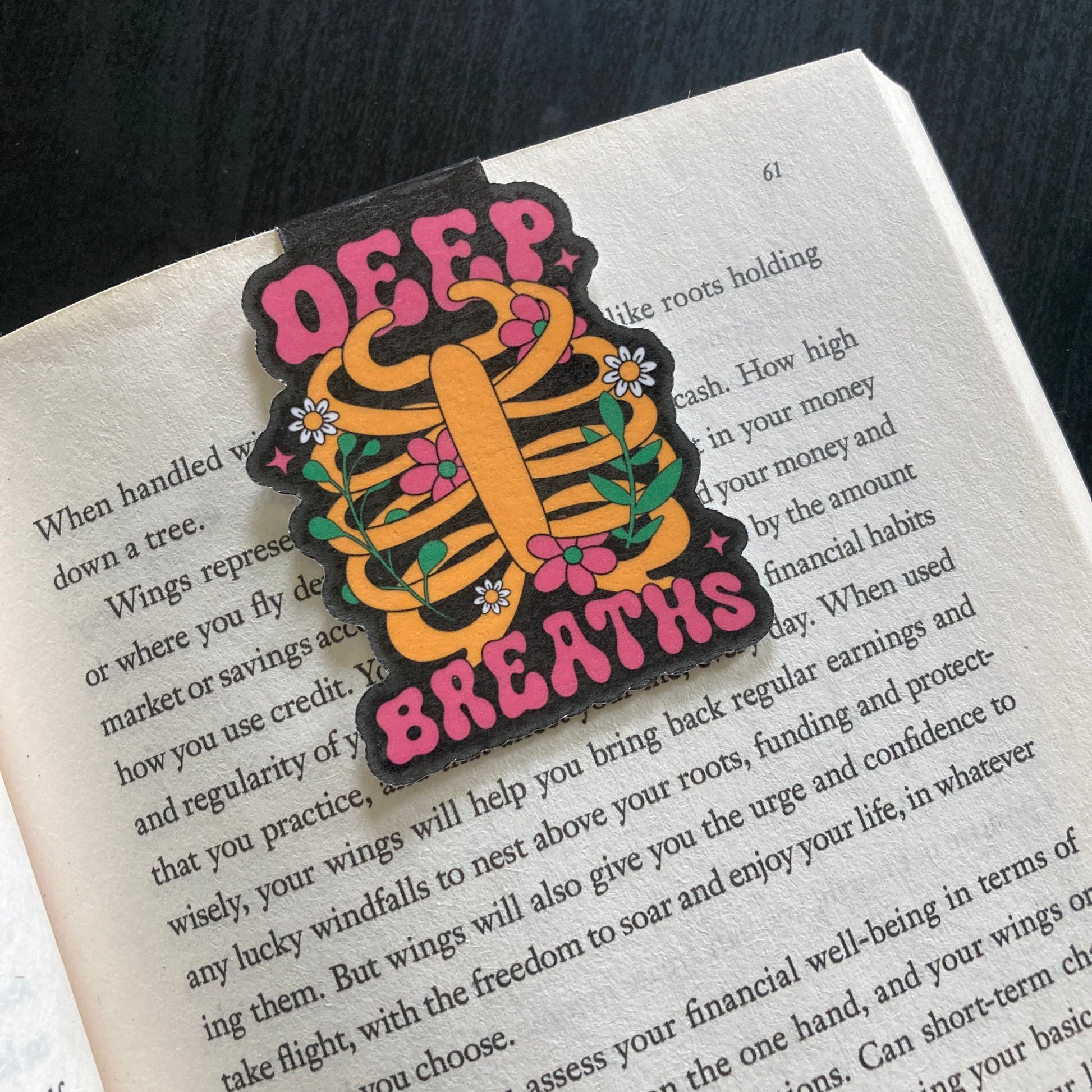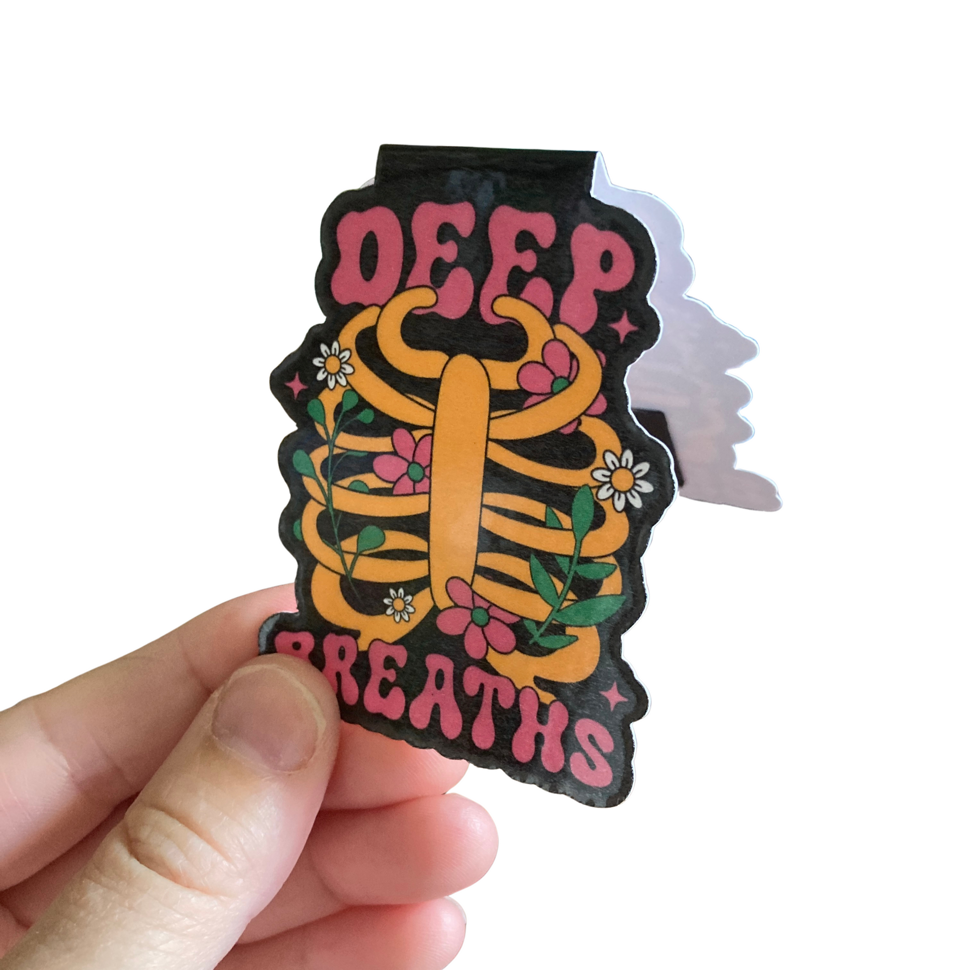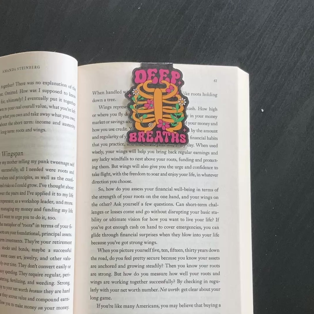 This listing is for one magnetic bookmark that says, "Deep Breaths." It's perfect for holding your place just about anywhere! Use it in your favorite book, planner, notebook, or wherever your heart desires!