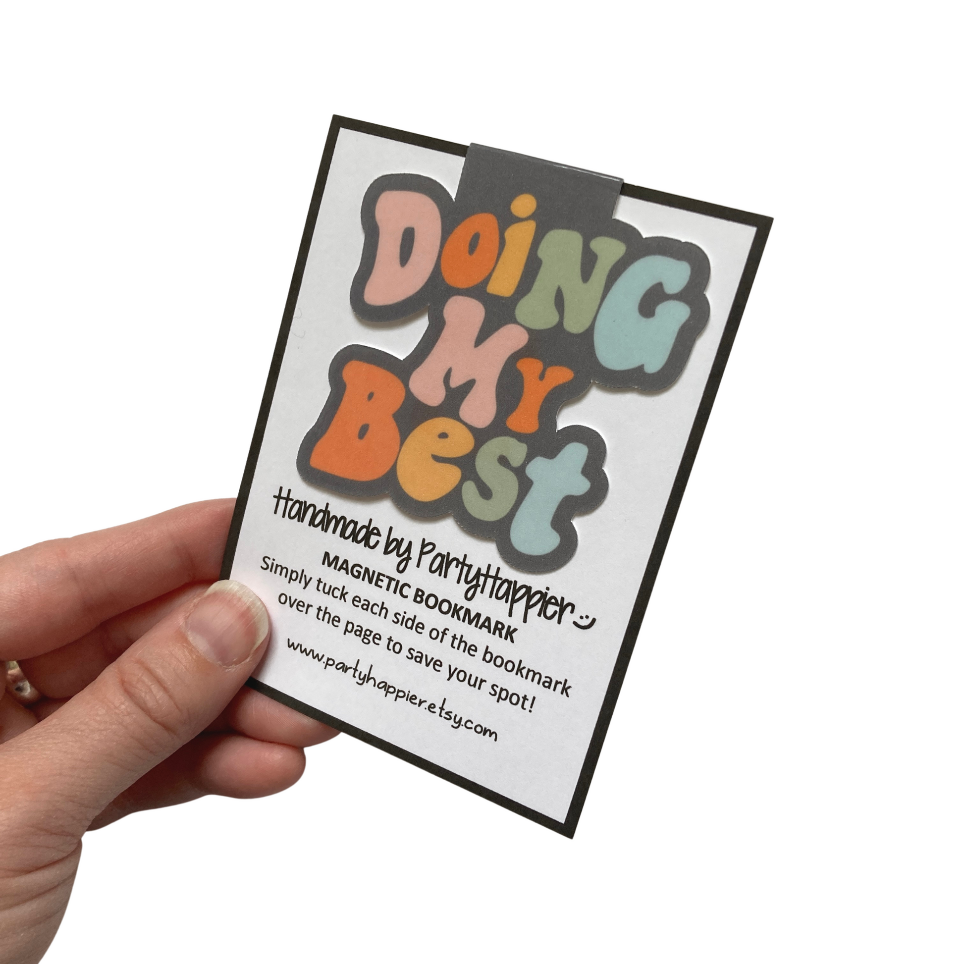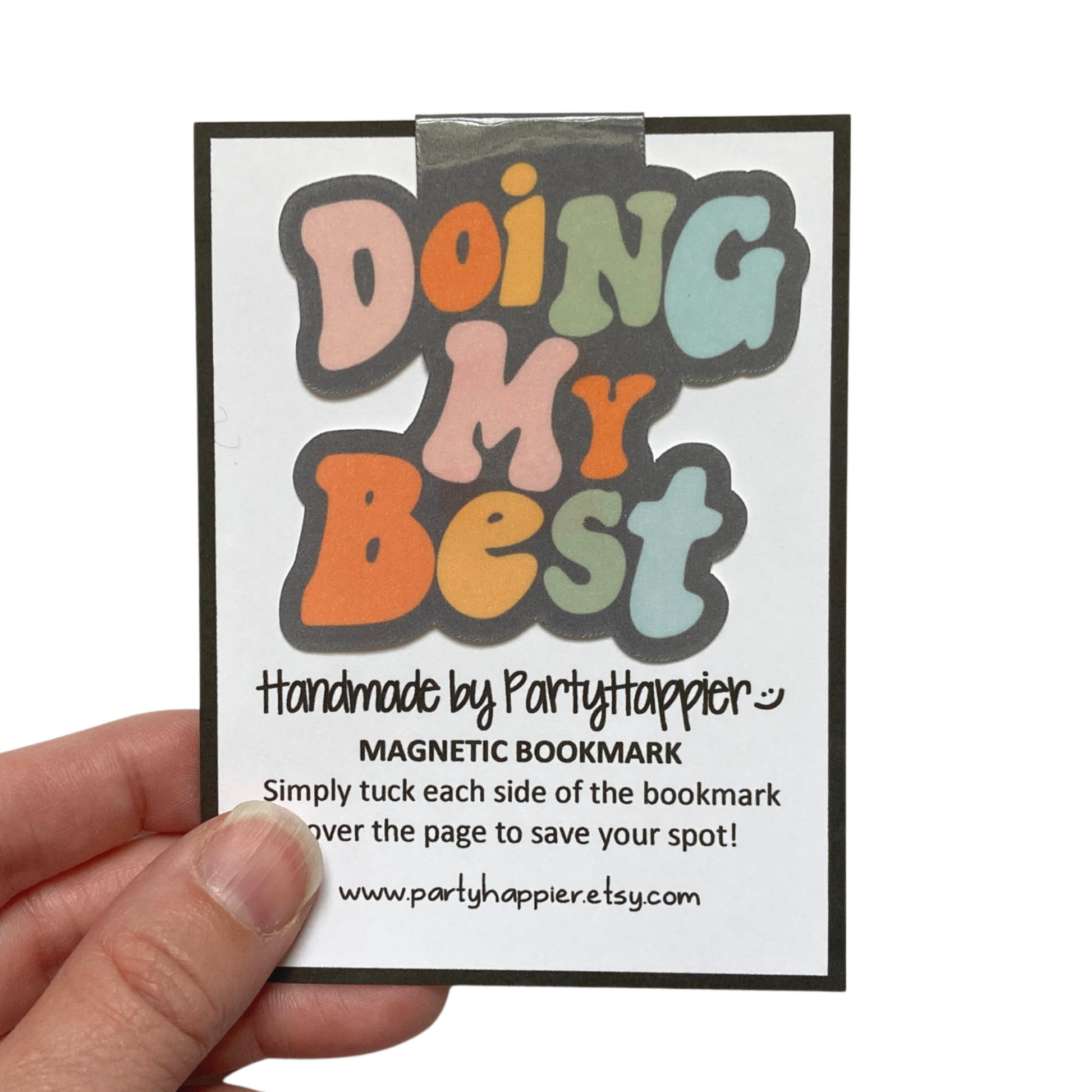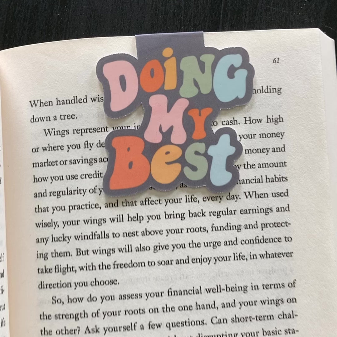 This listing is for one magnetic bookmark that says, "Doing My Best." It's perfect for holding your place just about anywhere! Use it in your favorite book, planner, notebook, or wherever your heart desires!
