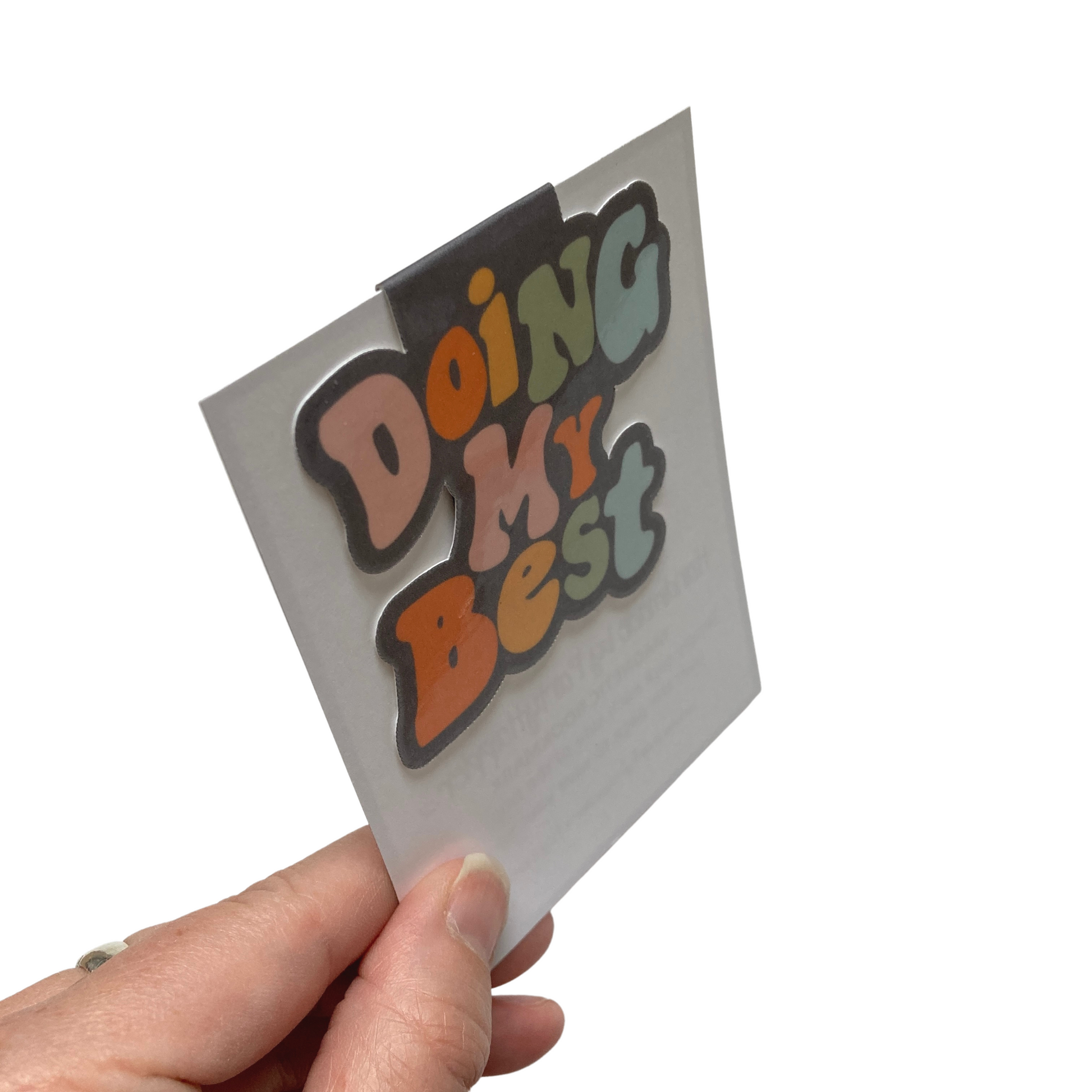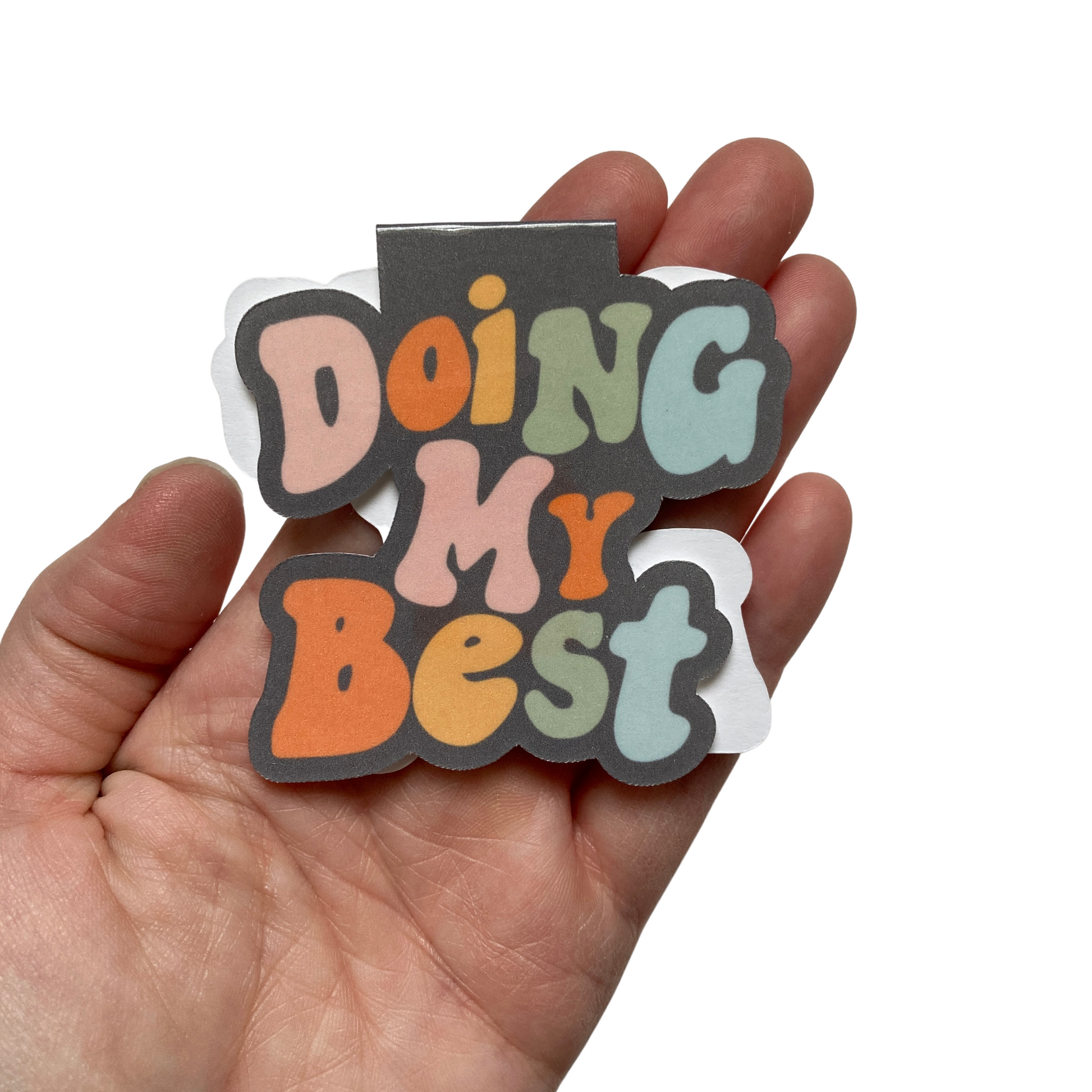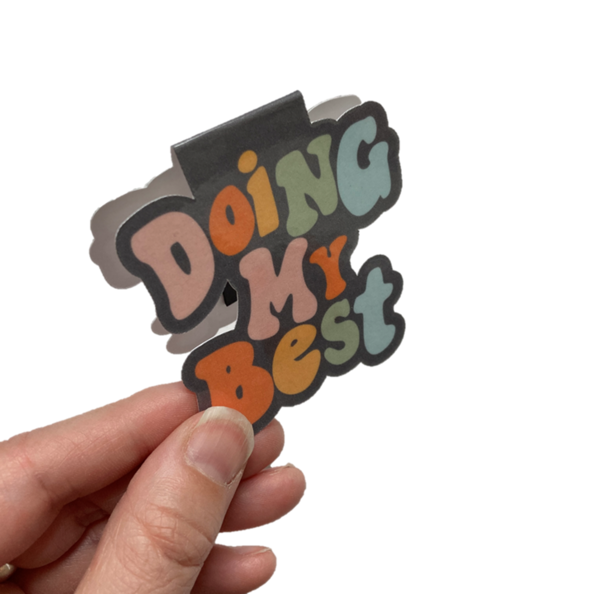 This listing is for one magnetic bookmark that says, "Doing My Best." It's perfect for holding your place just about anywhere! Use it in your favorite book, planner, notebook, or wherever your heart desires!