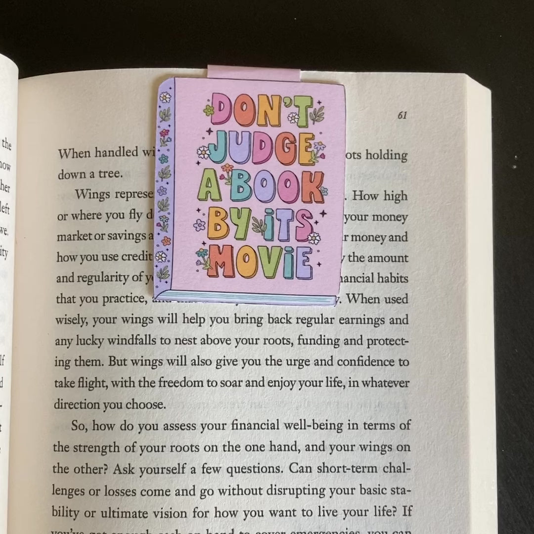 This listing is for one magnetic bookmark that says, "Don't Judge A Book By Its Movie." It's perfect for holding your place just about anywhere! Use it in your favorite book, planner, notebook, or wherever your heart desires!
