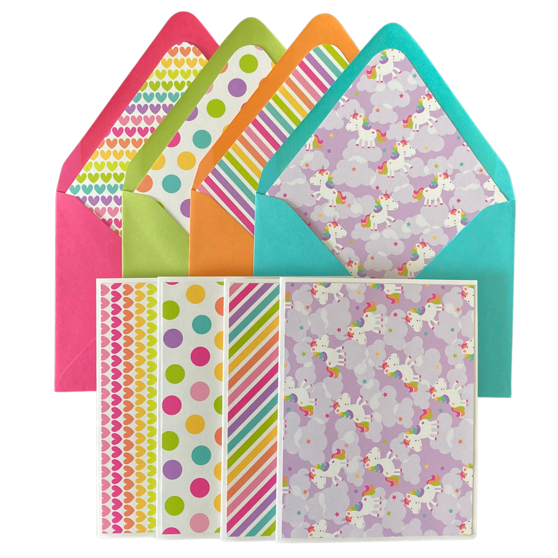 This listing is for 4 beautiful lined envelopes and matching blank note cards. Use them as part of your everyday stationery stash, or give them as a gift!