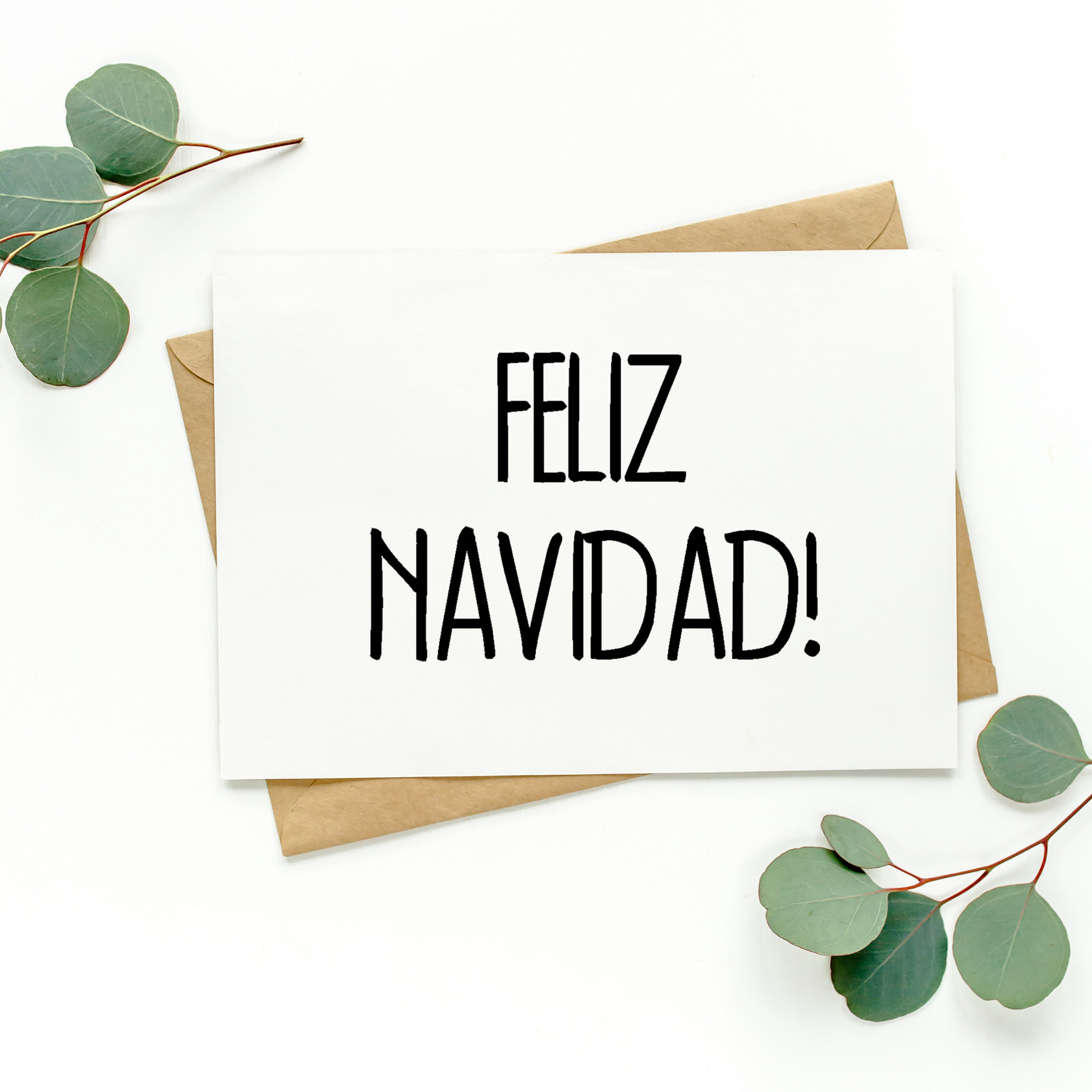 This listing is for one blank greeting card that says, "Feliz Navidad!"