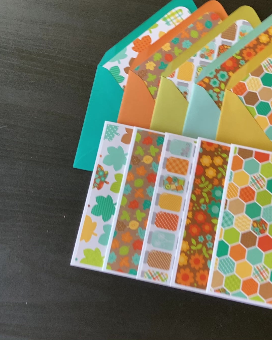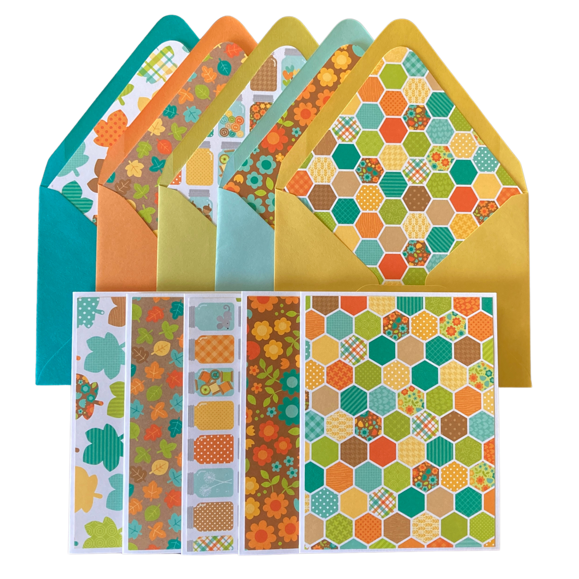 This listing is for 5 beautiful fall-themed envelopes and matching blank note cards. Use them as part of your everyday stationery stash, or give them as a gift!
