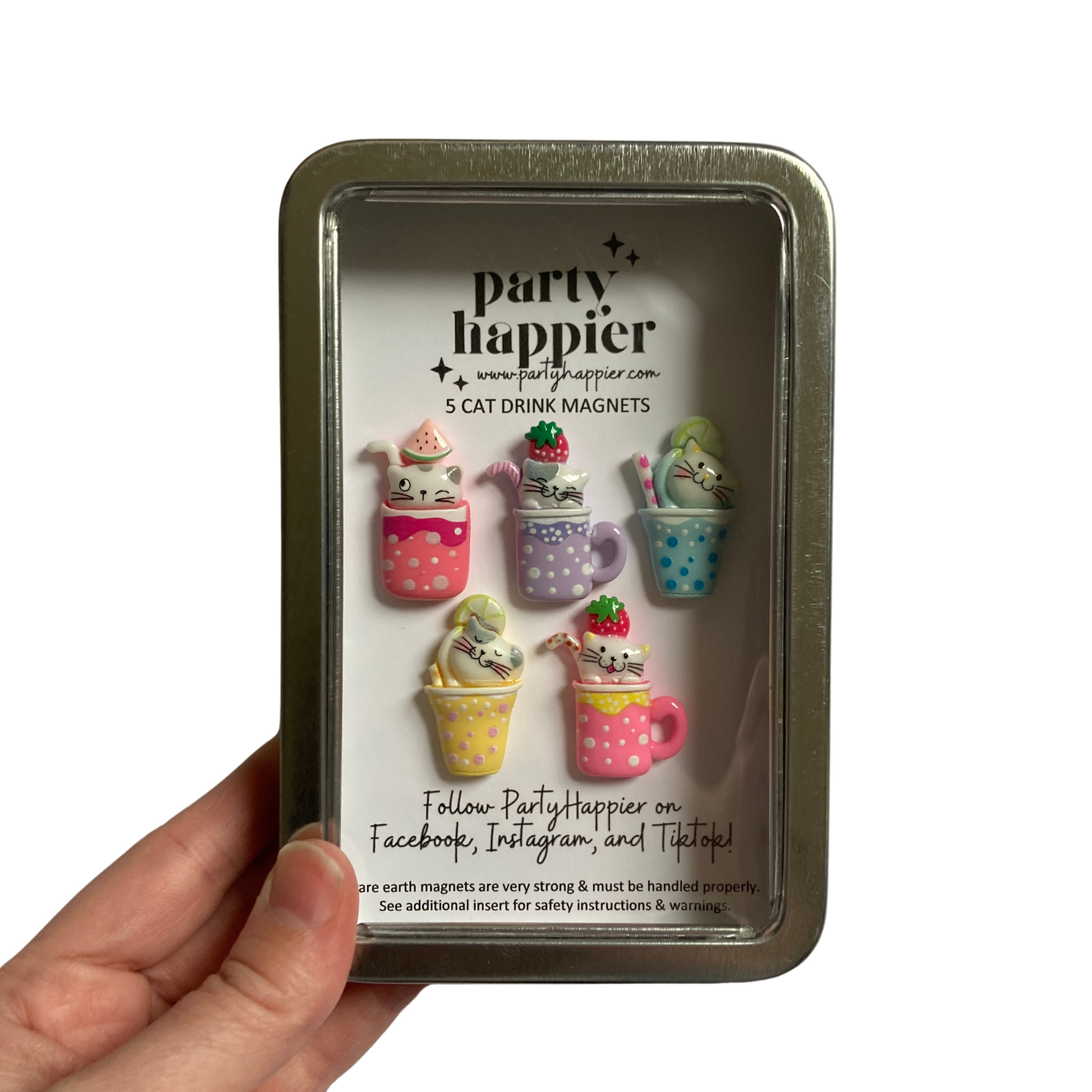 CAUTION: Magnets are not toys and should be kept out of reach of children and pets. Magnets can cause severe injury or death if ingested. Consult a medical professional immediately if swallowed. By purchasing these magnets, you are agreeing to PartyHappier's full safety warning.
