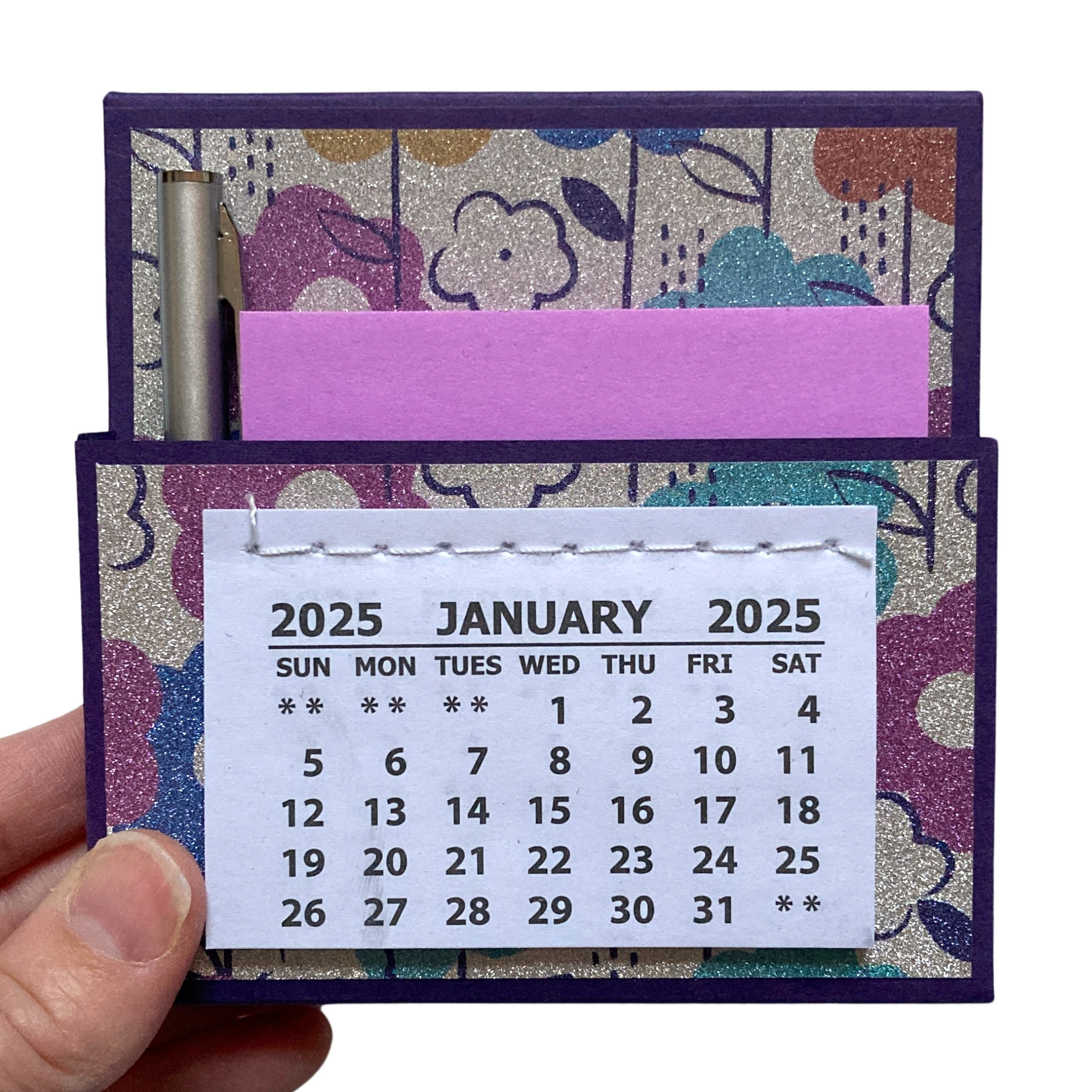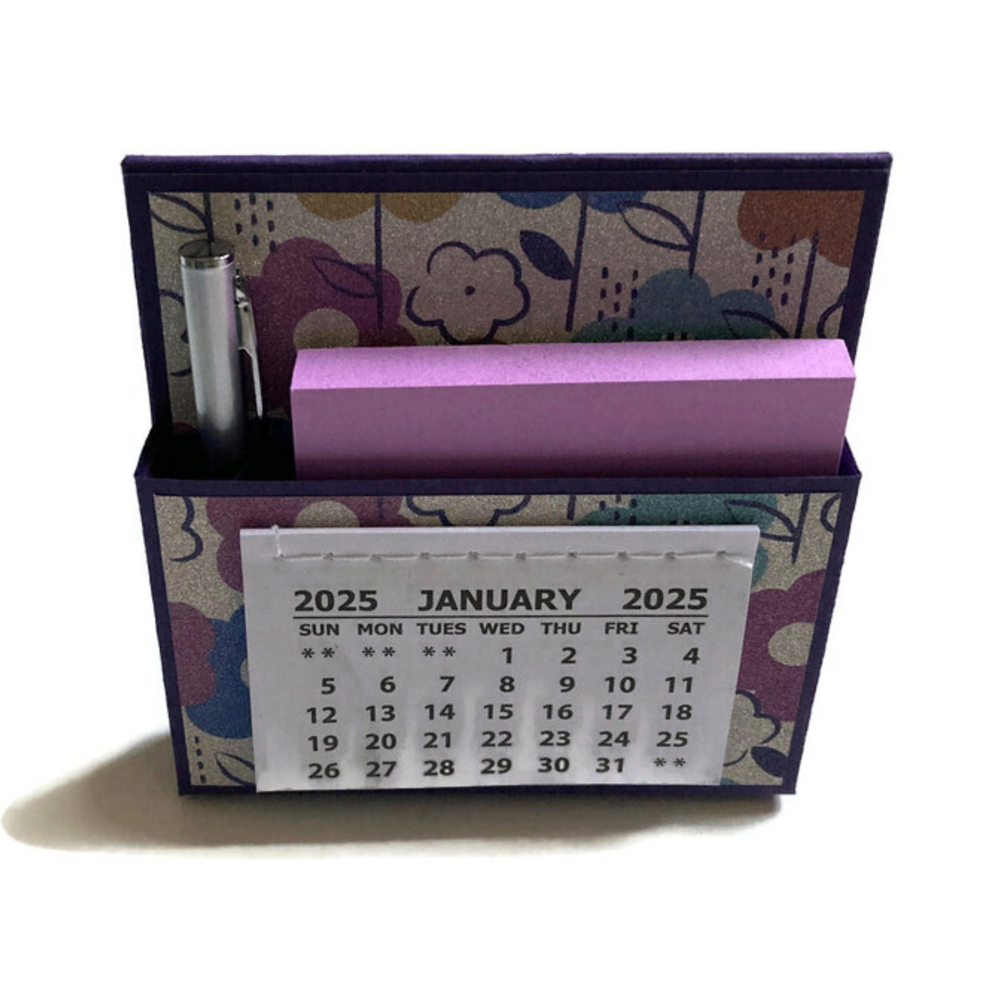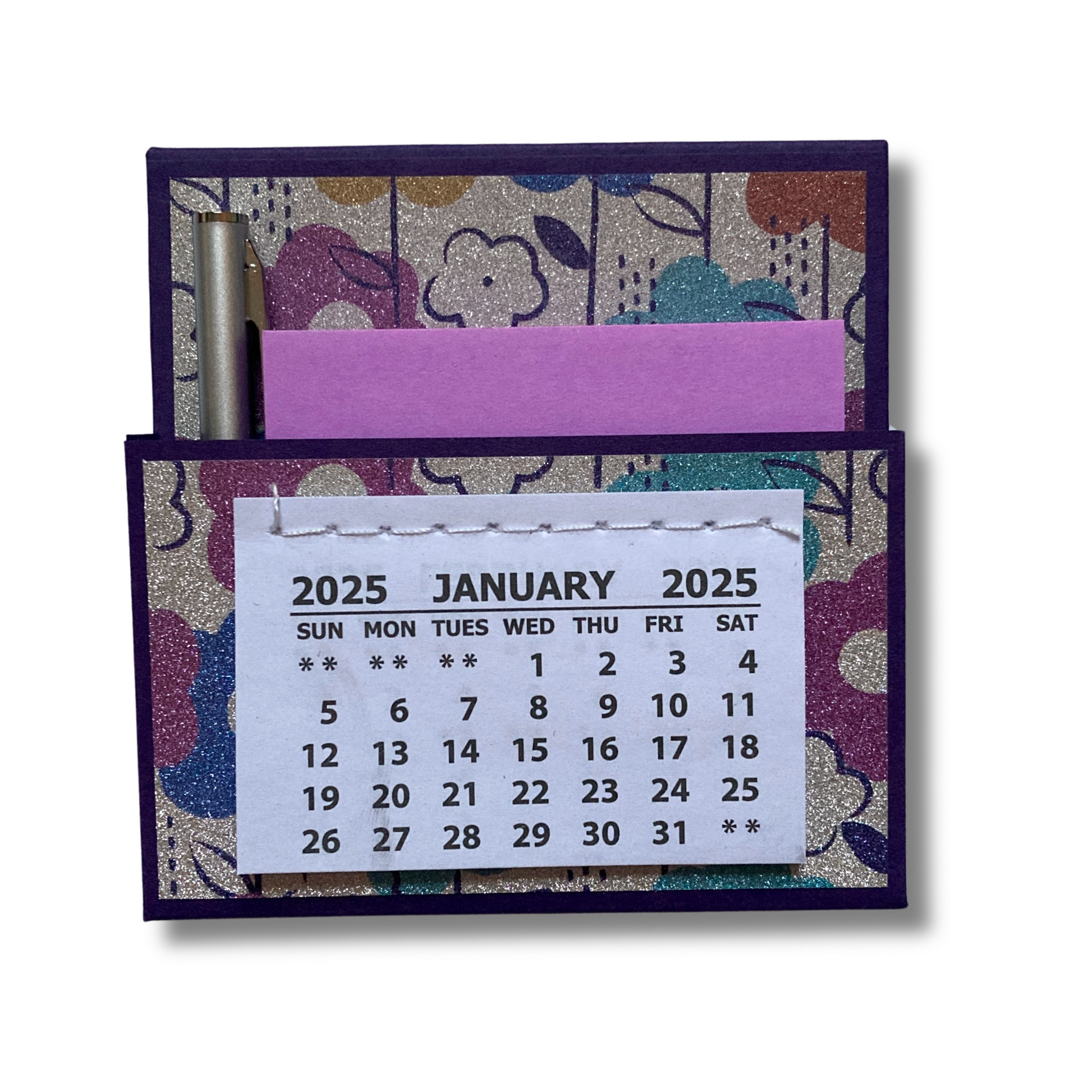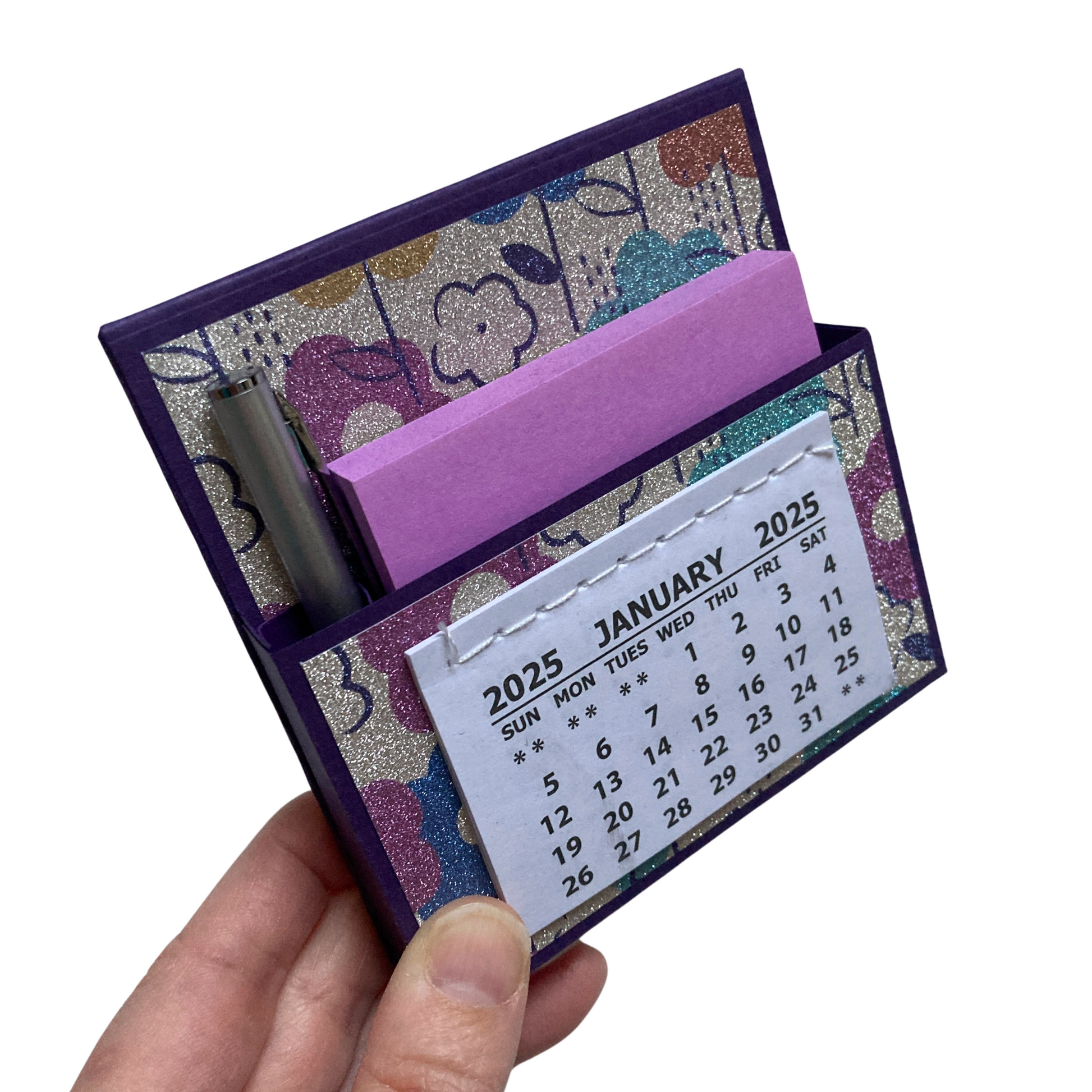 Want a way to add some adorable flair to your home or office? Look no further than this cute little 2025 standing desk calendar! Not only is it a calendar, but it also contains a pocket filled with a sticky note pack and mini pen. It's perfect for keeping yourself organized or giving as a gift!