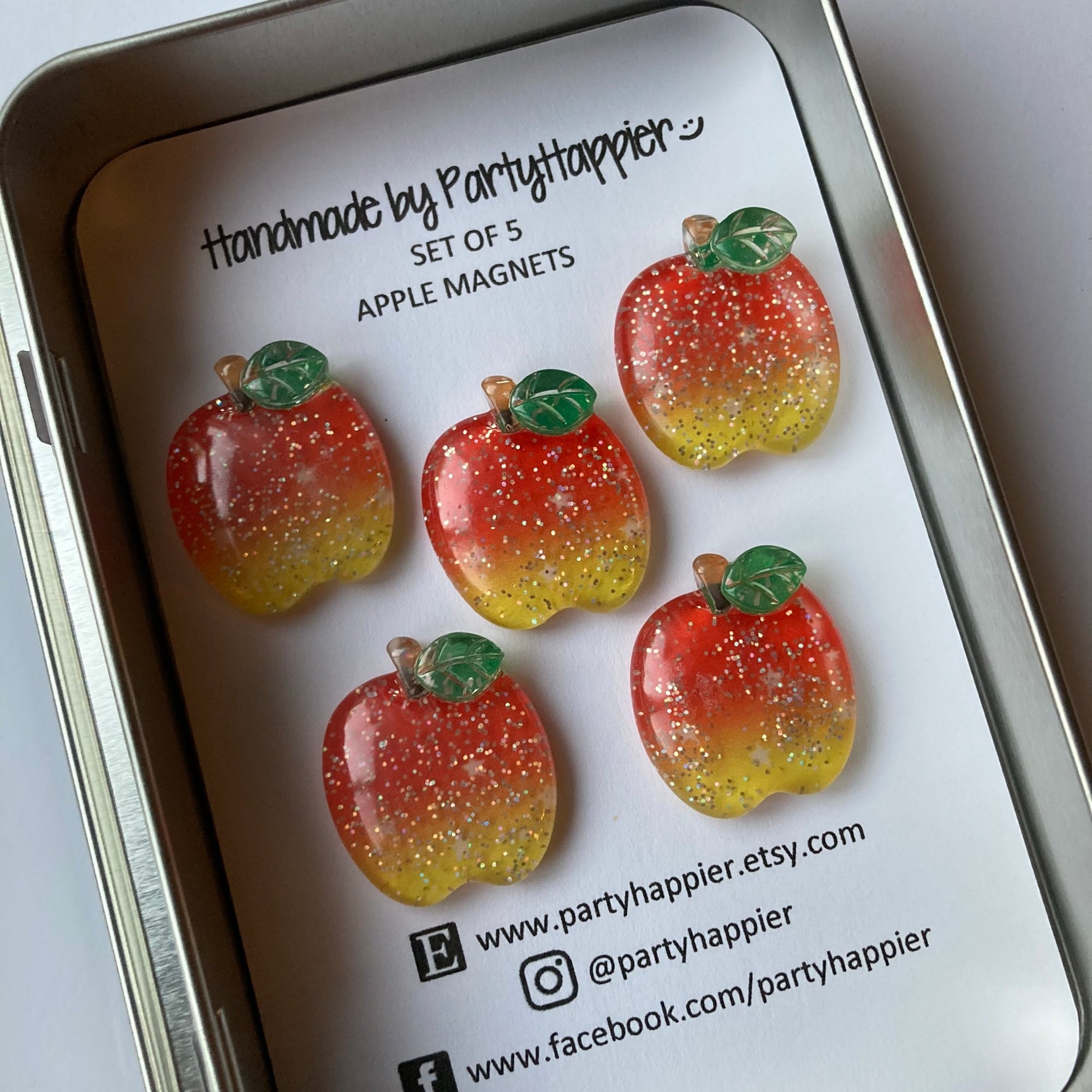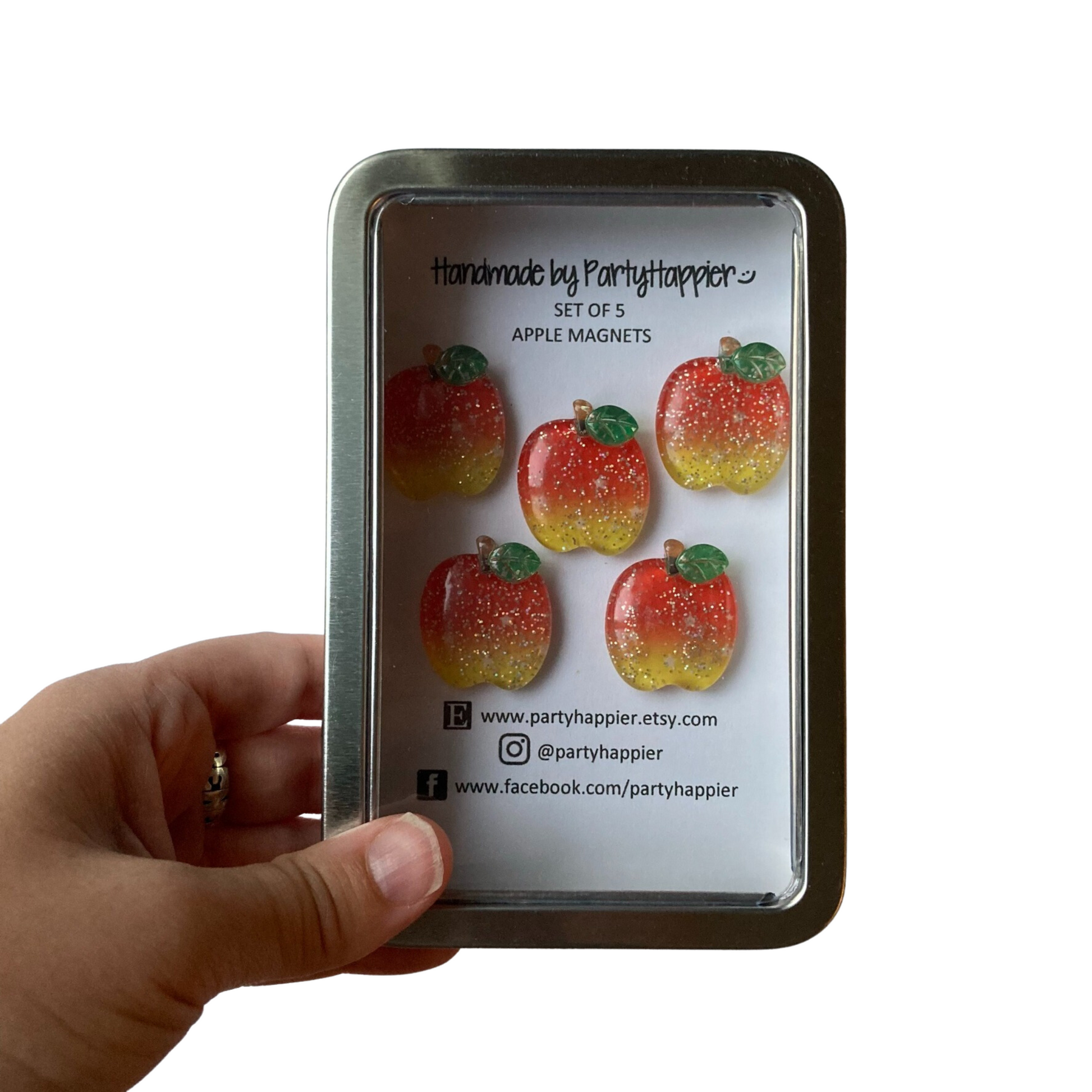 - Includes five 29mm apple magnets