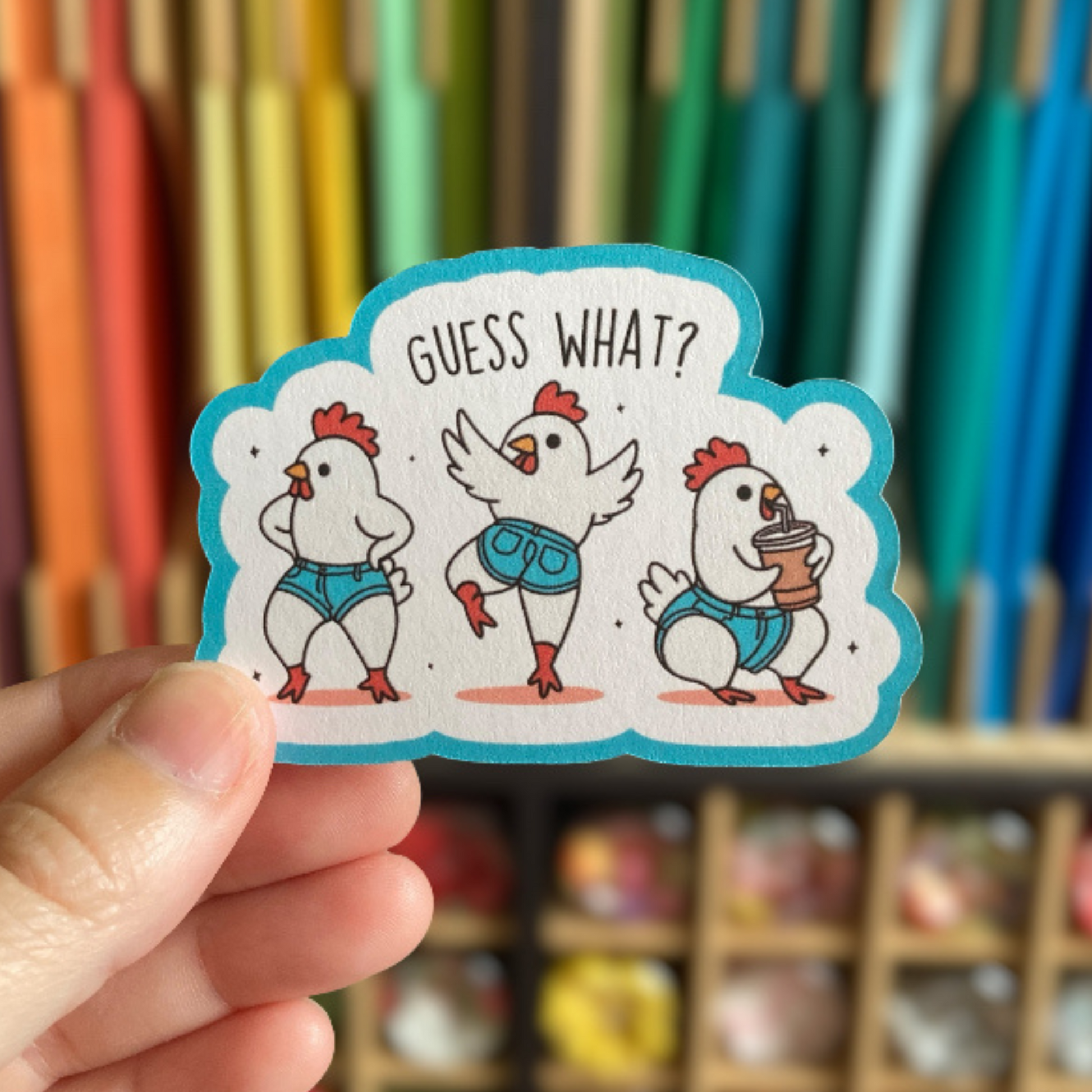 This listing is for one "Guess What Chicken Butt" sticker. How hilarious are these twerking chickens?! The sticker is the perfect addition to your water bottle, computer, notebook, or any surface your heart desires!