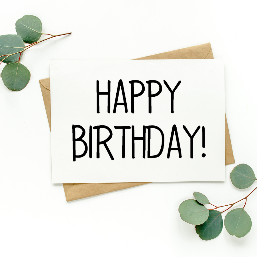 This listing is for one blank greeting card that says, "Happy Birthday!" It's a perfectly simple card to celebrate anyone's special day!