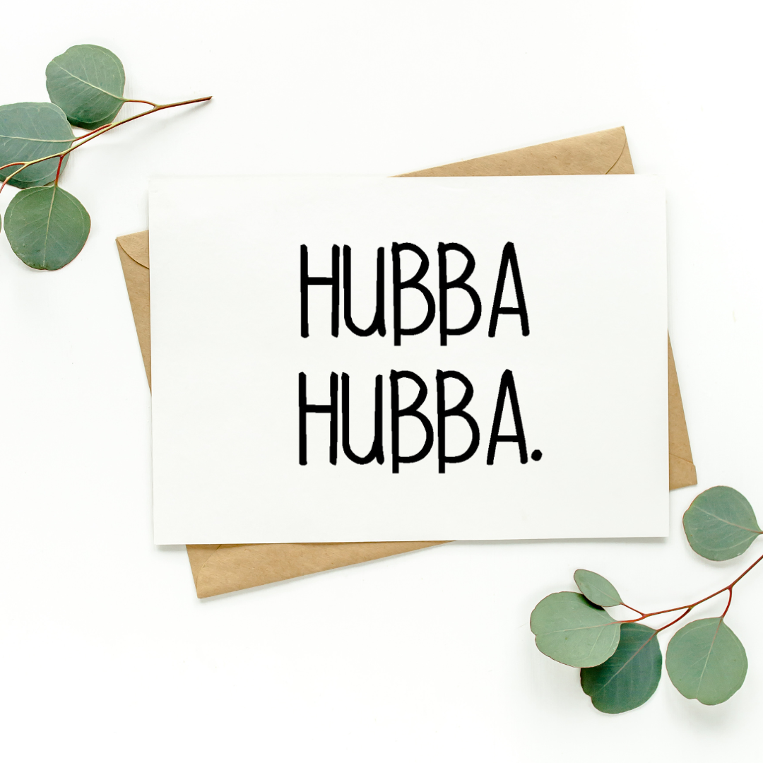 This listing is for one blank greeting card that says, "Hubba Hubba." Such a funny way to let someone how how attractive you think they are!