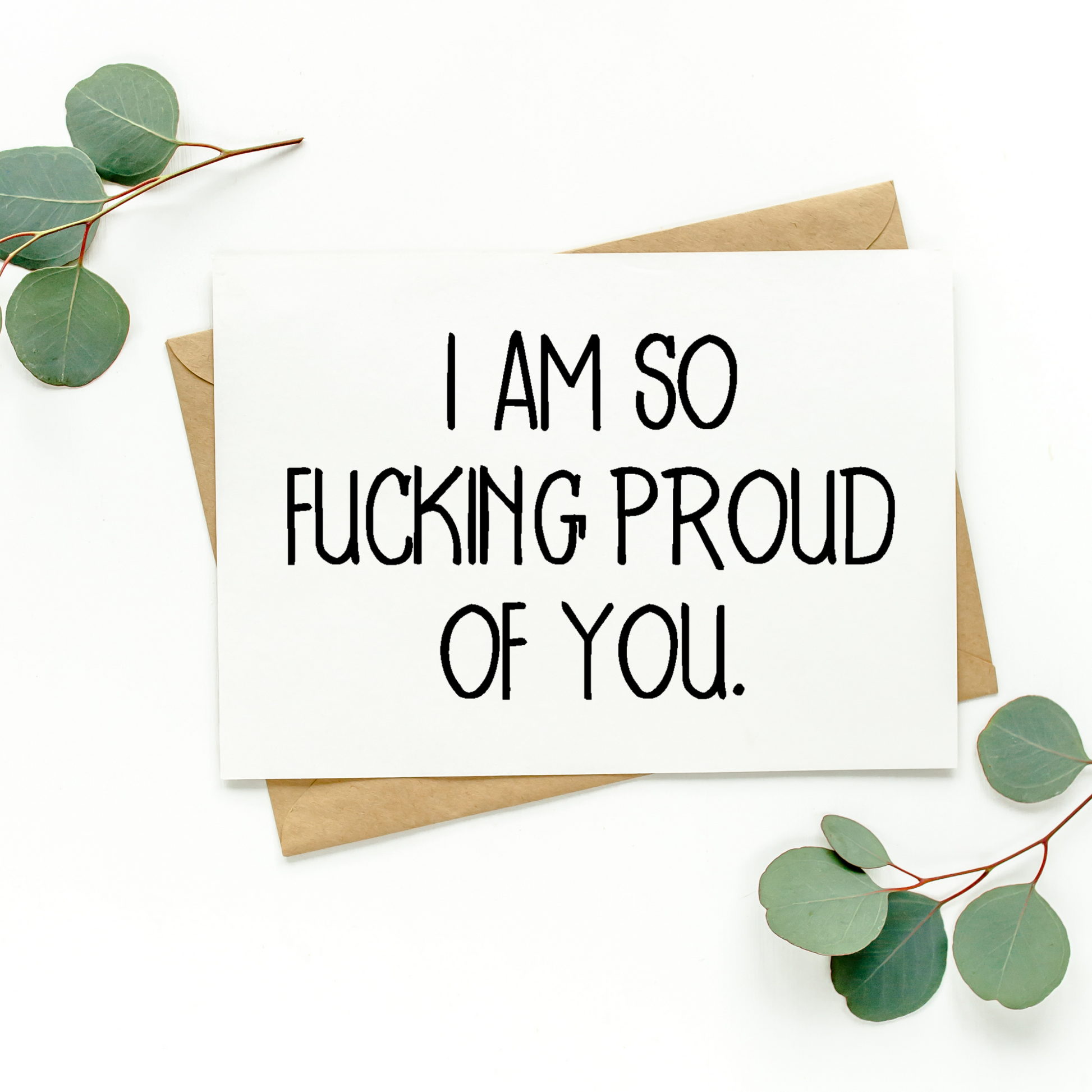 This listing is for one blank greeting card that says, "I Am So Fucking Proud Of You." It's simple yet perfect for so many celebratory occasions!