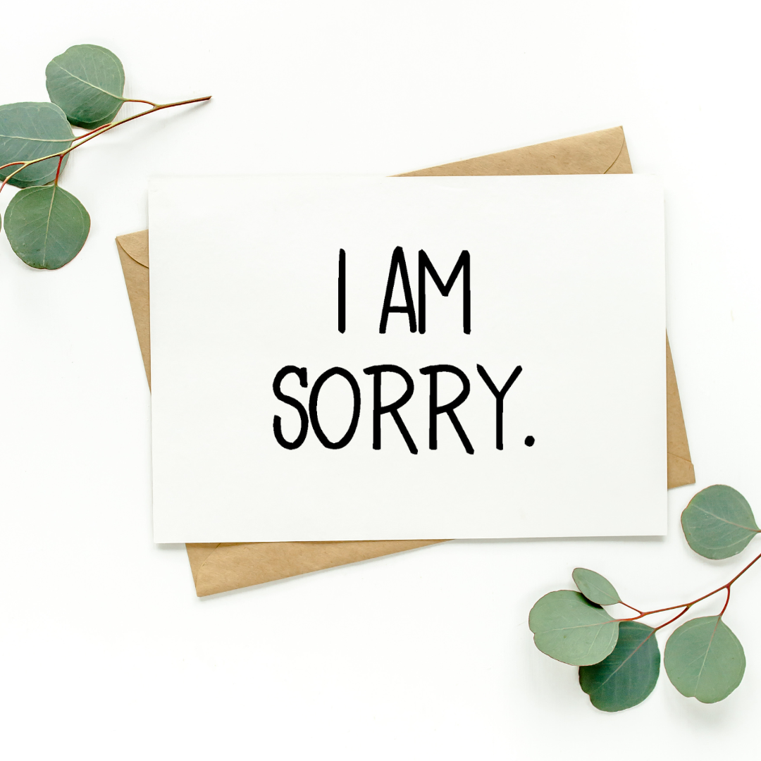 This listing is for one blank greeting card that says, "I Am Sorry." Sometimes there are just no other words to say.