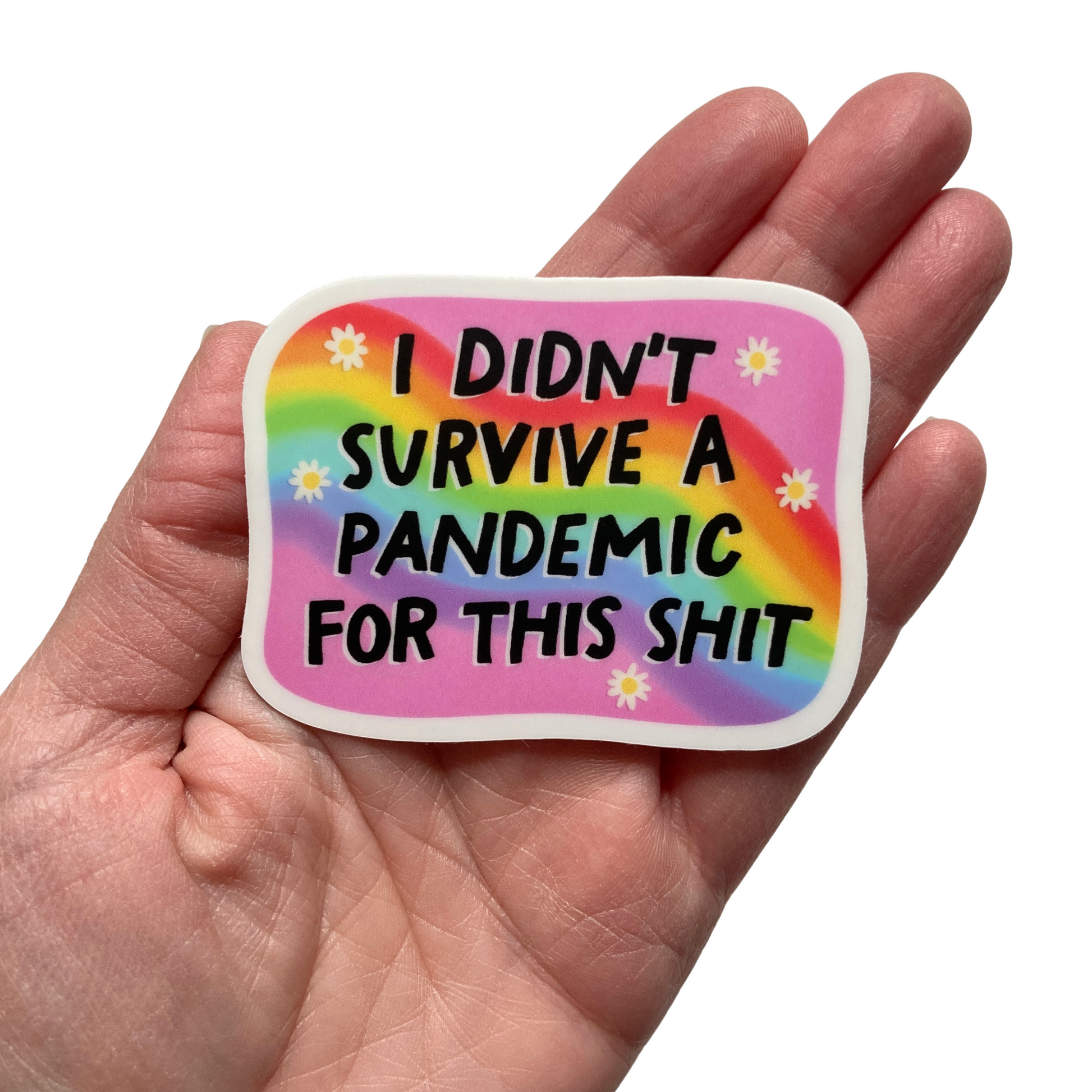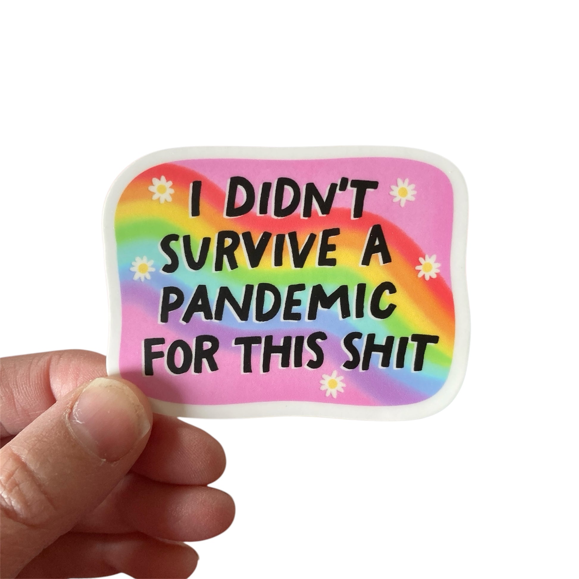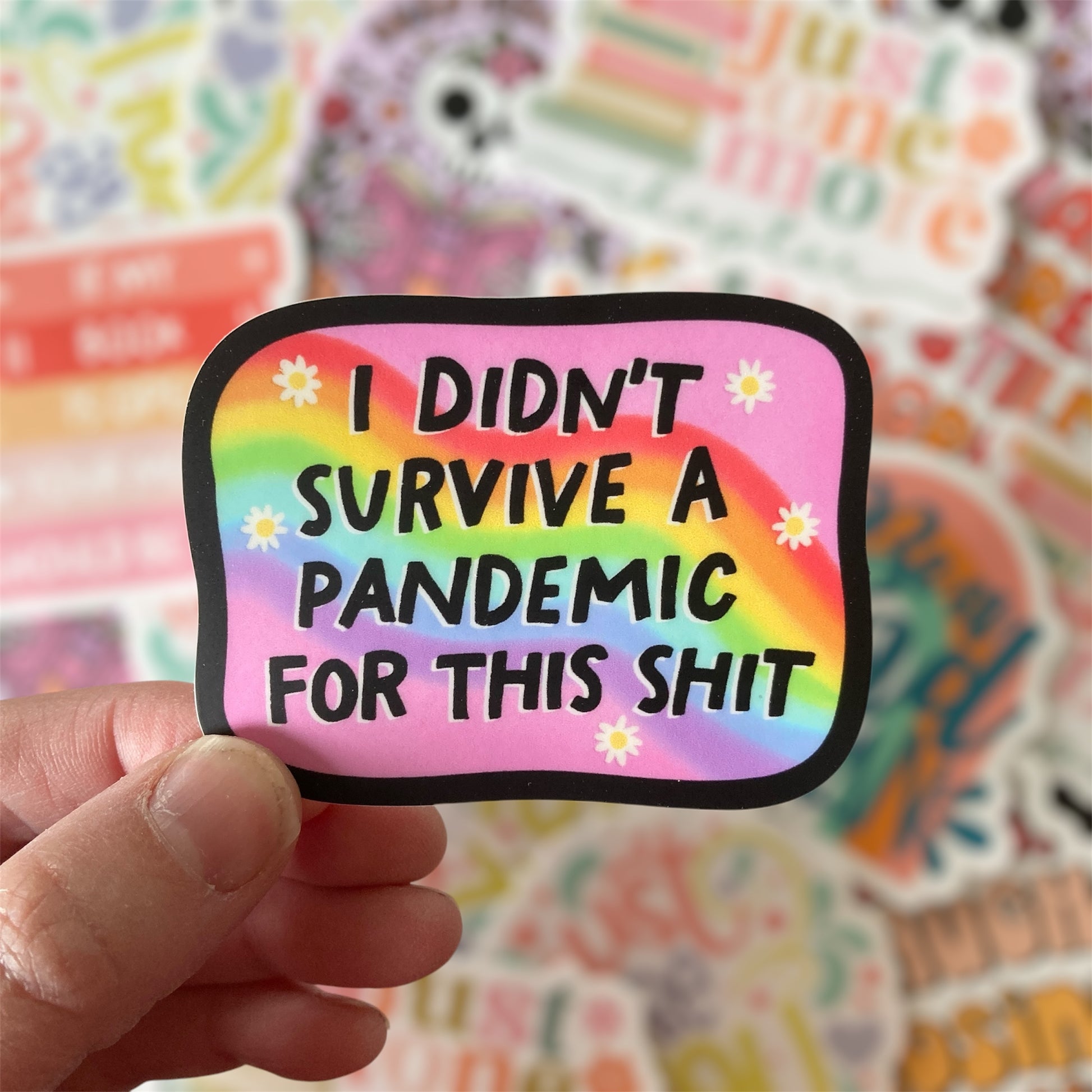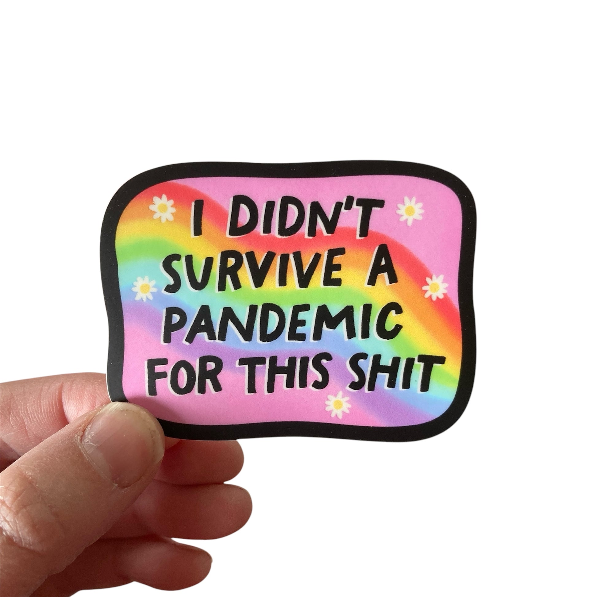 This listing is for one "I Didn't Survive A Pandemic For This Shit" sticker. It is the perfect addition to your water bottle, computer, notebook, or any surface your heart desires!