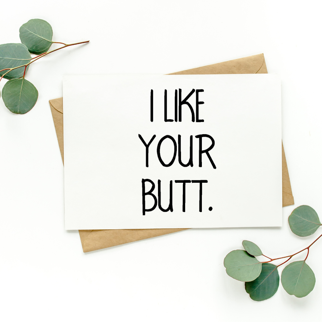This listing is for one blank greeting card that says, "I Like Your Butt." Nothing like getting straight to the point with this one;)