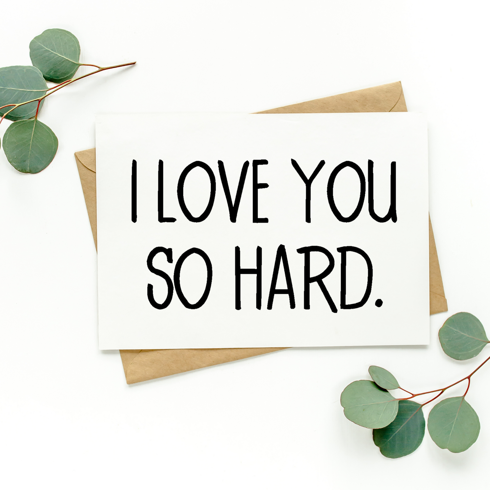 This listing is for one blank greeting card that says, "I Love You So Hard." It's a perfect reminder for anyone special in your life!