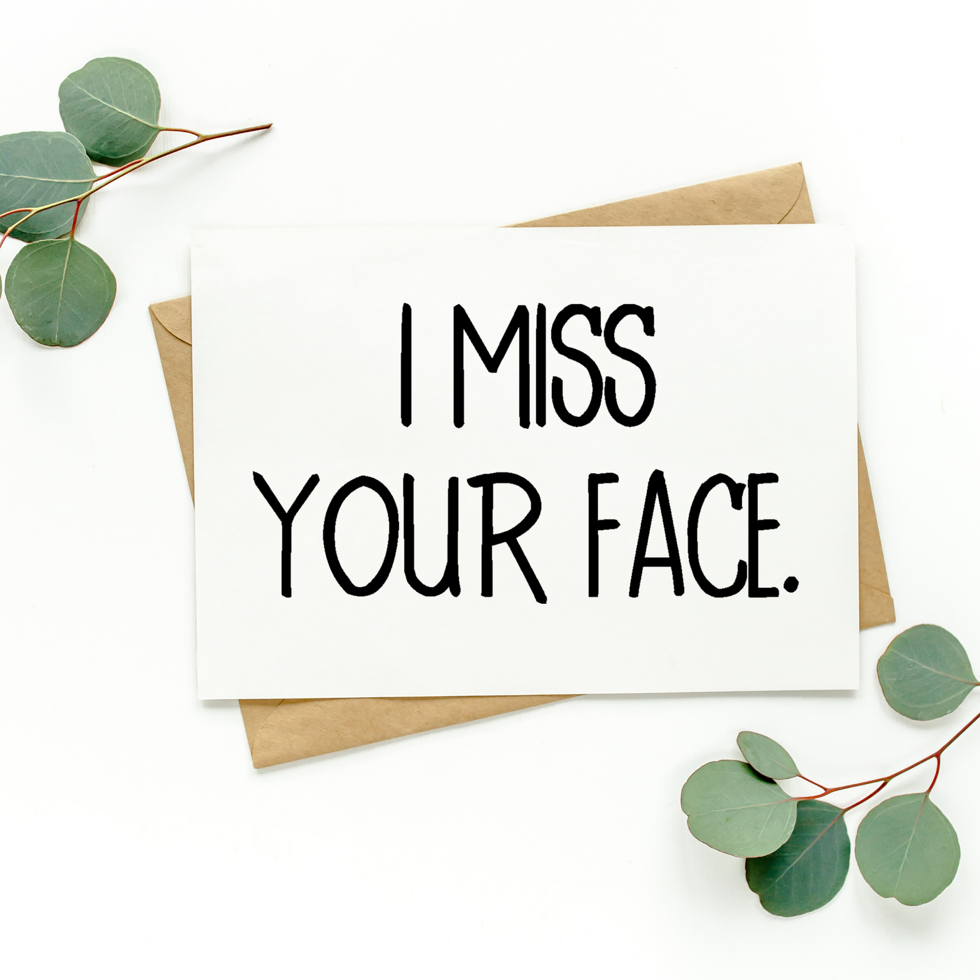 This listing is for one blank greeting card that says "I Miss Your Face." It's a simple card to let someone know you're thinking of them!