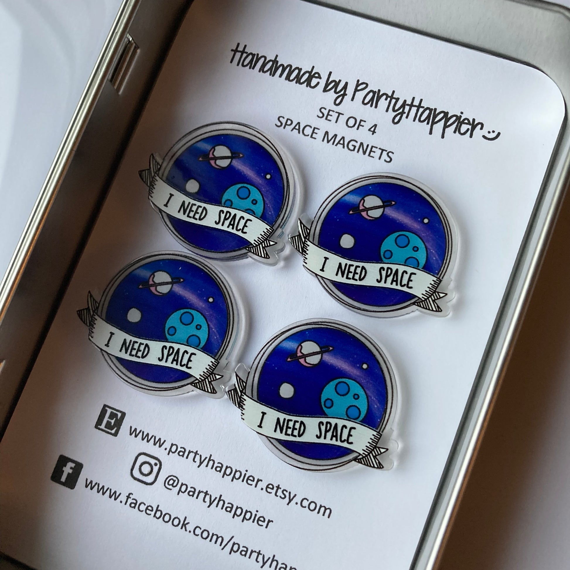 Make any magnetic surface infinitely cuter with these cute "I Need Space" magnets!