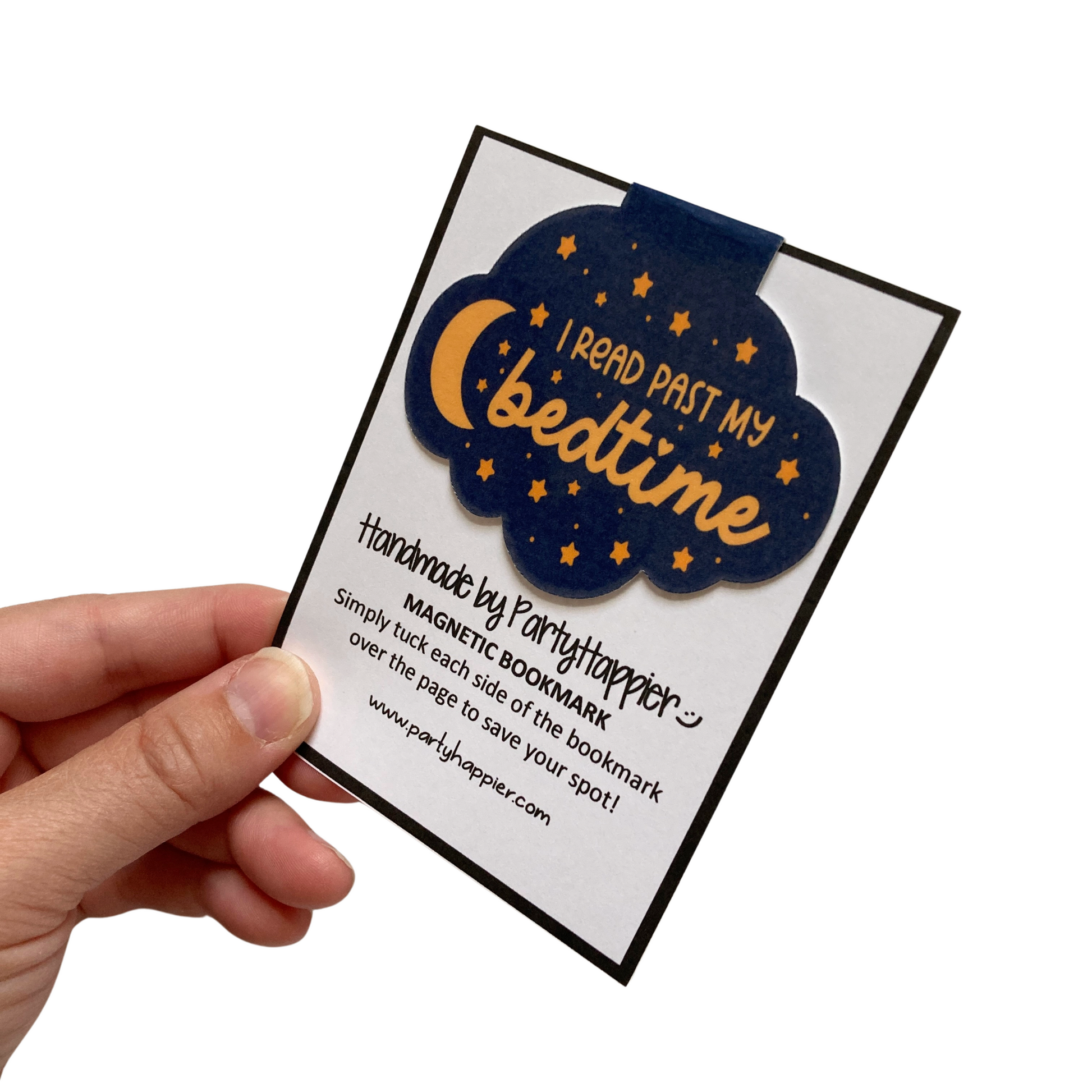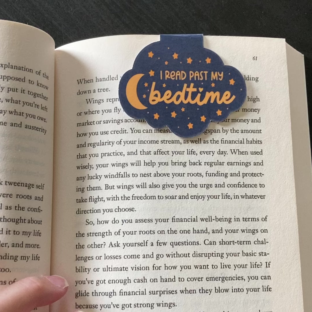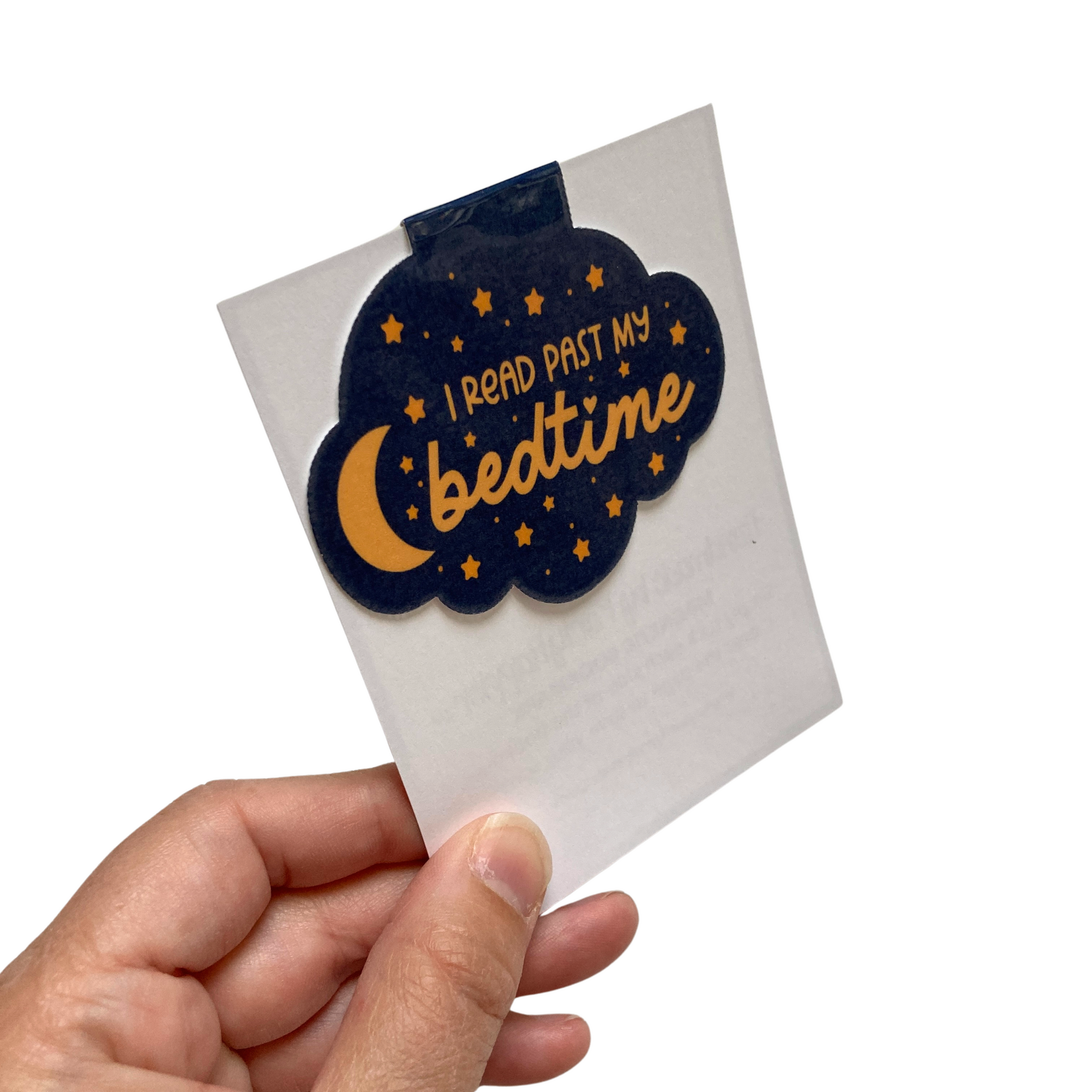 This listing is for one magnetic bookmark that says, "I Read Past My Bedtime." It's perfect for holding your place just about anywhere! Use it in your favorite book, planner, notebook, or wherever your heart desires!