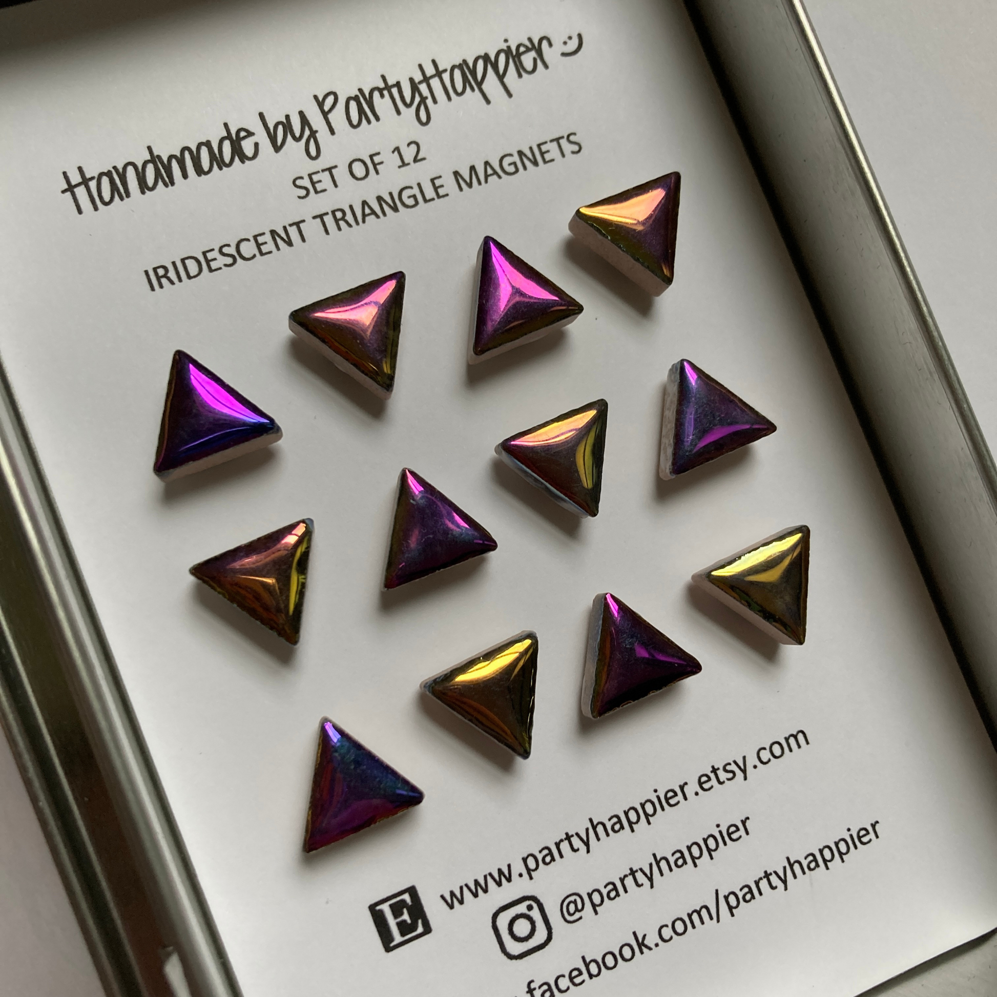 Make any magnetic surface infinitely cuter with these adorable purple and gold triangle magnets!