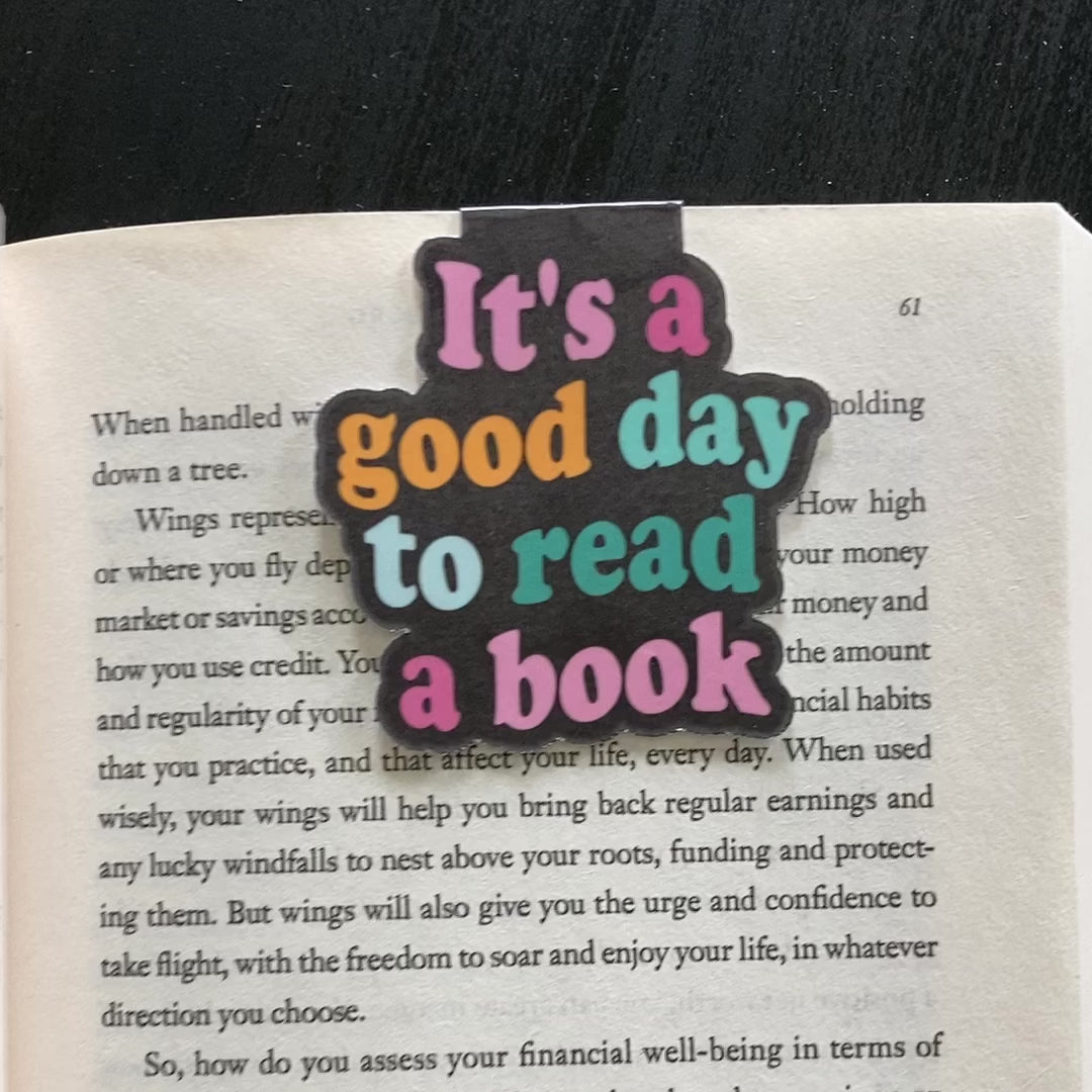 This listing is for one magnetic bookmark that says, "It's A Good Day To Read A Book." It's perfect for holding your place just about anywhere! Use it in your favorite book, planner, notebook, or wherever your heart desires!