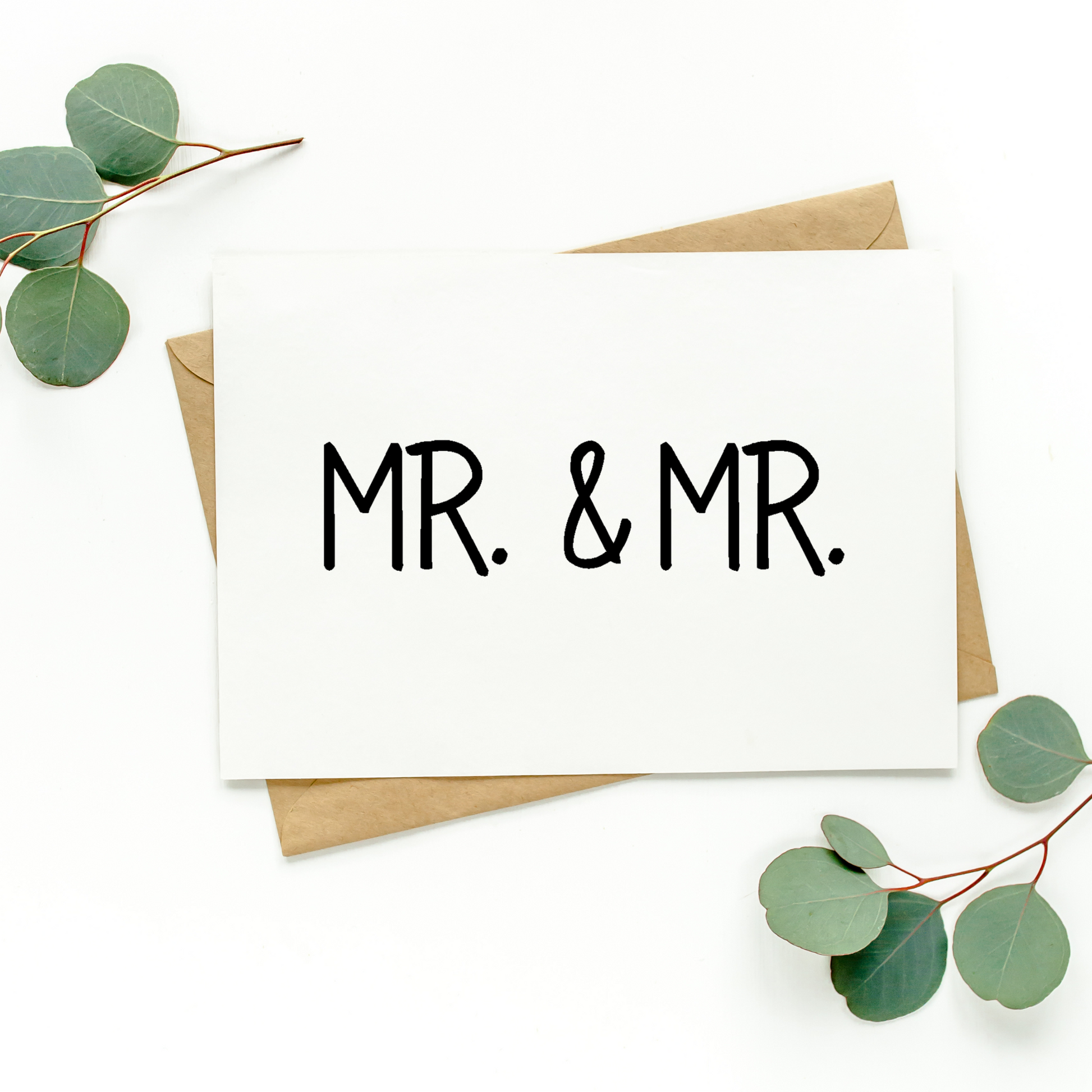 This listing is for one blank greeting card that says, "Mr. and Mr." It's a simple yet perfect to celebrate your favorite newlyweds!