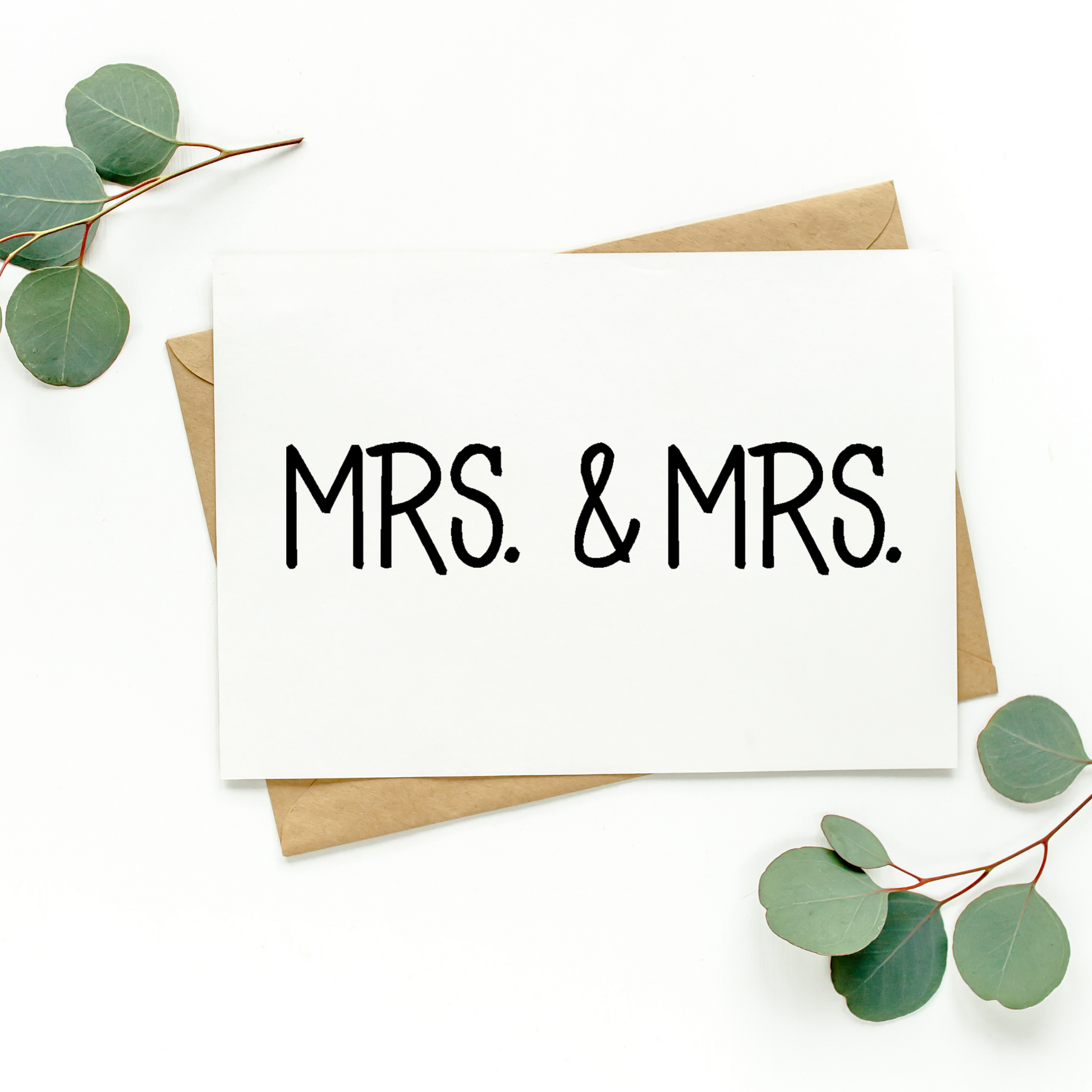 This listing is for one blank greeting card that says, "Mrs. and Mrs." It's a simple yet perfect to celebrate your favorite newlyweds!
