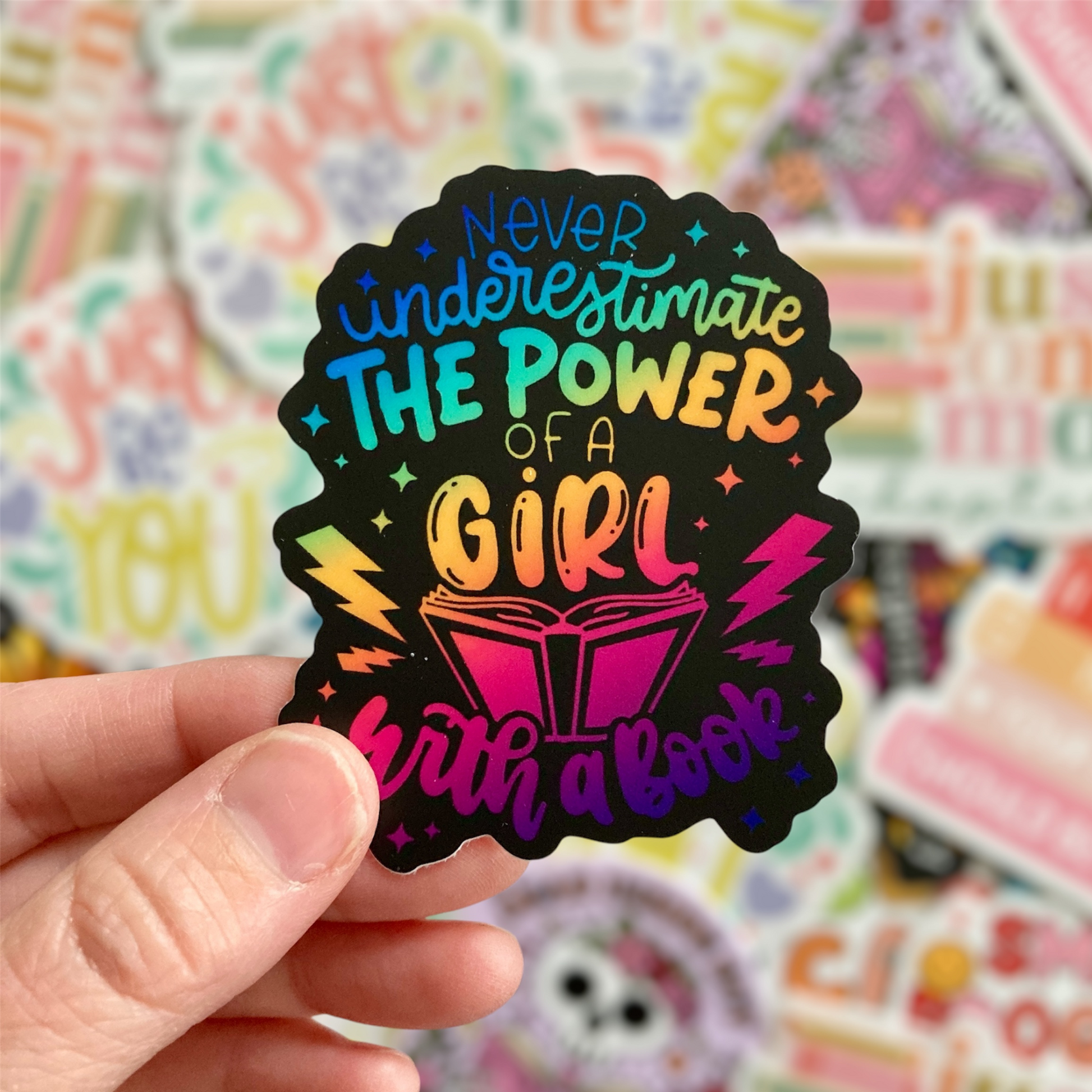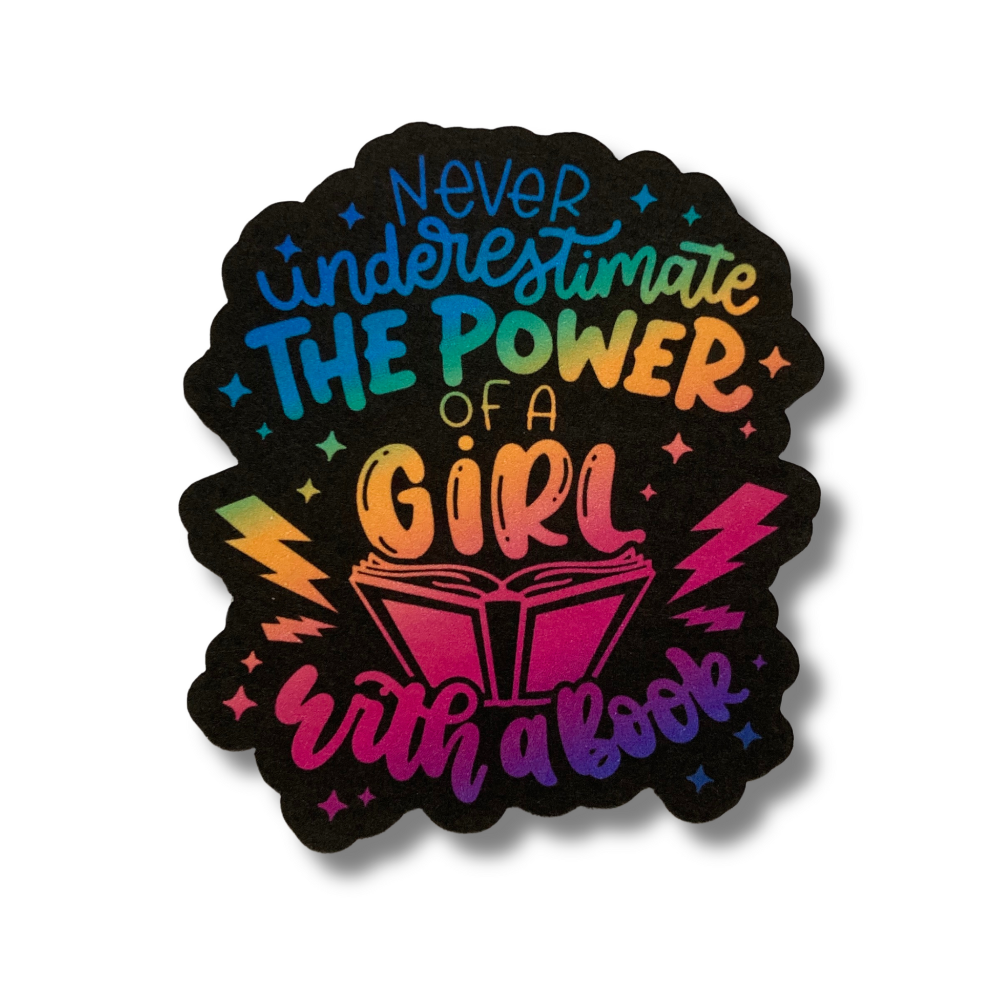 Never Underestimate The Power Of A Girl With A Book Sticker