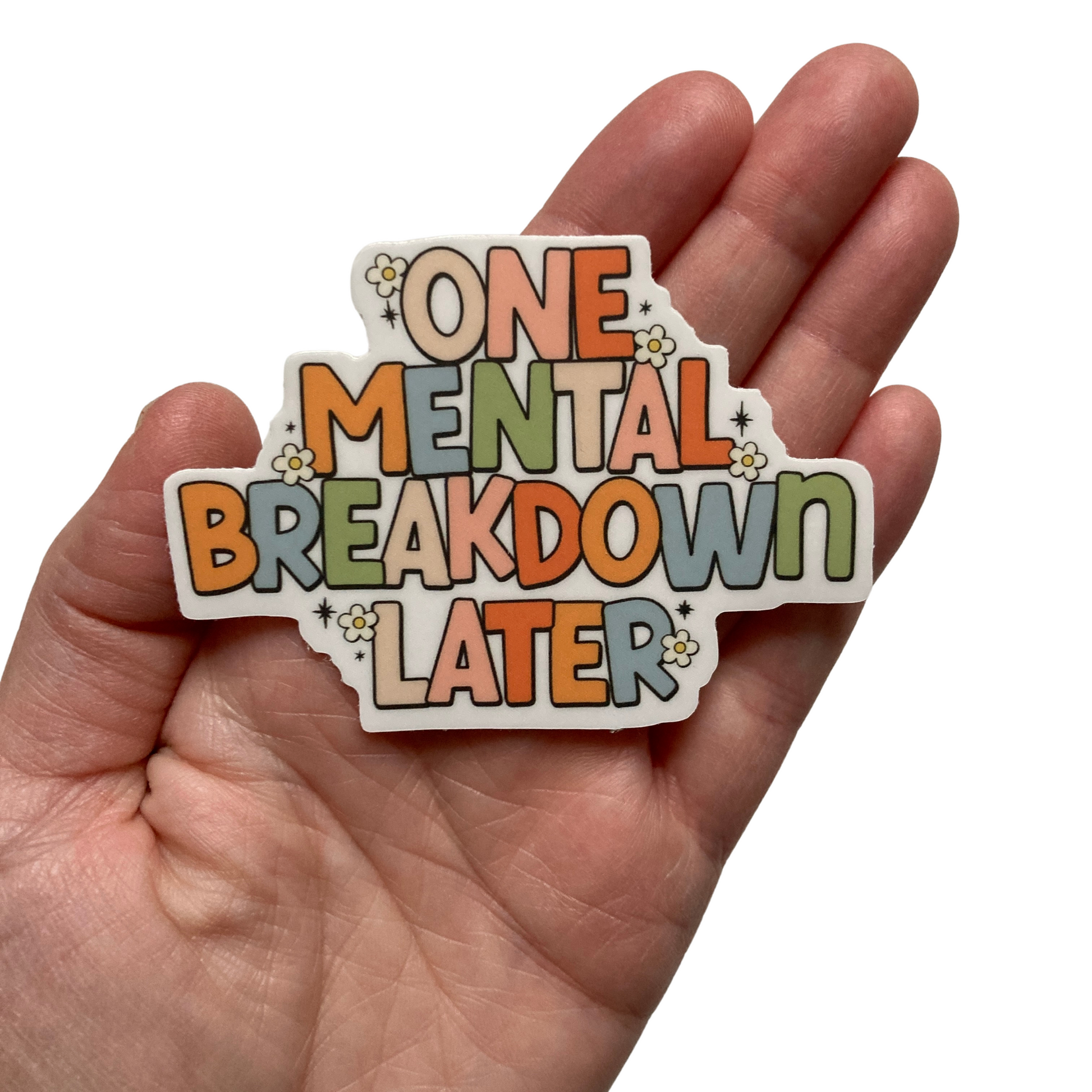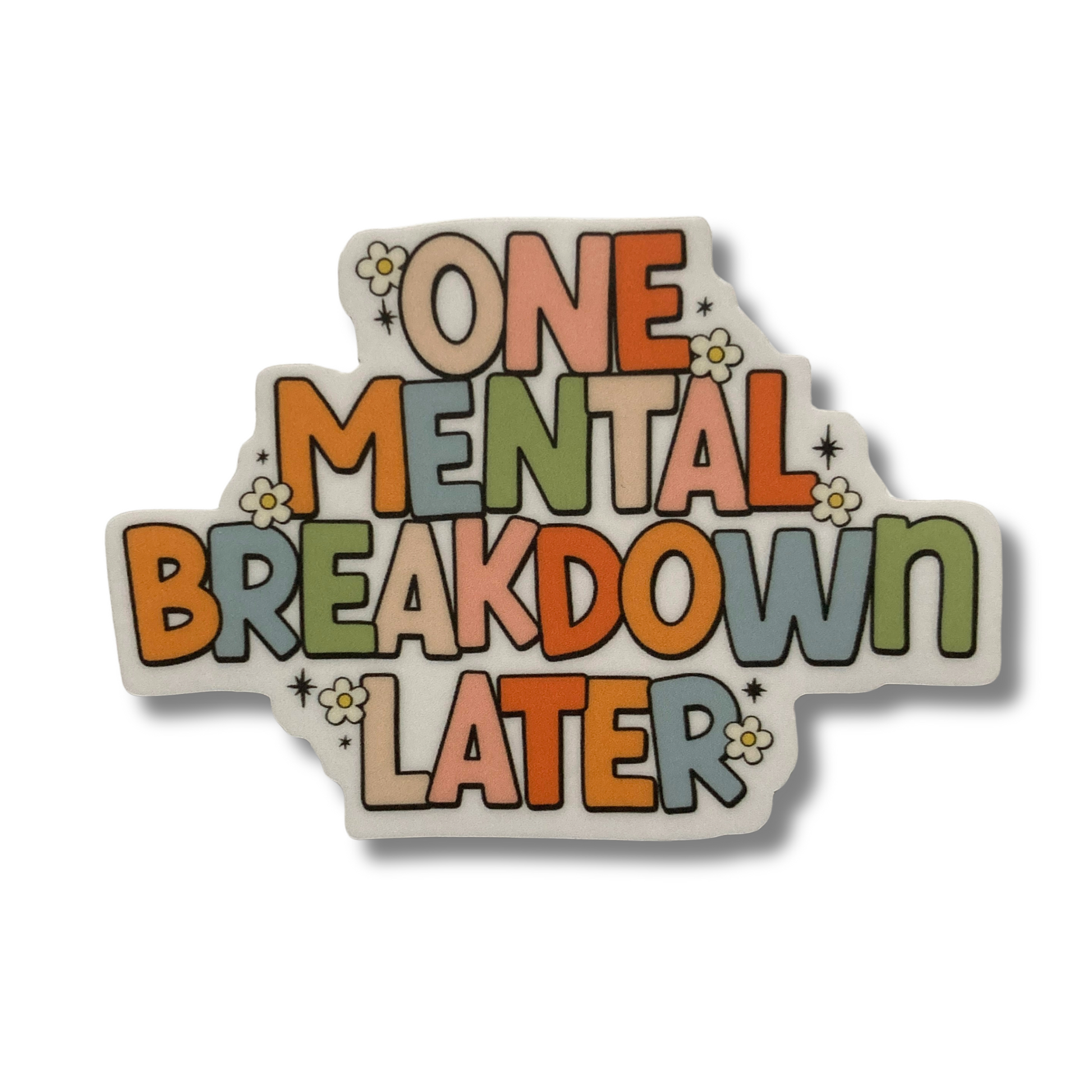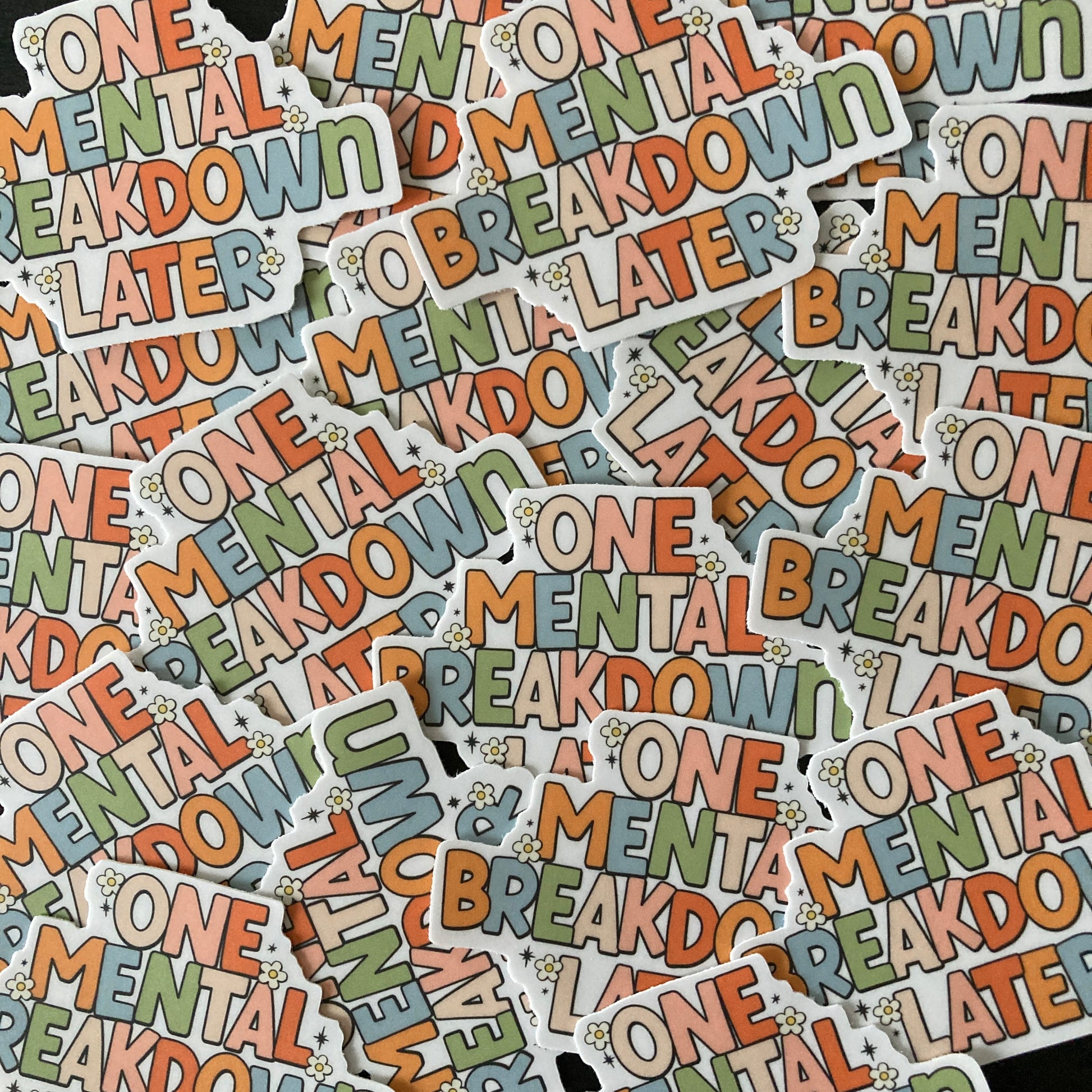 This listing is for one "One Mental Breakdown Later" vinyl sticker. It is the perfect addition to your water bottle, computer, notebook, or any surface you desire!