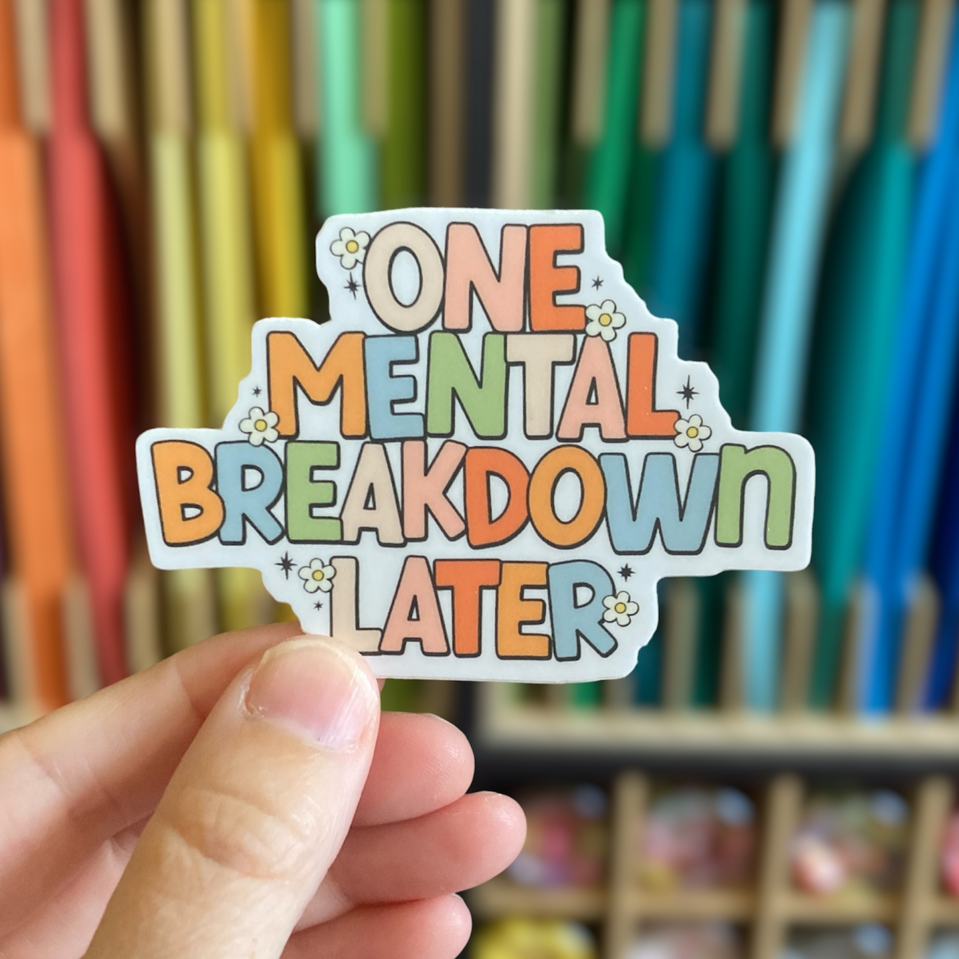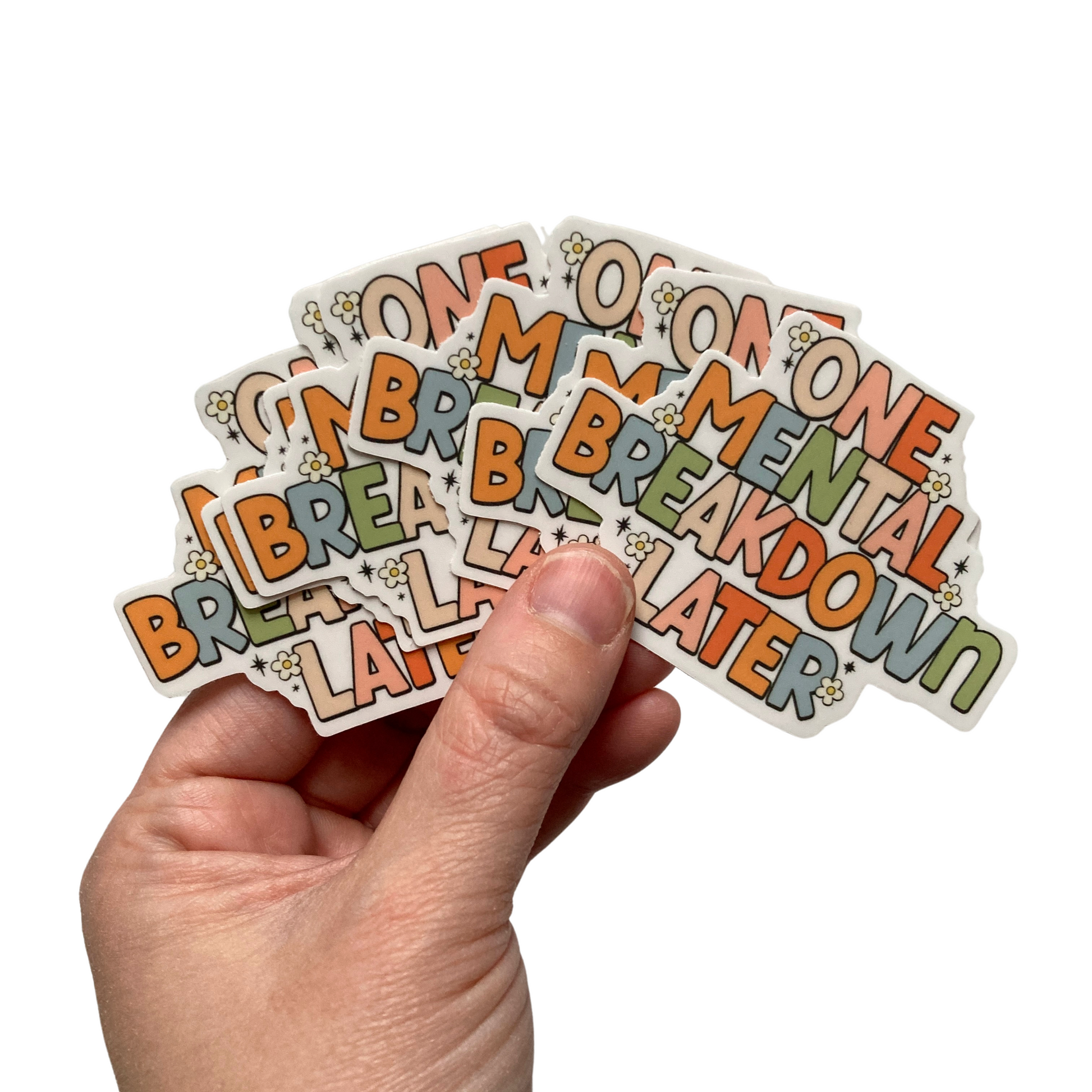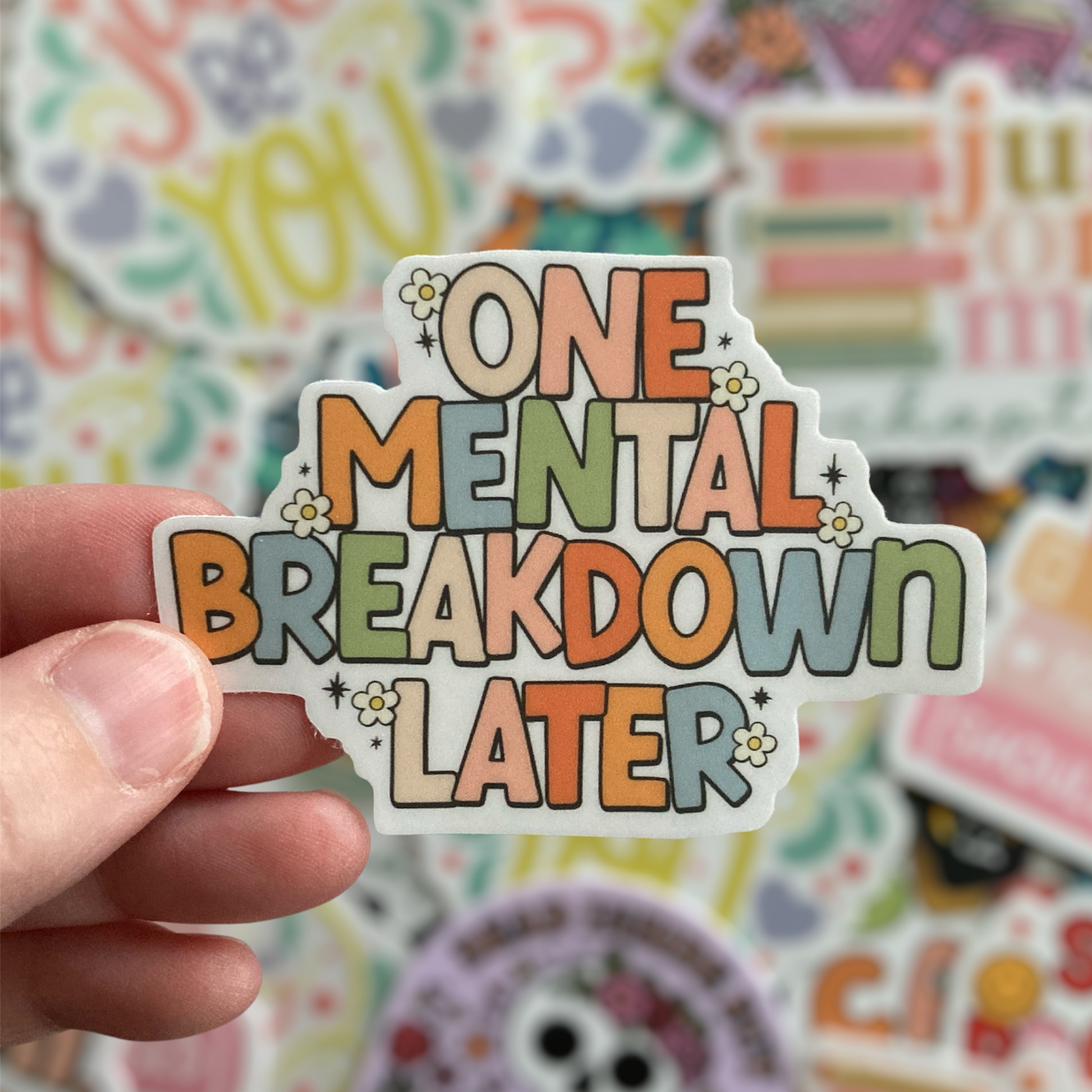 This listing is for one "One Mental Breakdown Later" vinyl sticker. It is the perfect addition to your water bottle, computer, notebook, or any surface you desire!
