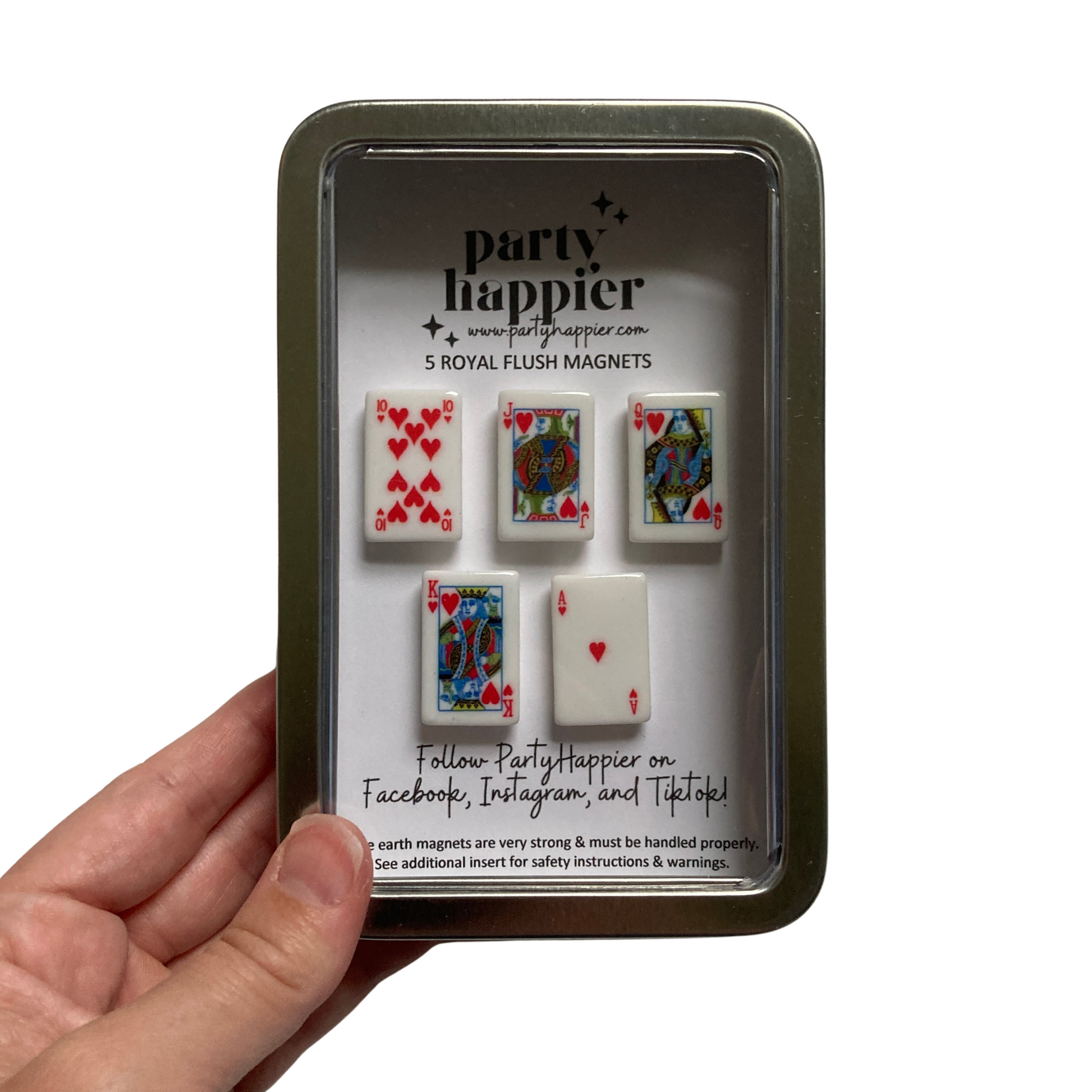 CAUTION: Magnets are not toys and should be kept out of reach of children and pets. Magnets can cause severe injury or death if ingested. Consult a medical professional immediately if swallowed. By purchasing these magnets, you are agreeing to PartyHappier's full safety warning.