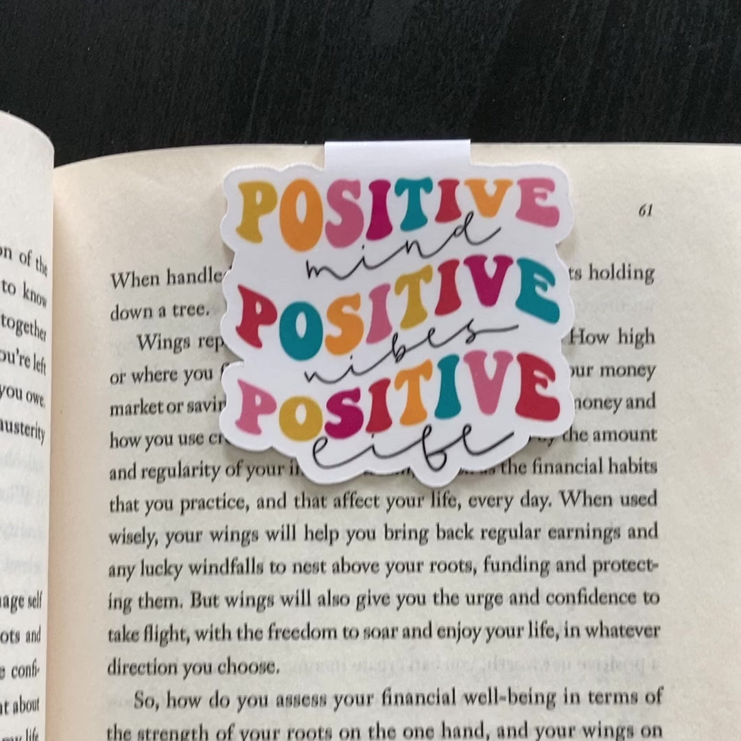 This listing is for one magnetic bookmark that says, "Positive Mind Positive Vibes Positive Life." It's perfect for holding your place just about anywhere! Use it in your favorite book, planner, notebook, or wherever your heart desires!