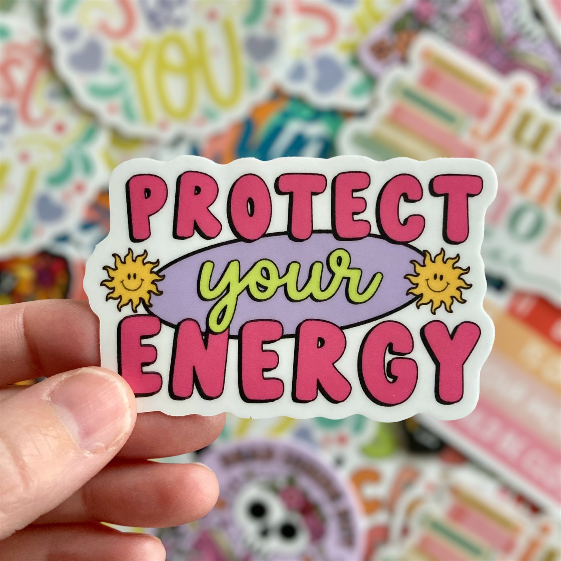 This listing is for one "Protect Your Energy" sticker. It is the perfect addition to your water bottle, computer, notebook, or any surface you desire!