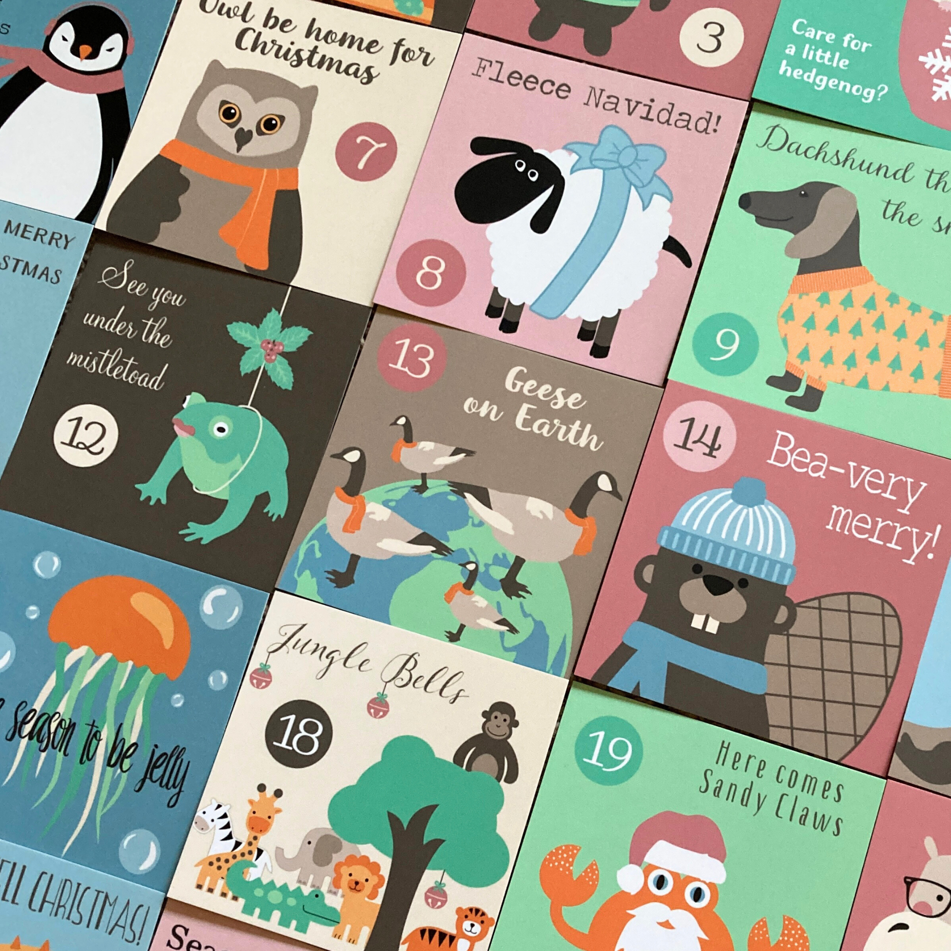 This set of punny animal Advent calendar prints is designed to bring a little humor to the holiday season! You can display them in your home, attach them to daily Advent gifts, or even give them as cards! The best part? They are great quality and can be reused if desired!
