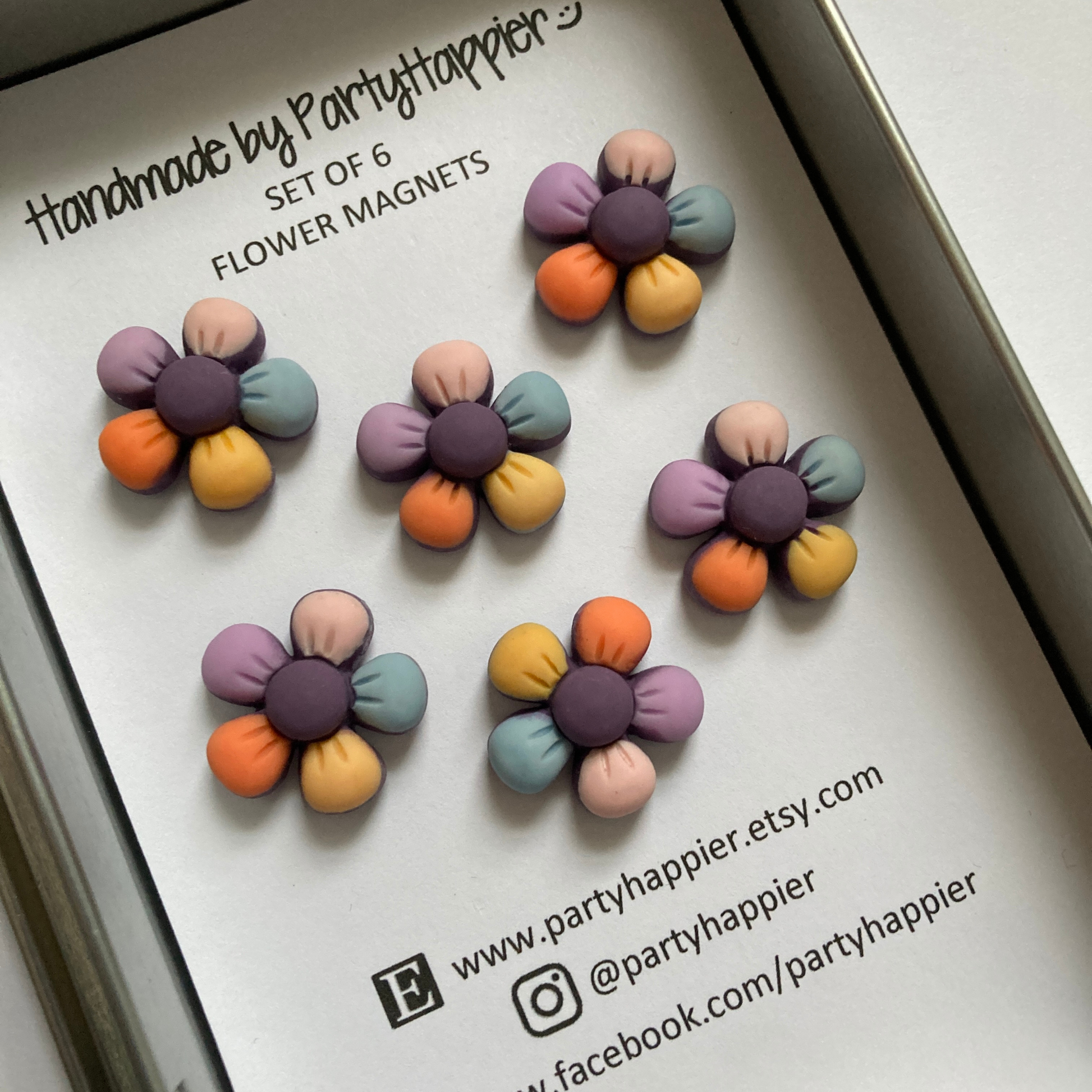 - Includes six 21mm floral magnets