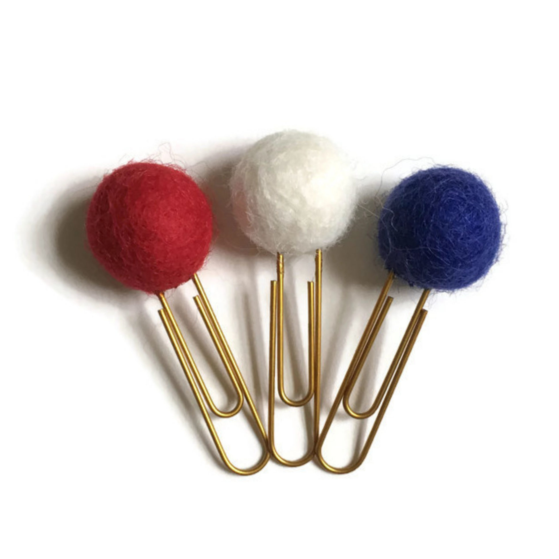 Scarlet, Snow, & Cobalt Felt Pom Paper Clips