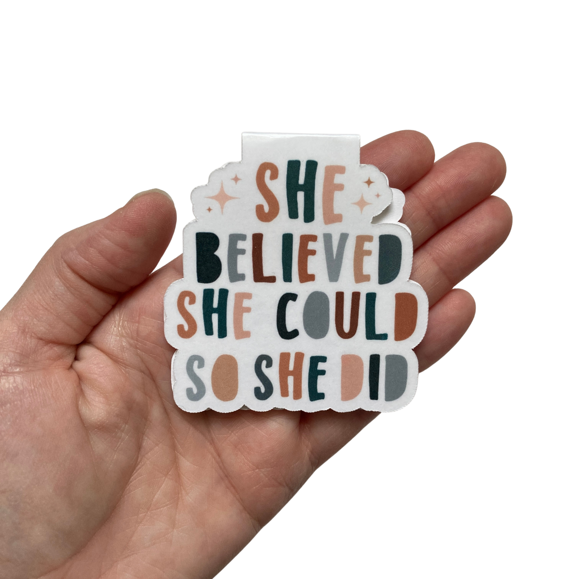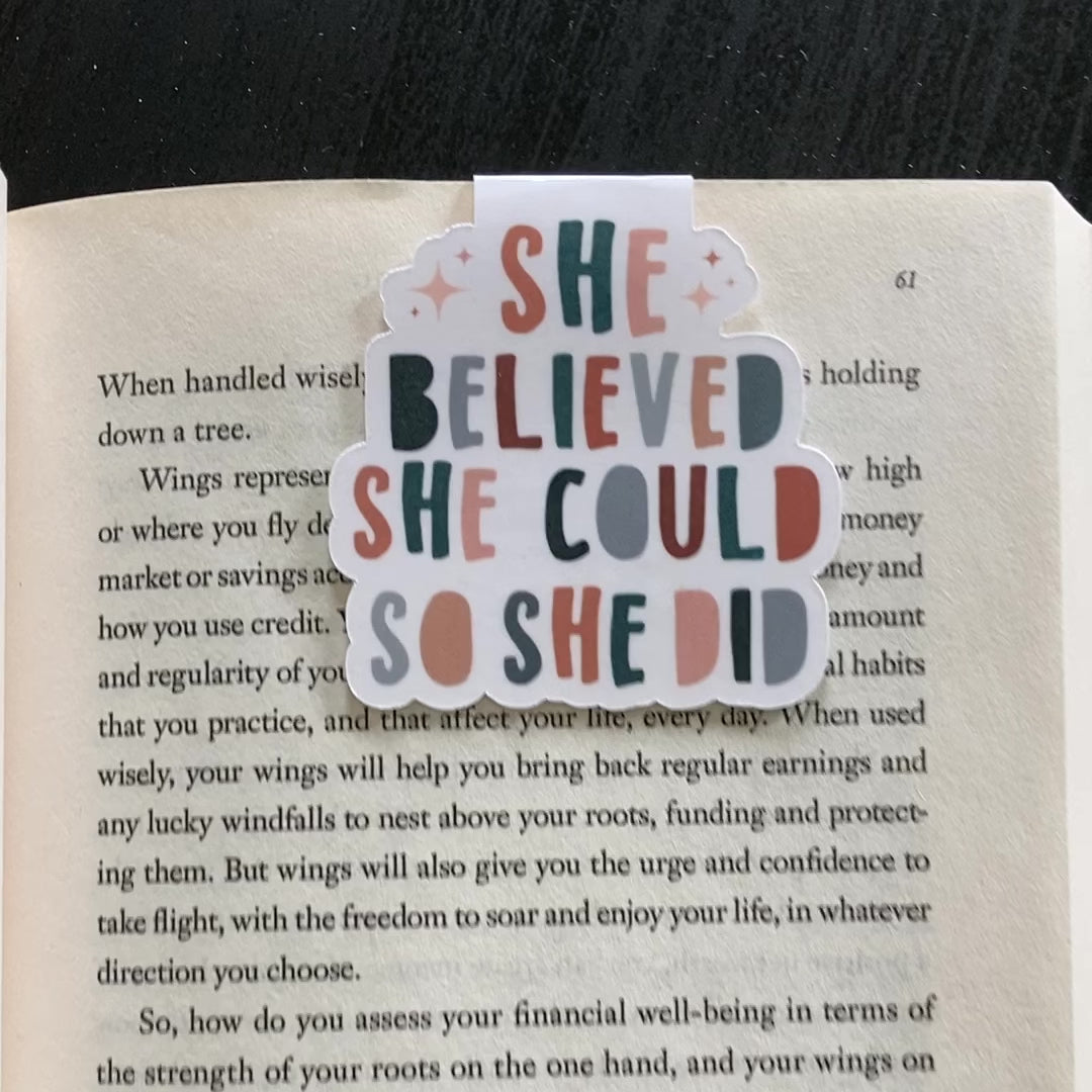 This listing is for one magnetic bookmark that says, "She Believed She Could So She Did." It's perfect for holding your place just about anywhere! Use it in your favorite book, planner, notebook, or wherever your heart desires!