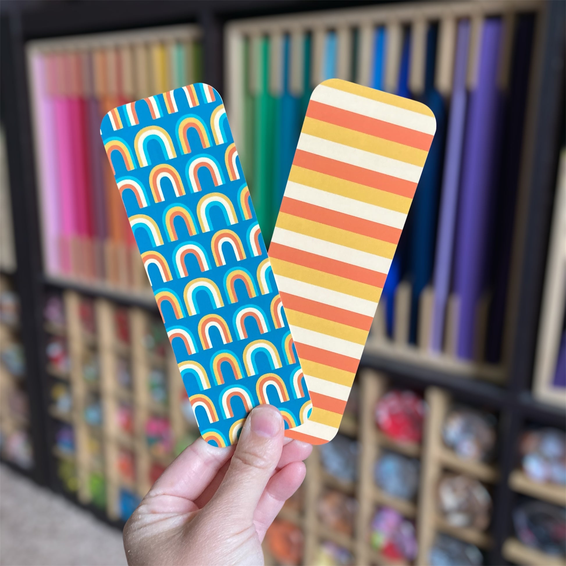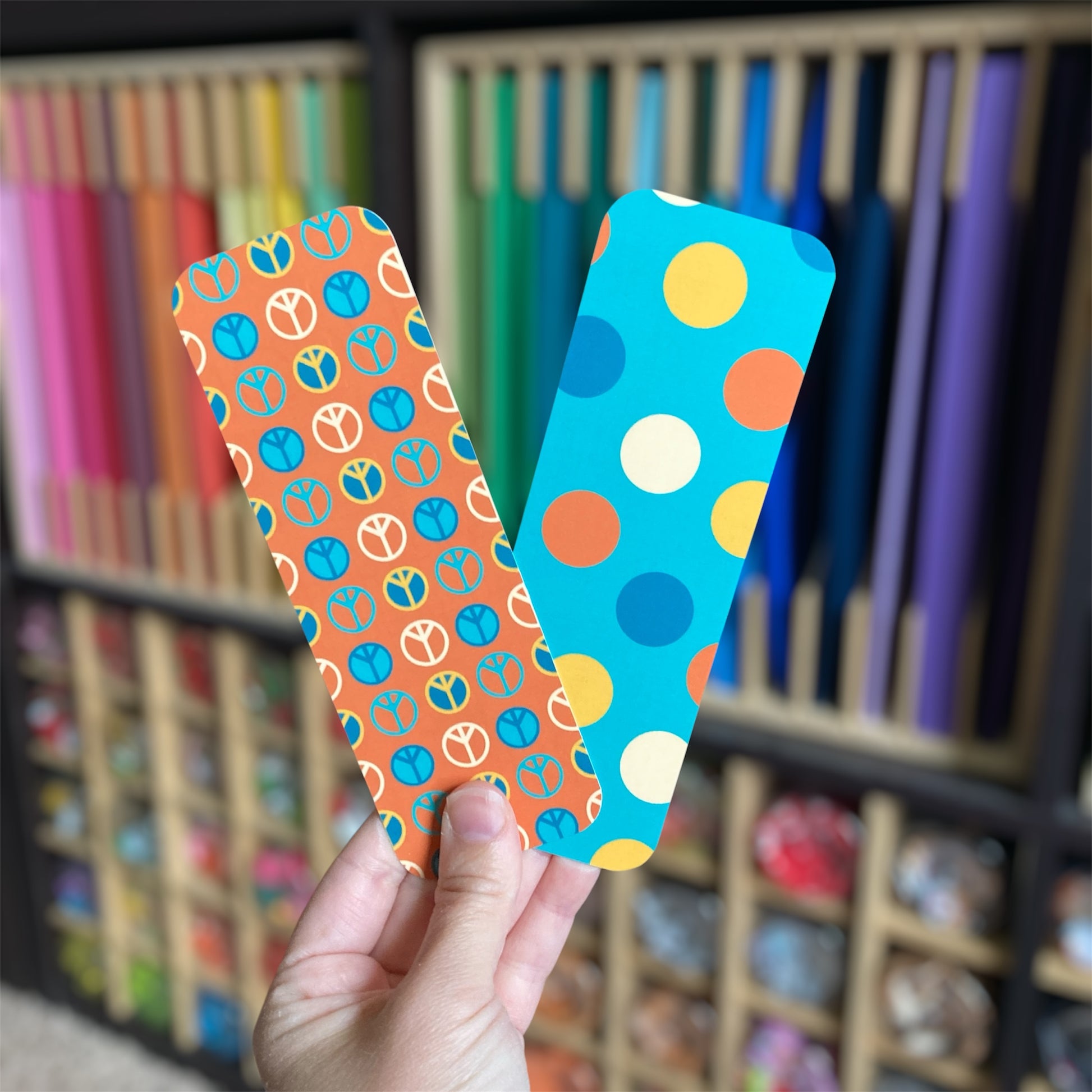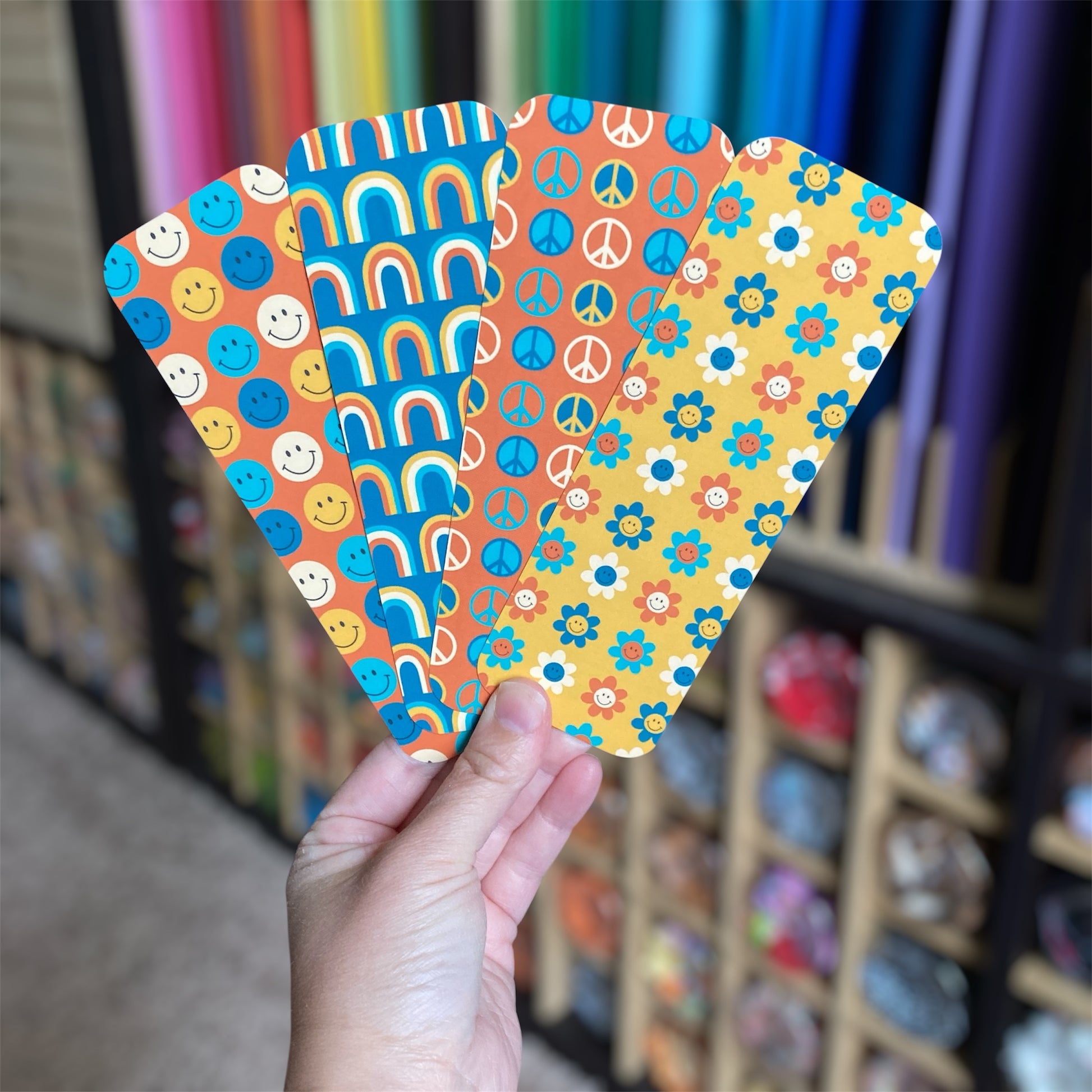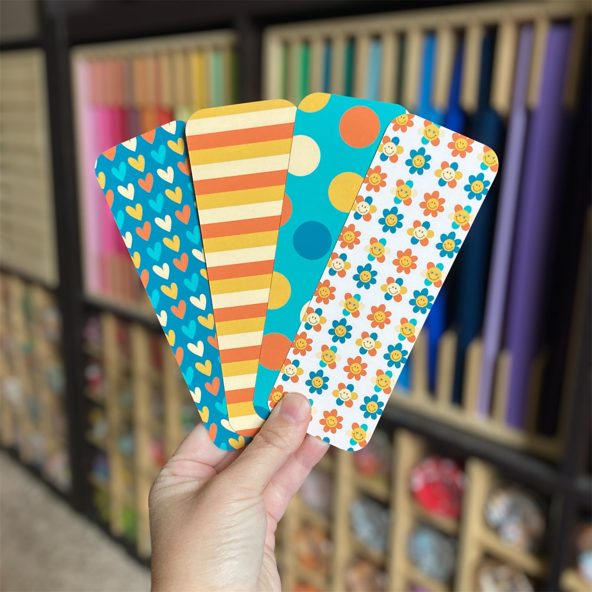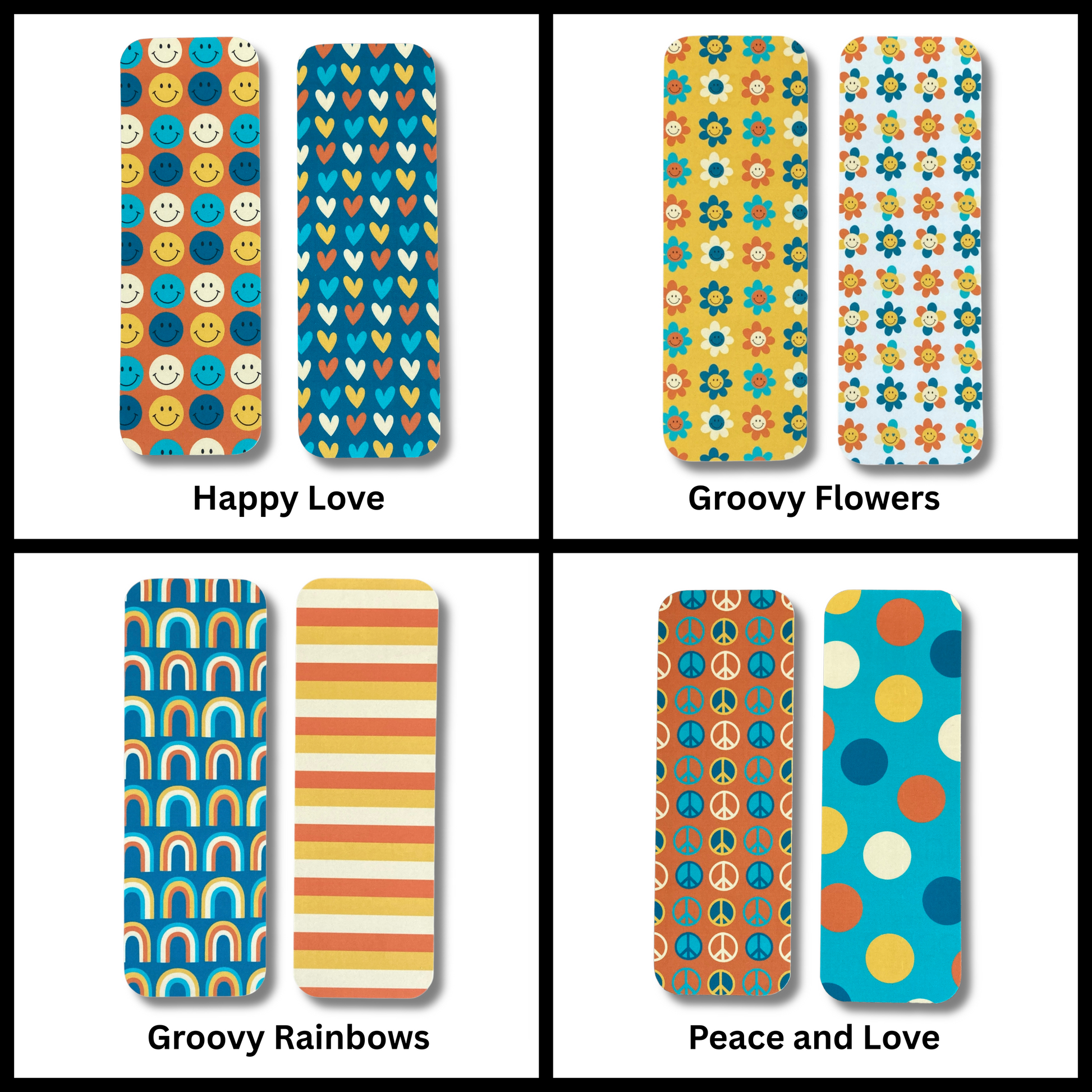 Feeling groovy?! Check out these 4 unique, double-sided bookmarks that feature a variety of retro patterns. They're perfect for saving your place just about anywhere, and you can choose to buy them individually or as a bundle for a discount!