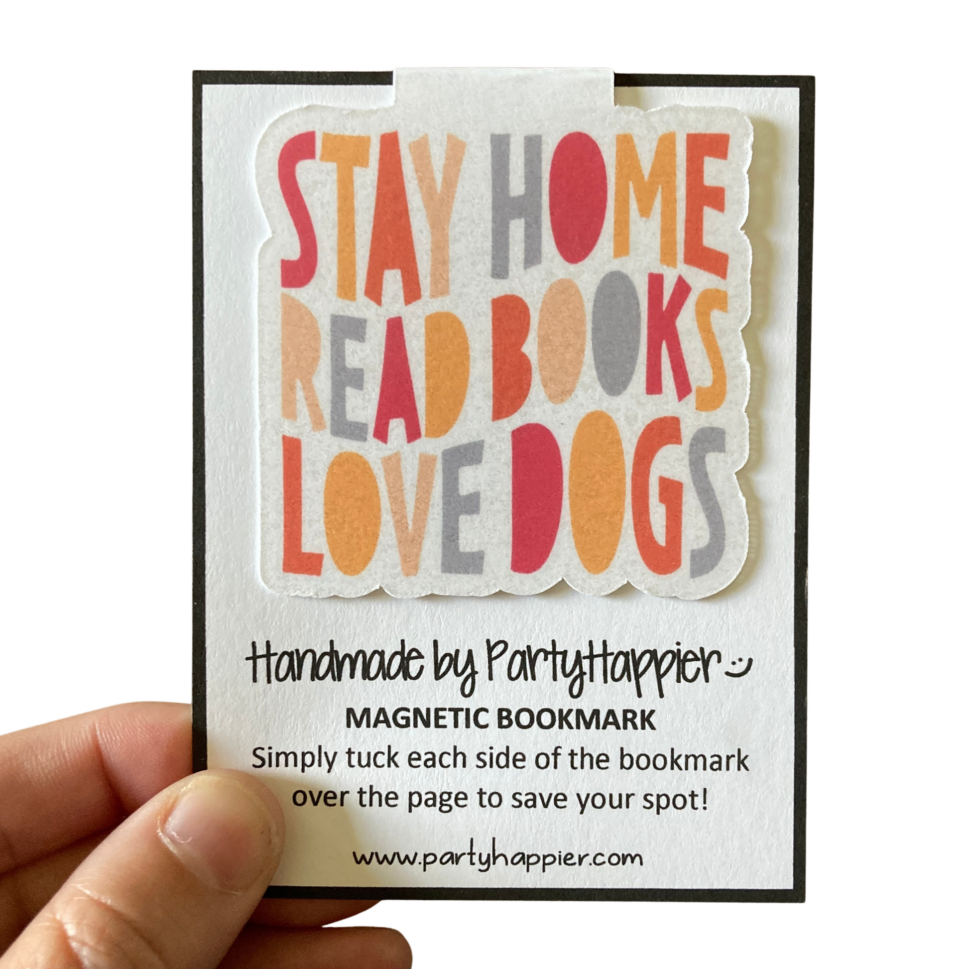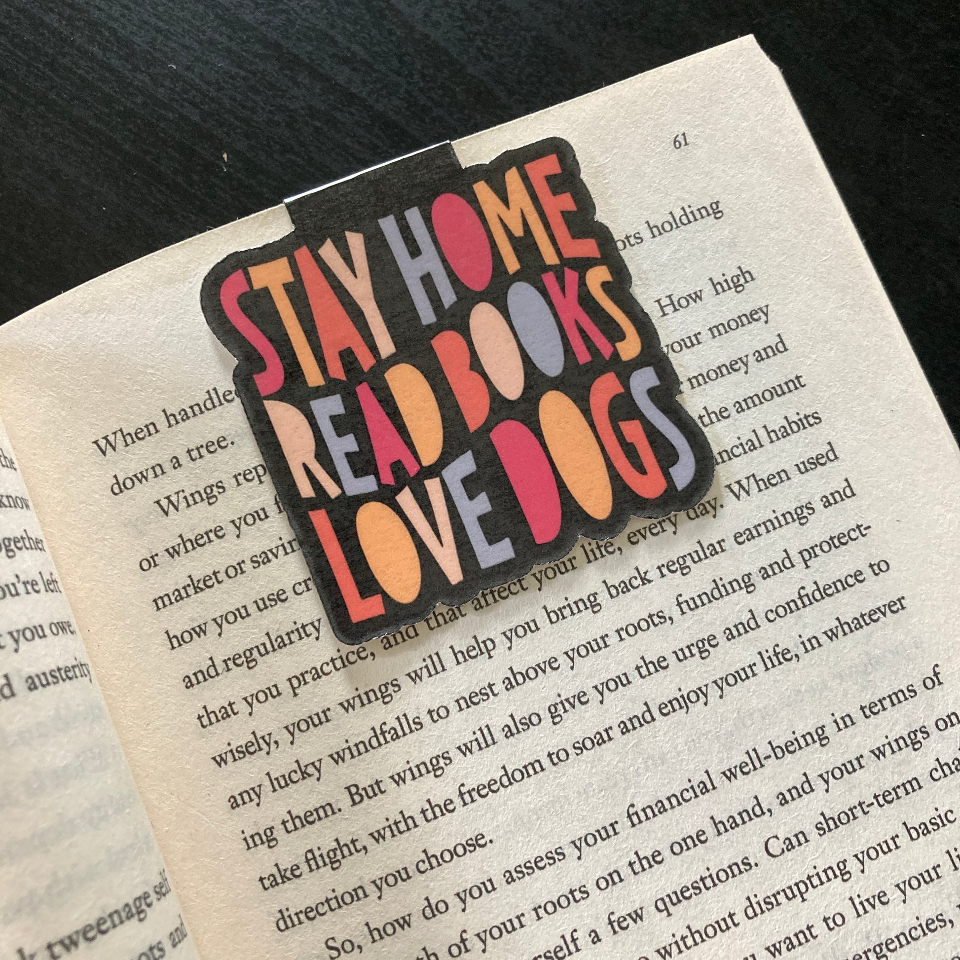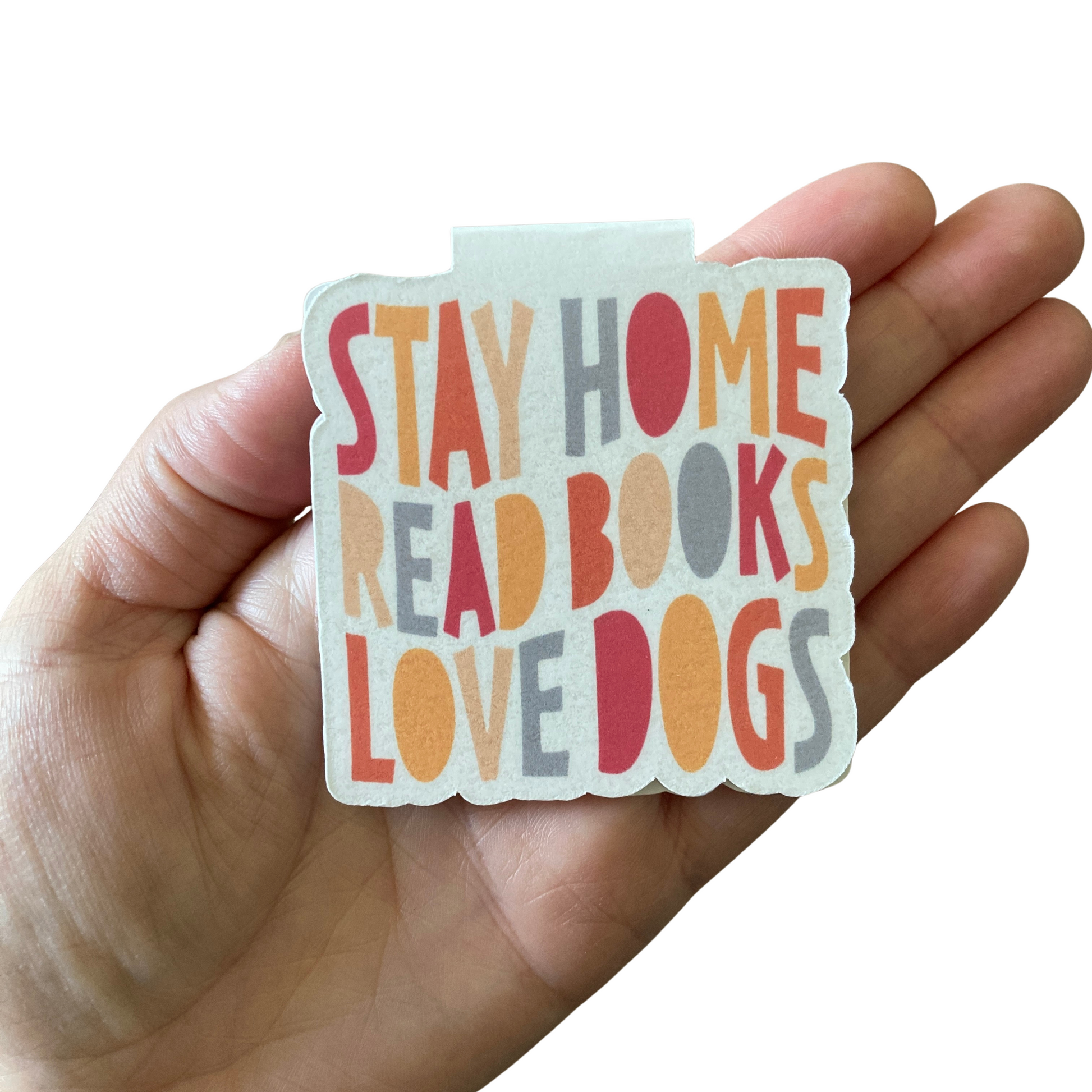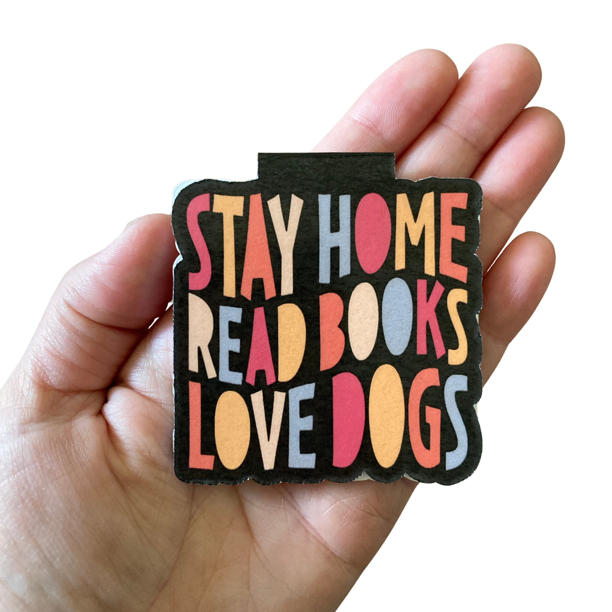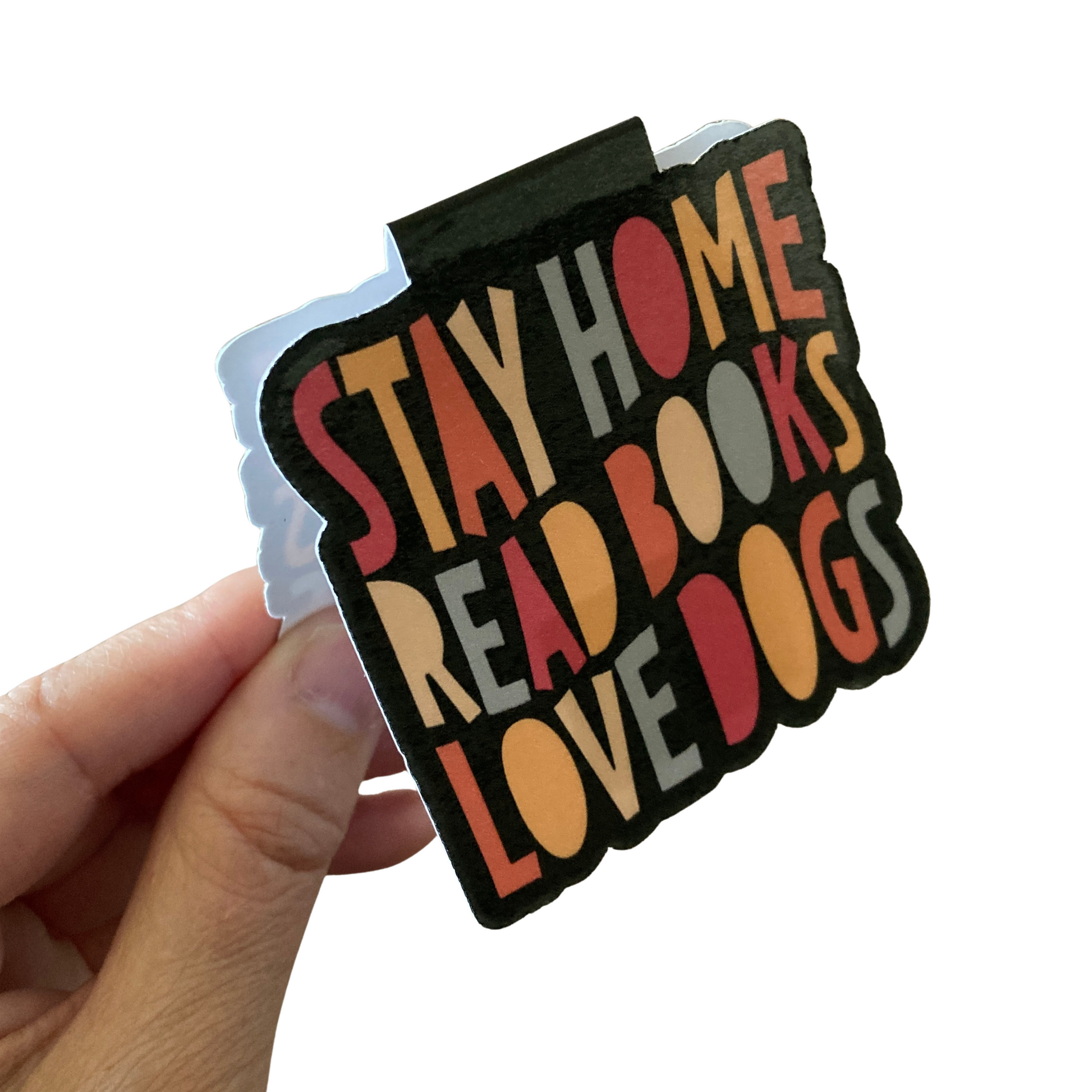 This listing is for one magnetic bookmark that says, "Stay Home Read Books Love Dogs." It's perfect for holding your place just about anywhere! Use it in your favorite book, planner, notebook, or anywhere else you want to save your spot!