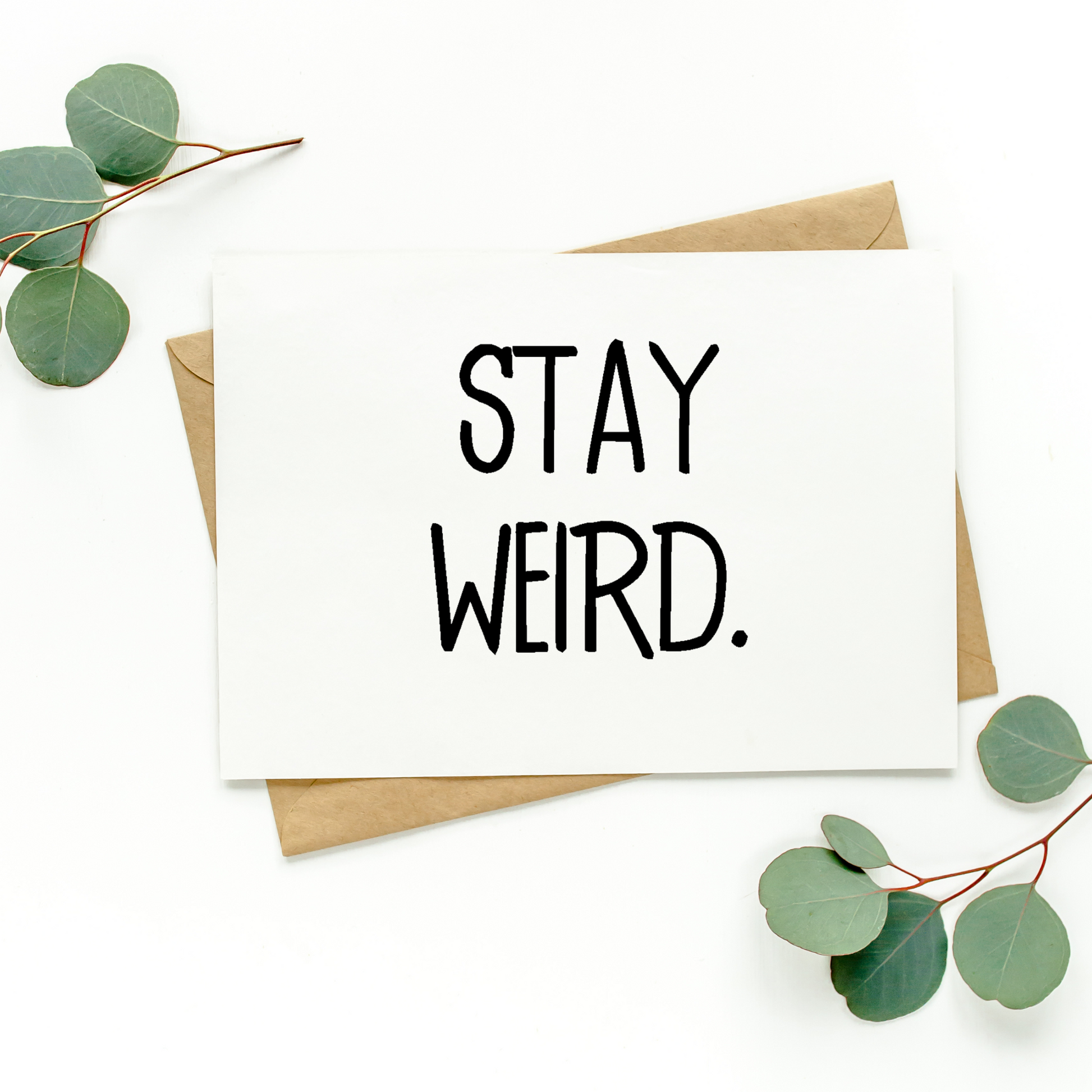 This listing is for one blank greeting card that says, "Stay Weird." We've all got that friend whose weirdness we'd never change!